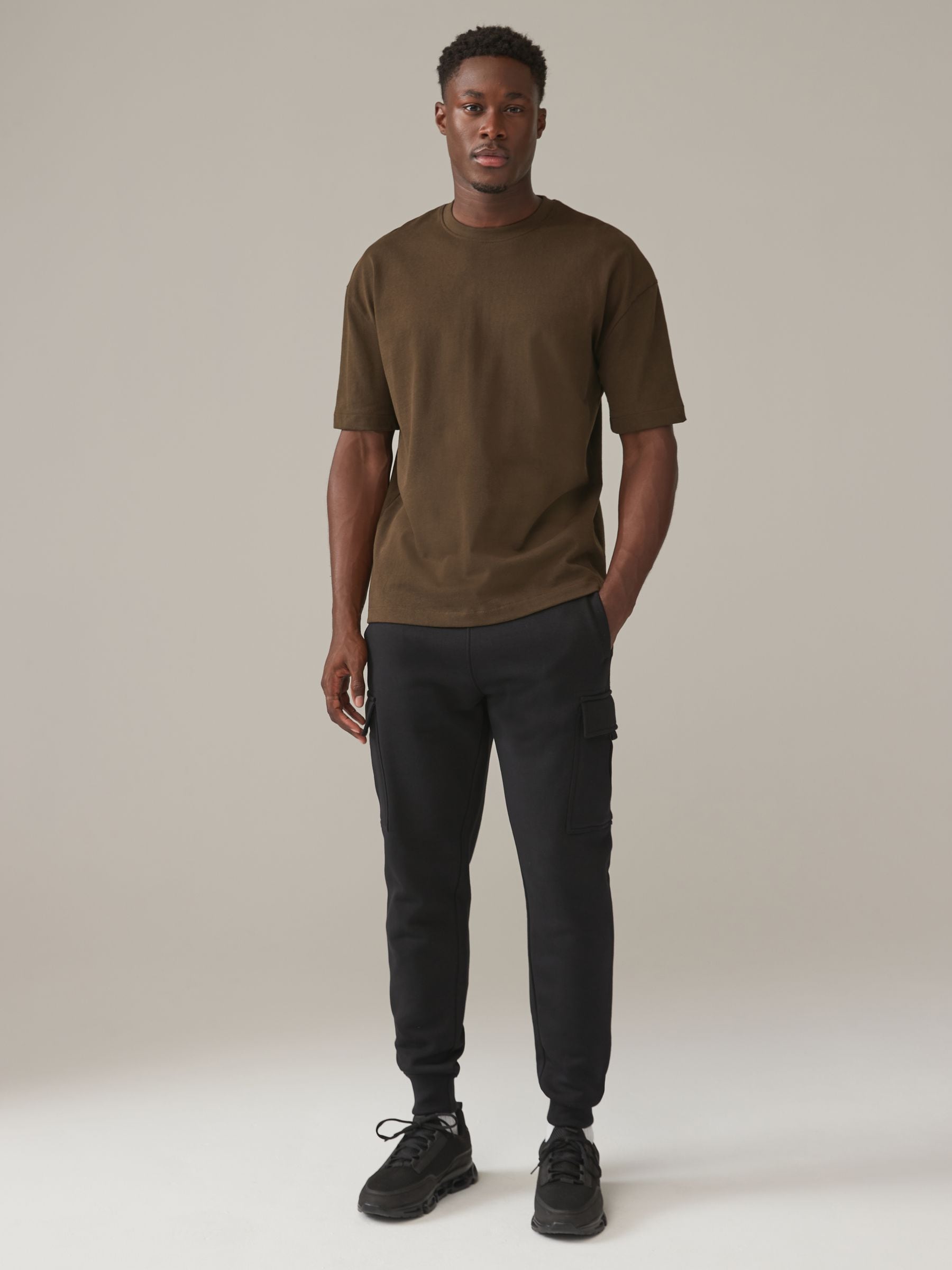 These slim-fit jogging bottoms have a comfortable cotton-blend fabric with an adjustable elasticated waistband, cargo and side pockets, tapered legs and elasticated ankle cuffs. Slim fit Cotton-blend fabric Elasticated waistband Cargo pockets Elasticated ankle cuffs Machine washable. 80% Cotton, 20% Recycled polyester.