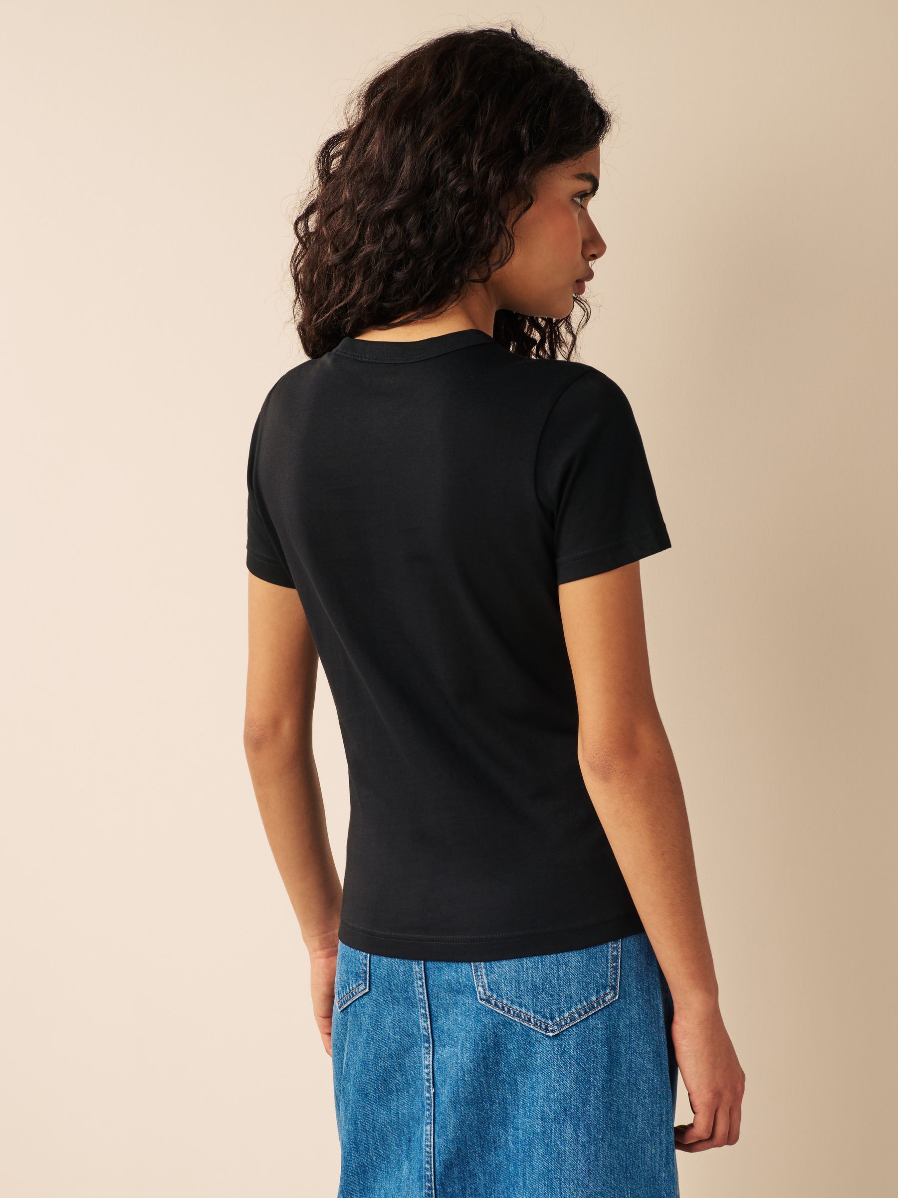 This black T-Shirt is butter soft, affordable, high quality and essential to your everyday wardrobe. You can style this T-Shirt casually with leggings or jeans or professionally with trousers, under a blazer. The essential T-Shirt really is ESSENTIAL! This is perfect to build a capsule wardrobe with, to mix and match with anything and everything. Crew neck Short sleeve Machine washable. 100% Cotton. Items with the curve logo are available in sizes 18 and above., Made with U.S. Cotton Trust Protocol verified origin. A new standard in sustainble cotton production. The U.S. Cotton Trust Protocol assures more sustianable cotton farming, including fair working conditions and best practices for water and pesticide usage, soil diversity and greenhouse gas emmisions.