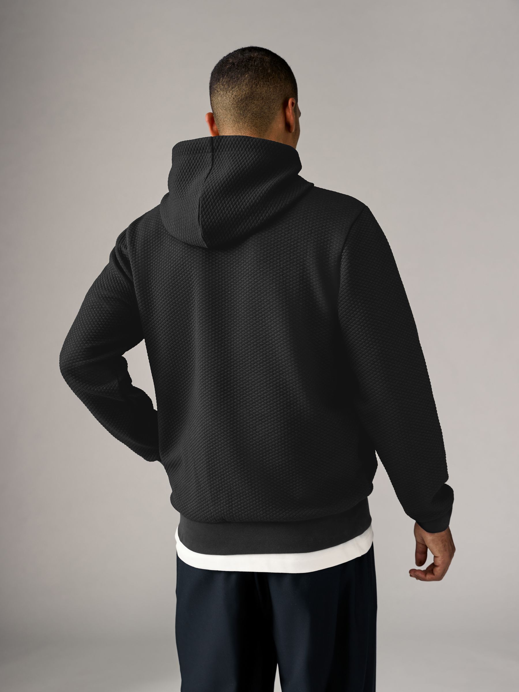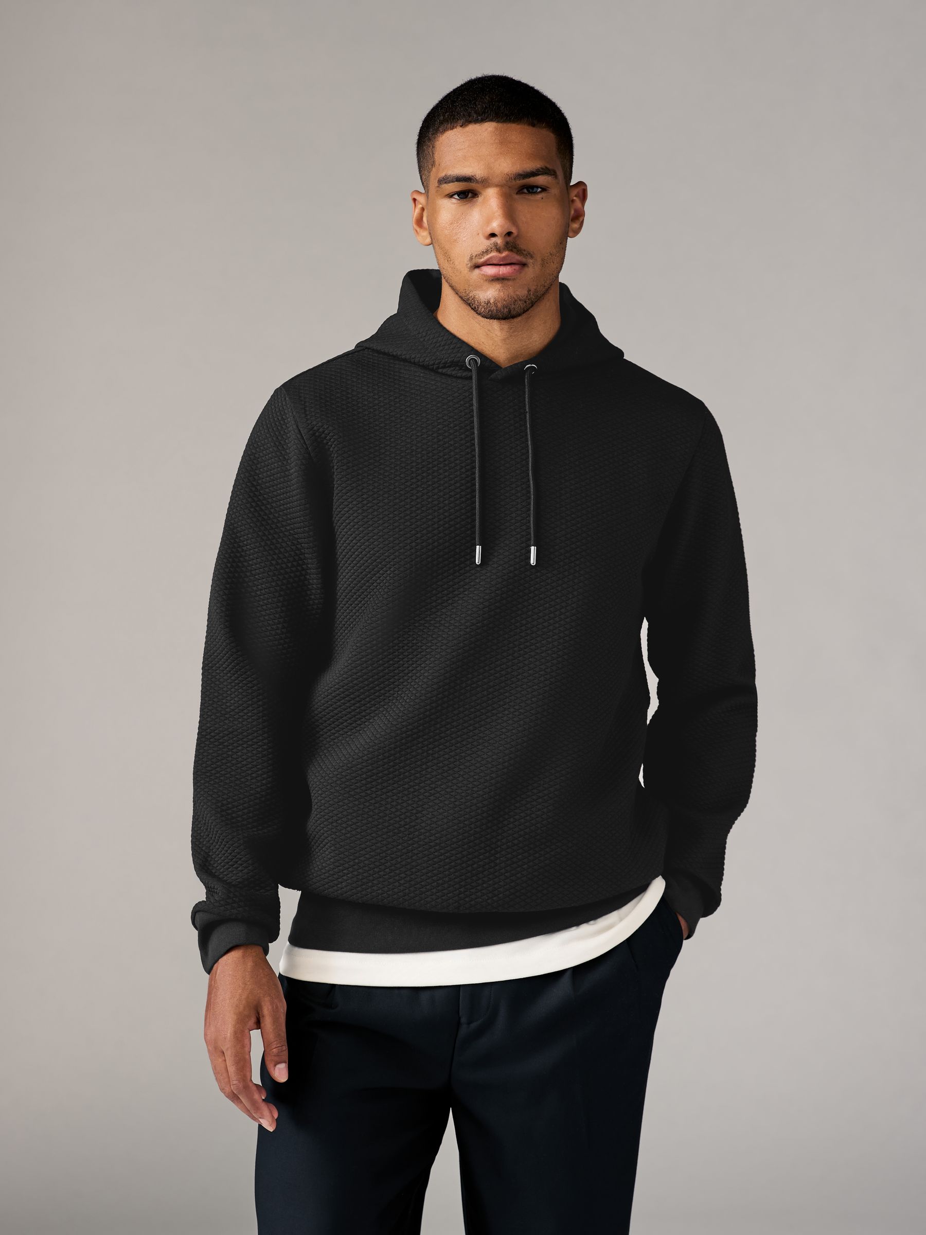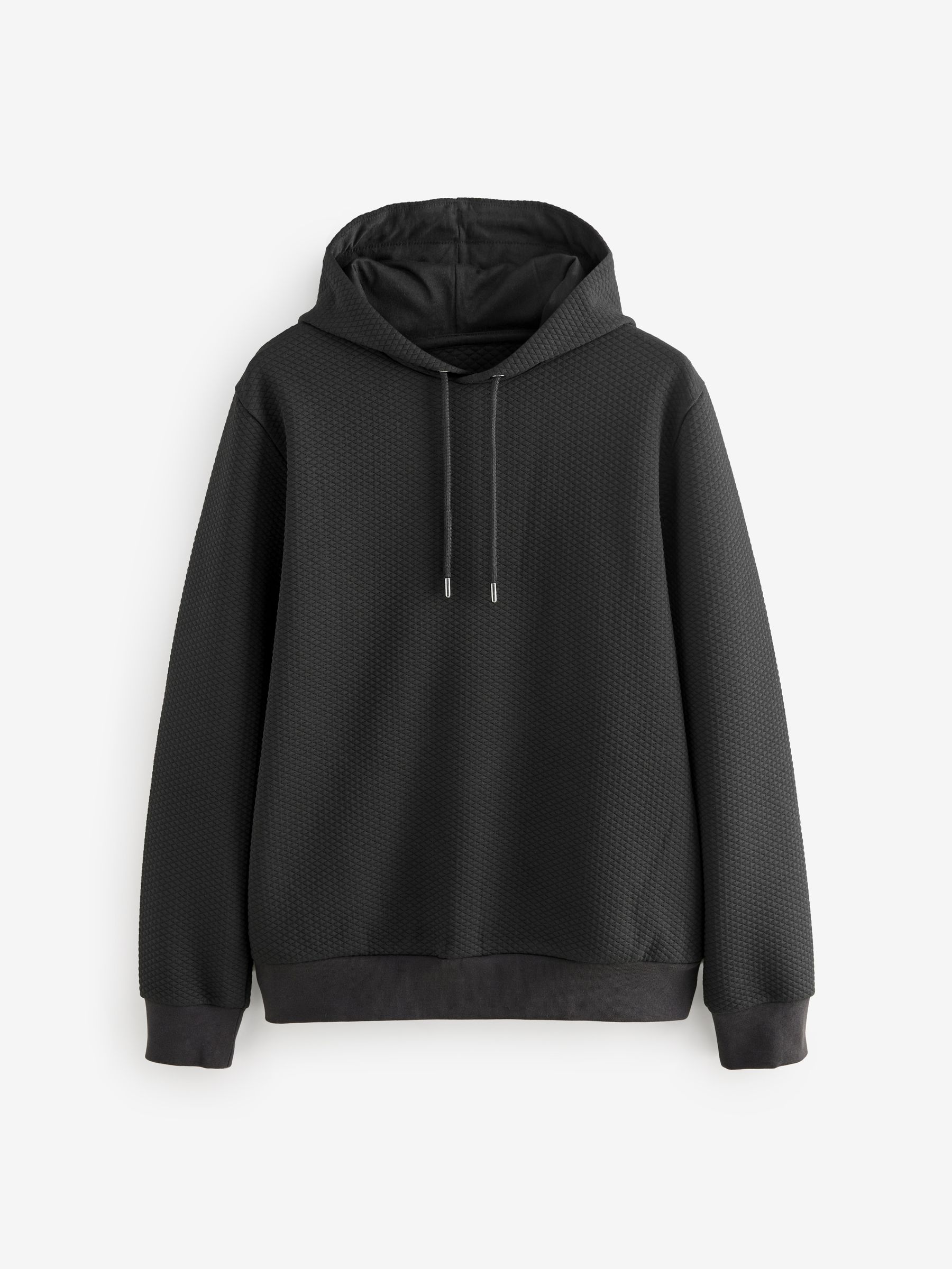 Level up your off-duty look with our premium hoodie. Crafted from a soft fabric with a luxurious textured finish, the classic jumper offers a regular fit with drawcord details on the hood and ribbed cuffs and hem for a supreme fit. Team it with jeans and trainers for the perfect weekend look. Textured fabric Drawcord detail Ribbed cuffs and hem Machine washable. 99% Polyester, 1% Elastane.