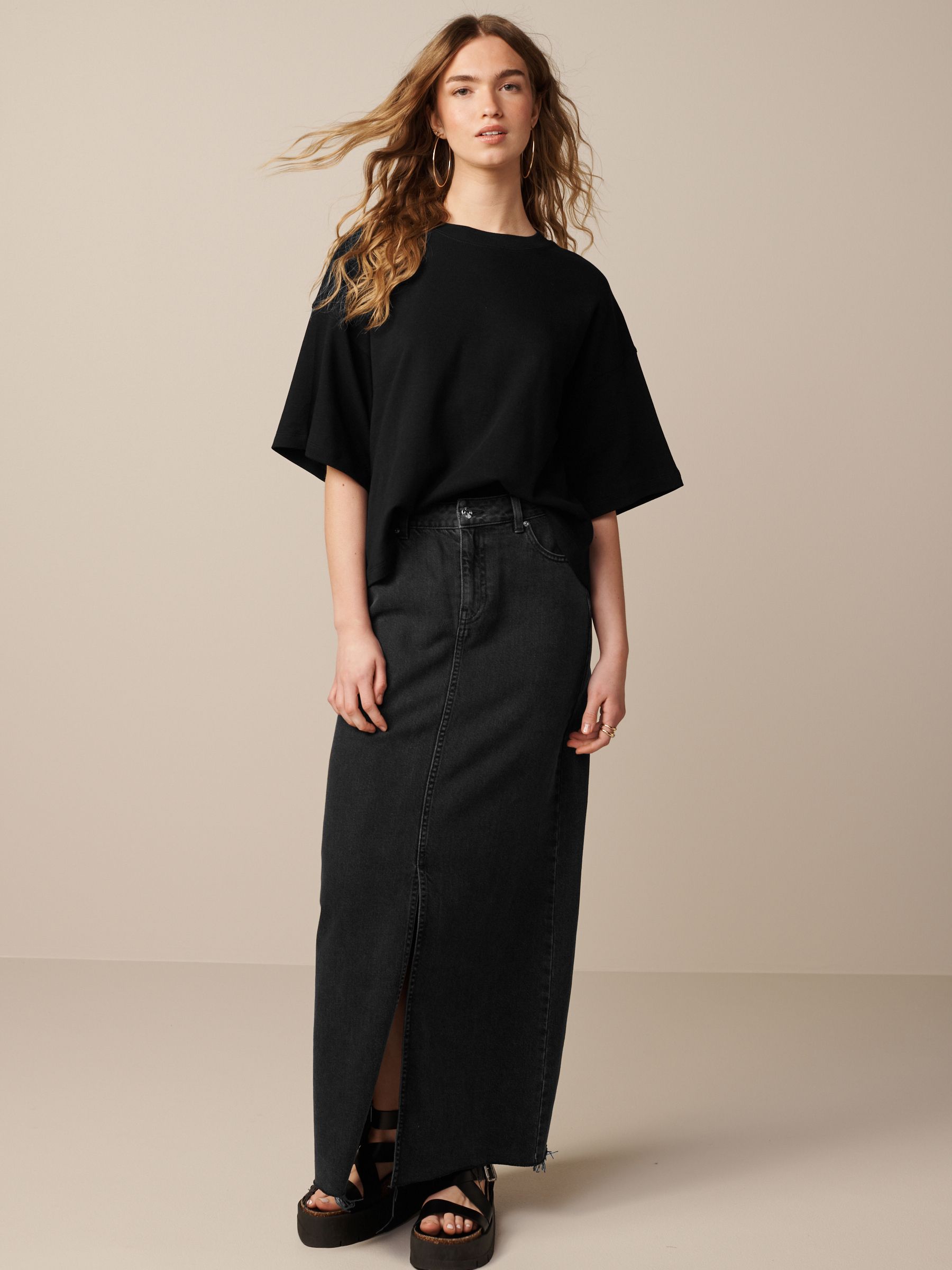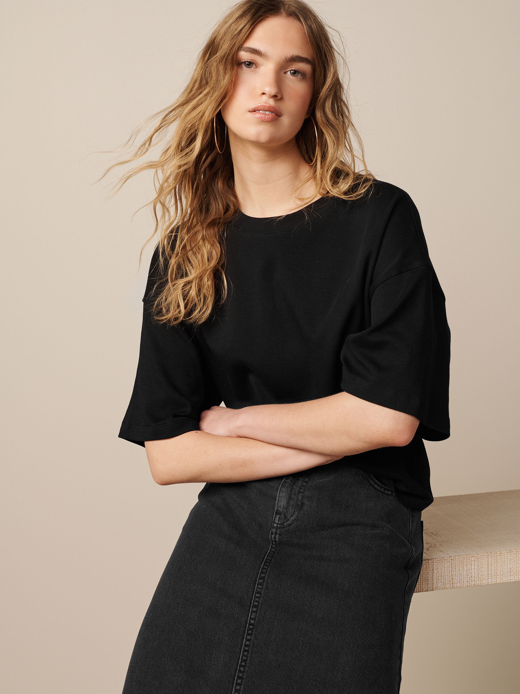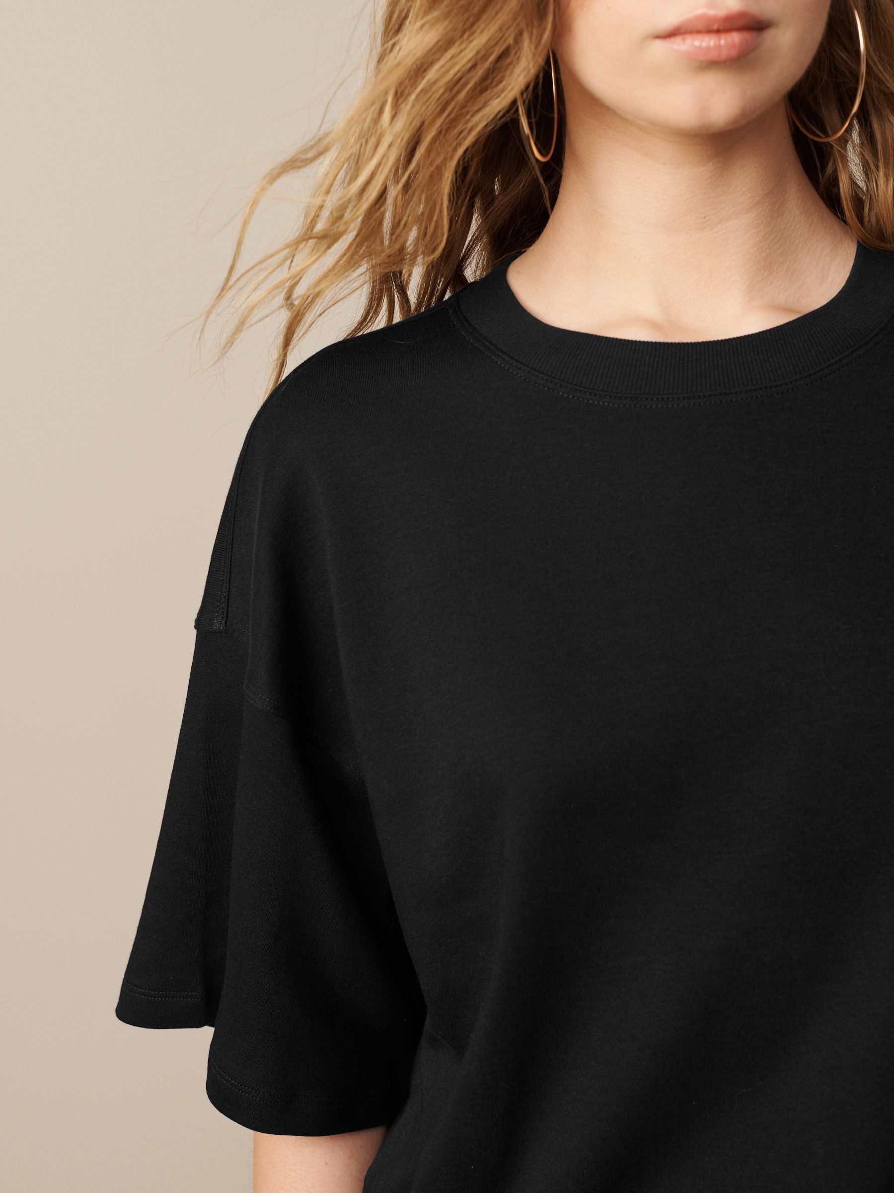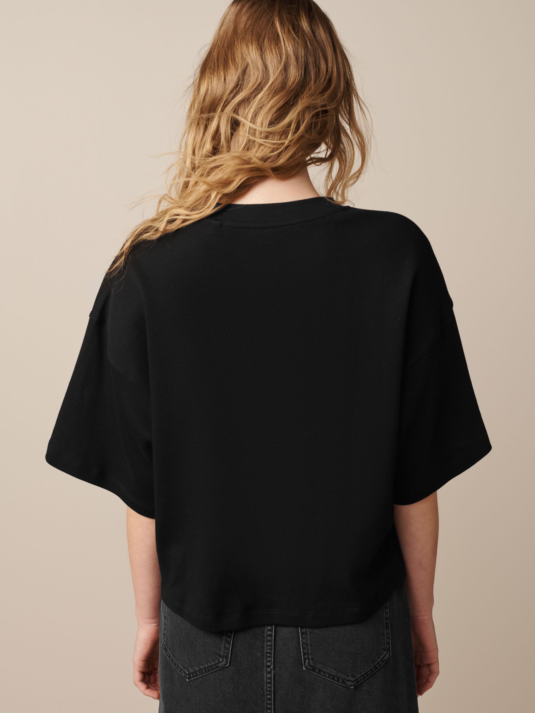 This product has a looser fit than usual, we recommend sizing down. The one item of clothing every person must have in their wardrobe will be a basic T-Shirt. Bonus points if that black T-Shirt is extremely flattering, comfortable and versatile with practically any outfit no matter the occasion. We feel our heavyweight Boxy fit T-Shirt shirts are the perfect staple to add to your collection. This pure-cotton, relaxed-fit T-Shirt adds a statement look to your style staples, finished in a boxy cut with dropped shoulders and a ribbed crew neck collar. Relaxed, boxy fit 100% cotton Dropped shoulders Ribbed crewneck collar Machine washable. Main 100% Cotton. Rib 95% Cotton, 5% Elastane. Made with U.S. Cotton Trust Protocol verified origin. A new standard in sustainble cotton production. The U.S. Cotton Trust Protocol assures more sustianable cotton farming, including fair working conditions and best practices for water and pesticide usage, soil diversity and greenhouse gas emmisions.