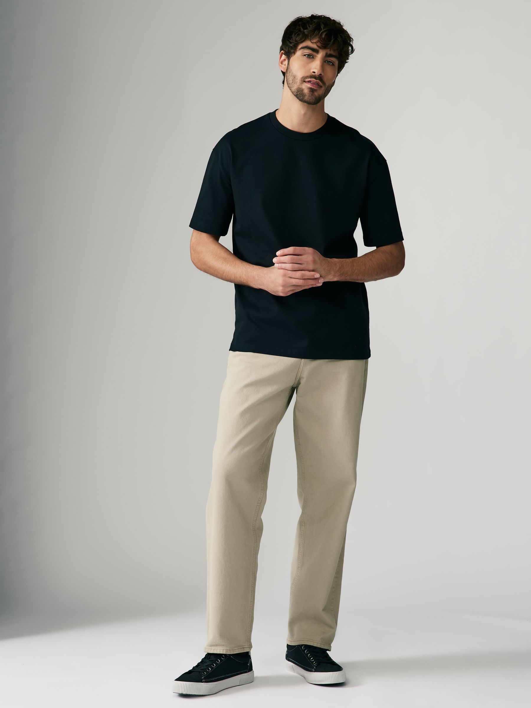 Our relaxed fit T-Shirt has a longer body length, features a dropped shoulder, longer sleeve and fits wider through the body.