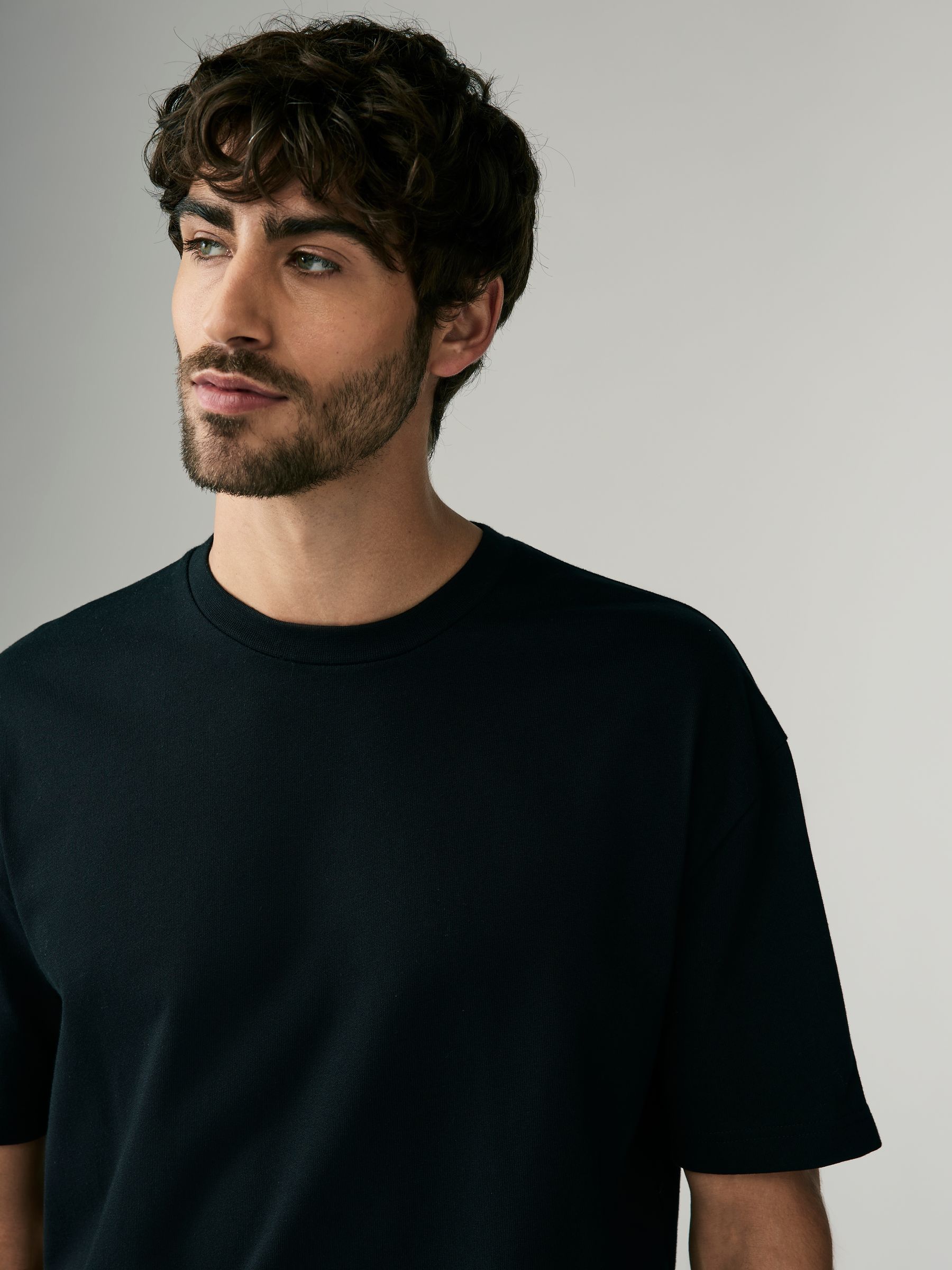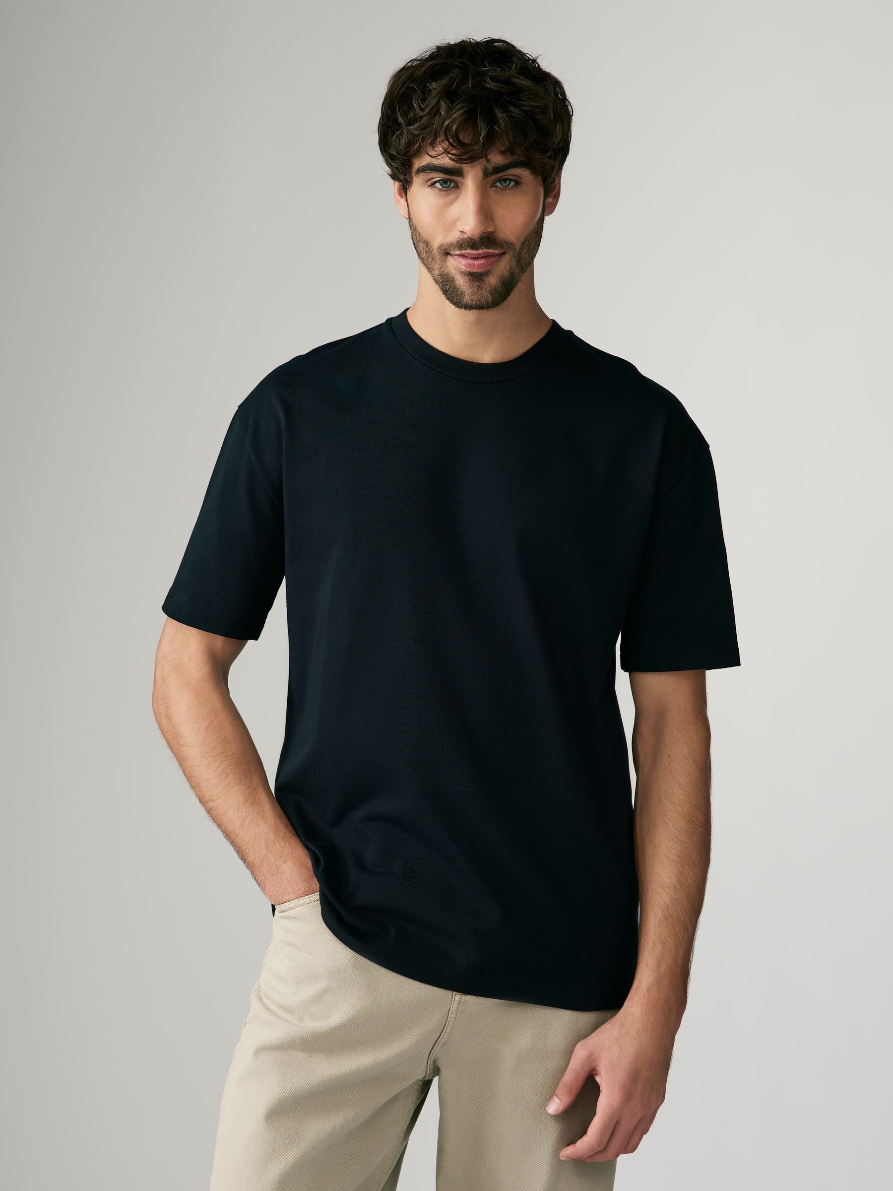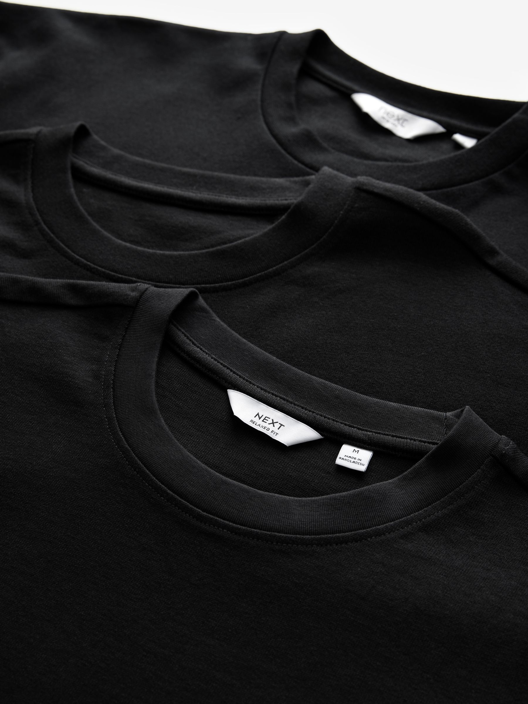 Our relaxed fit T-Shirt has a longer body length, features a dropped shoulder, longer sleeve and fits wider through the body. Stock up on the staples with our three-pack of heavyweight T-Shirts. Designed in a relaxed fit with short sleeves and a crew neck, these pure cotton T-Shirts are great as a base layer or worn alone. Heavyweight fabric – 300gsm Three pack Crew neck Short sleeve Relaxed fit Machine washable. 3 x T-shirt 100% Cotton.