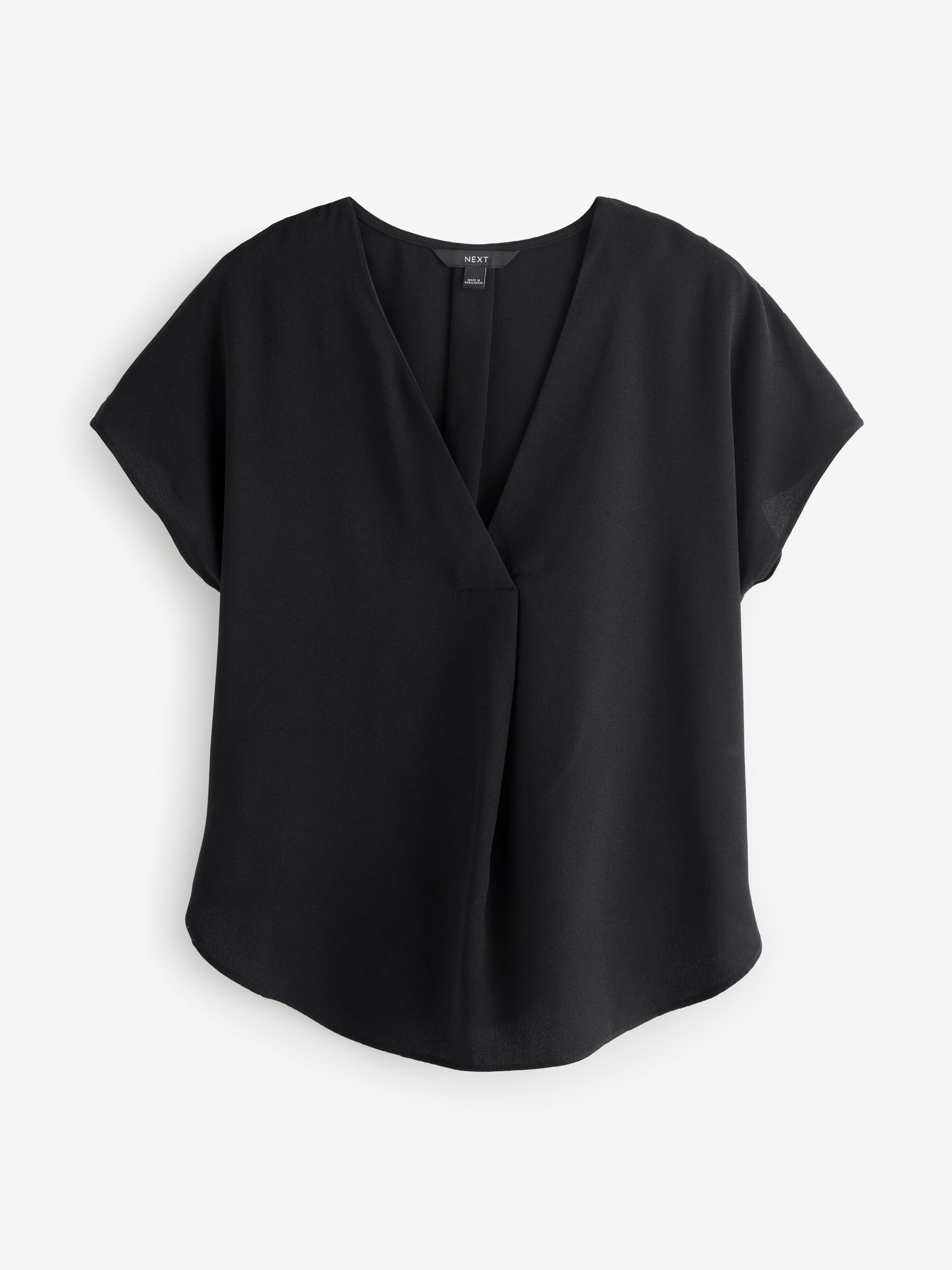 Elevate your office or weekend look with our black short sleeve overhead blouse. Cut with a V-neckline, in a relaxed fit, this versatile blouse is a classic everyday essential. Featuring a curved hem and cuffed sleeve detail, style with dark denim and a heel for effortless appeal. Overhead blouse Lightweight fabric V-Neckline Short sleeve Curved hem Relaxed fit Machine washable. 100% Recycled polyester. Items with the curve logo are available in sizes 18 and above.