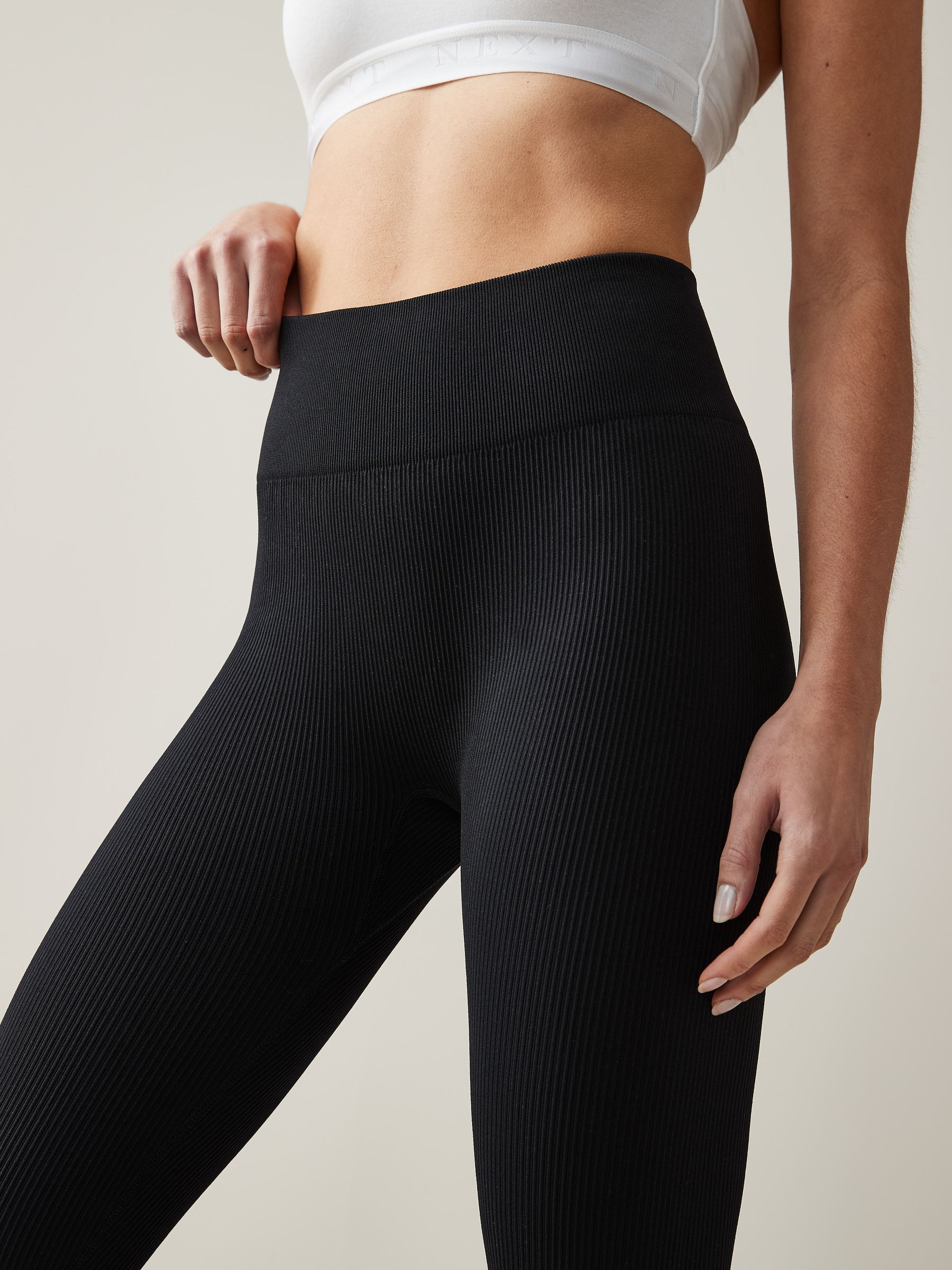 Perfect for days on the go, our buttery soft and stretchy black leggings have got you covered. Made from a nylon blend and with ribbed seamless finish, these stylish skinny fit high-waisted leggings are designed to move with you while offering support and they finish neatly at the ankle. Style with our matching tee’s, trainers and a blazer for the ultimate athleisure image.