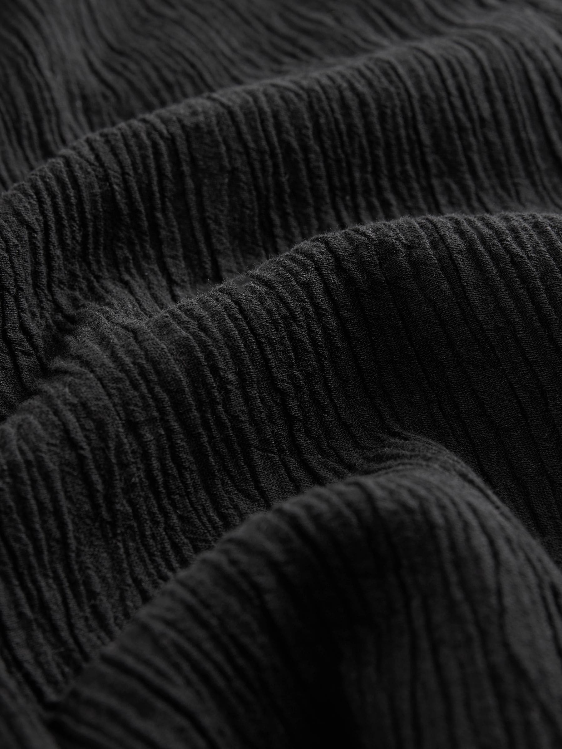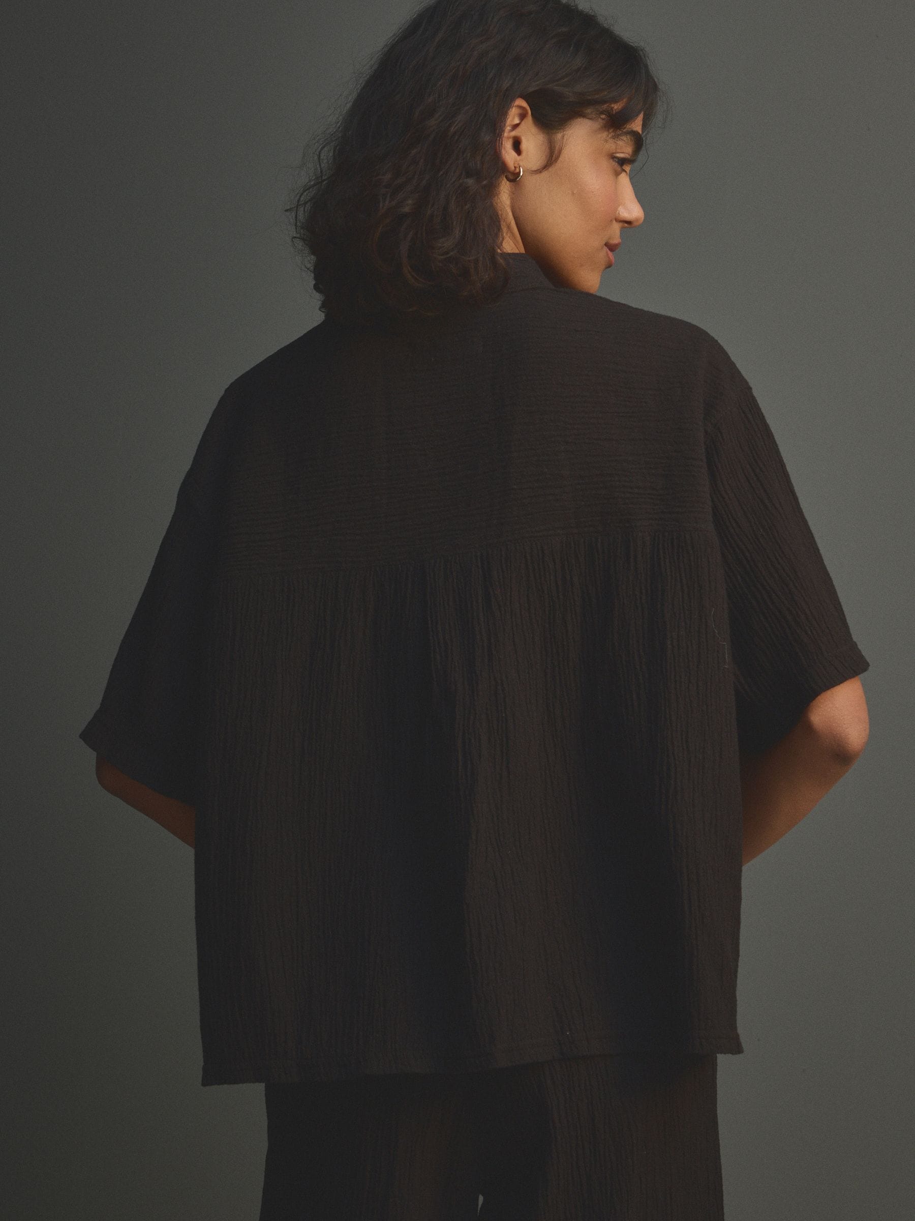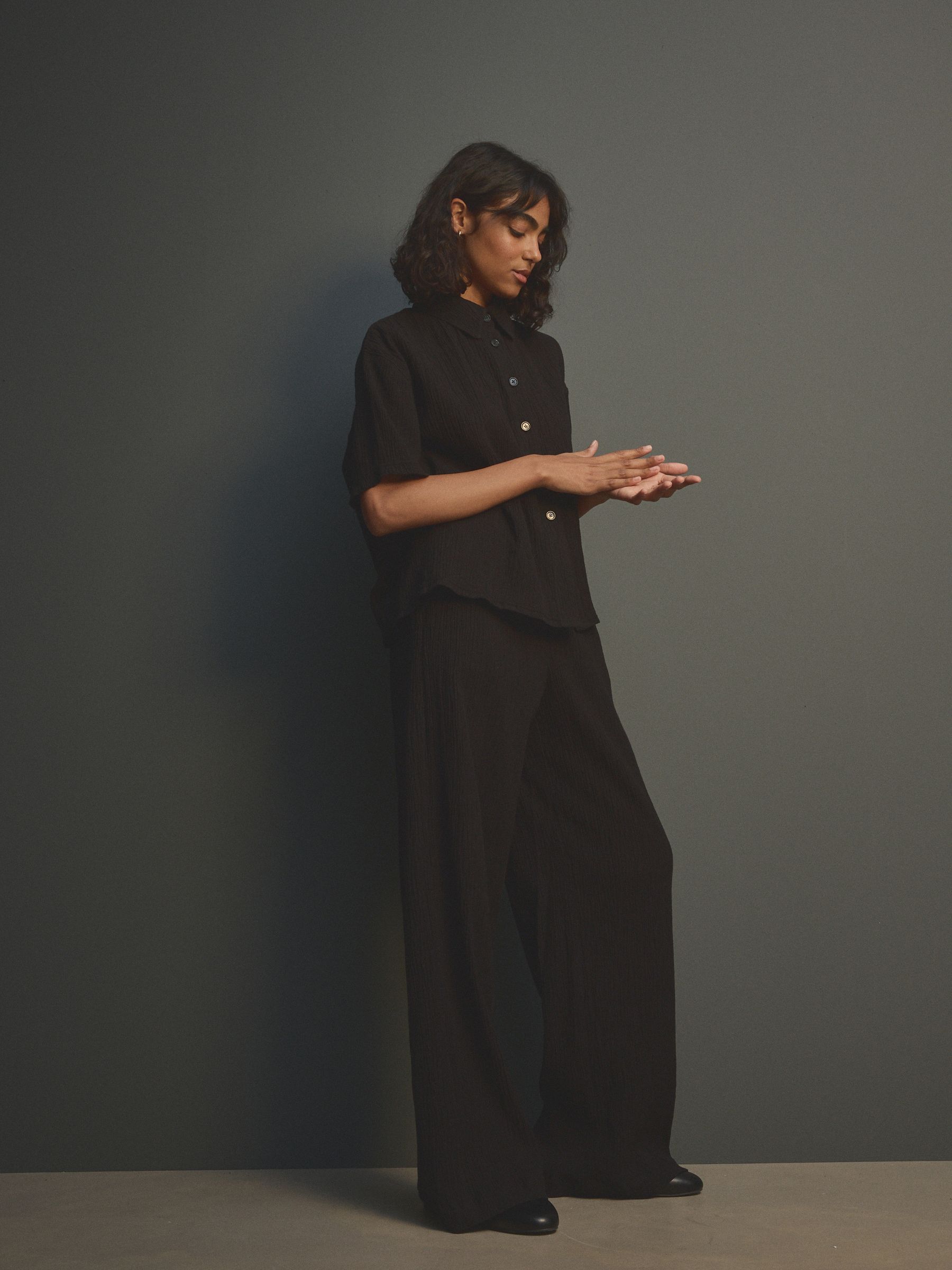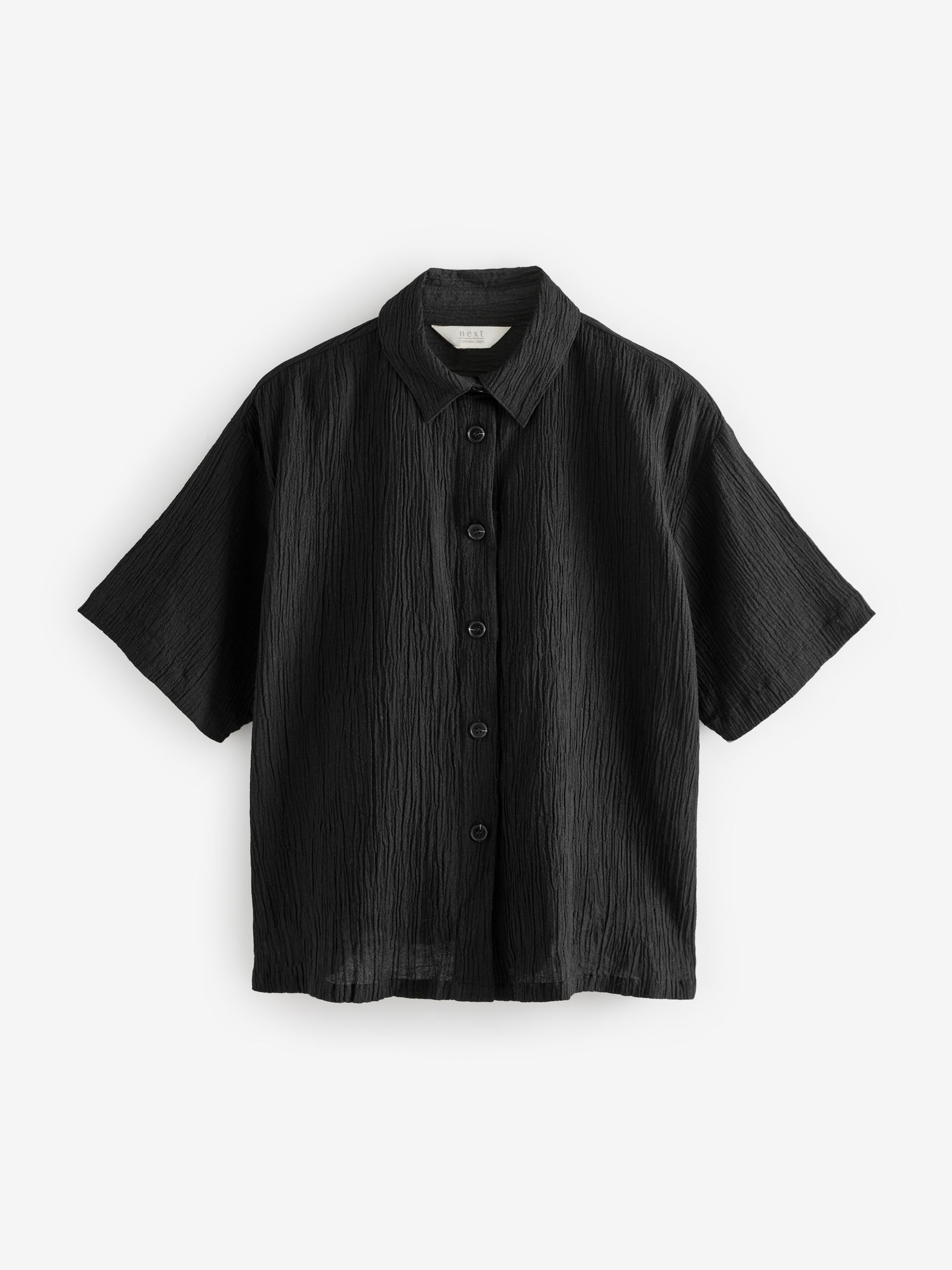 Black Short Sleeve Textured Co-ord Shirt With Linen