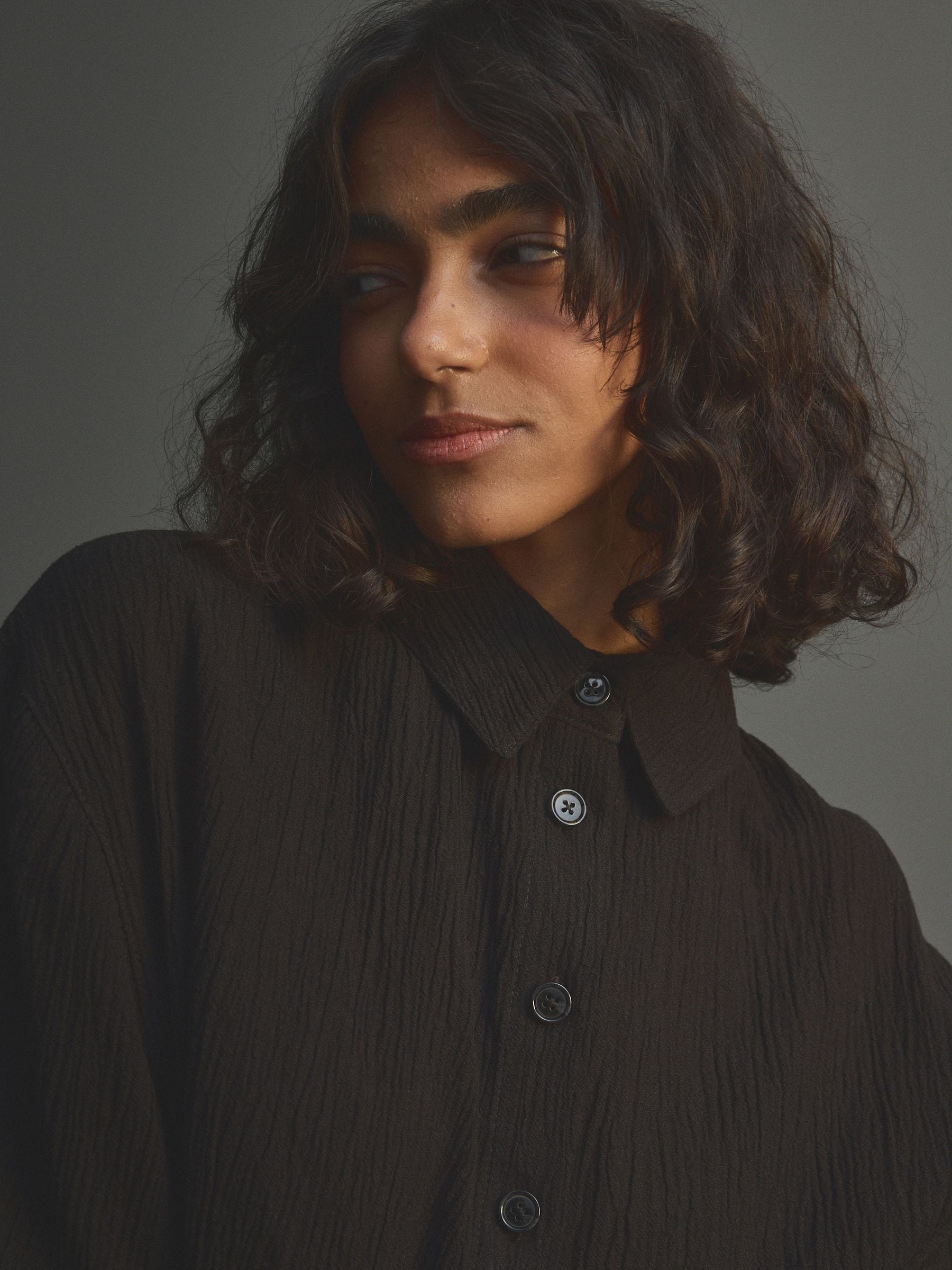 Textured cotton linen Button-up shirt Relaxed fit 90% Cotton, 10% Linen. Items with the curve logo are available in sizes 18 and above.