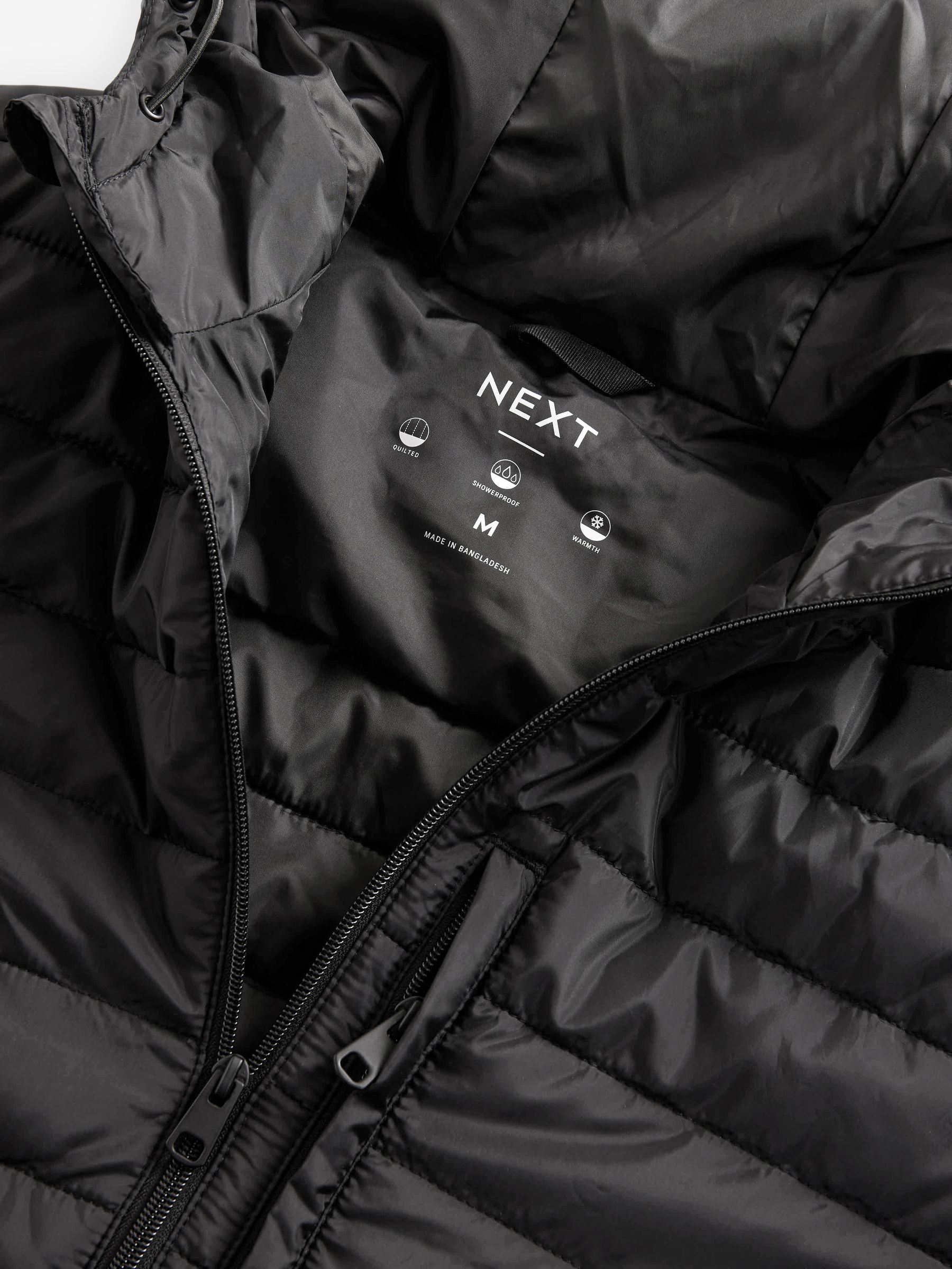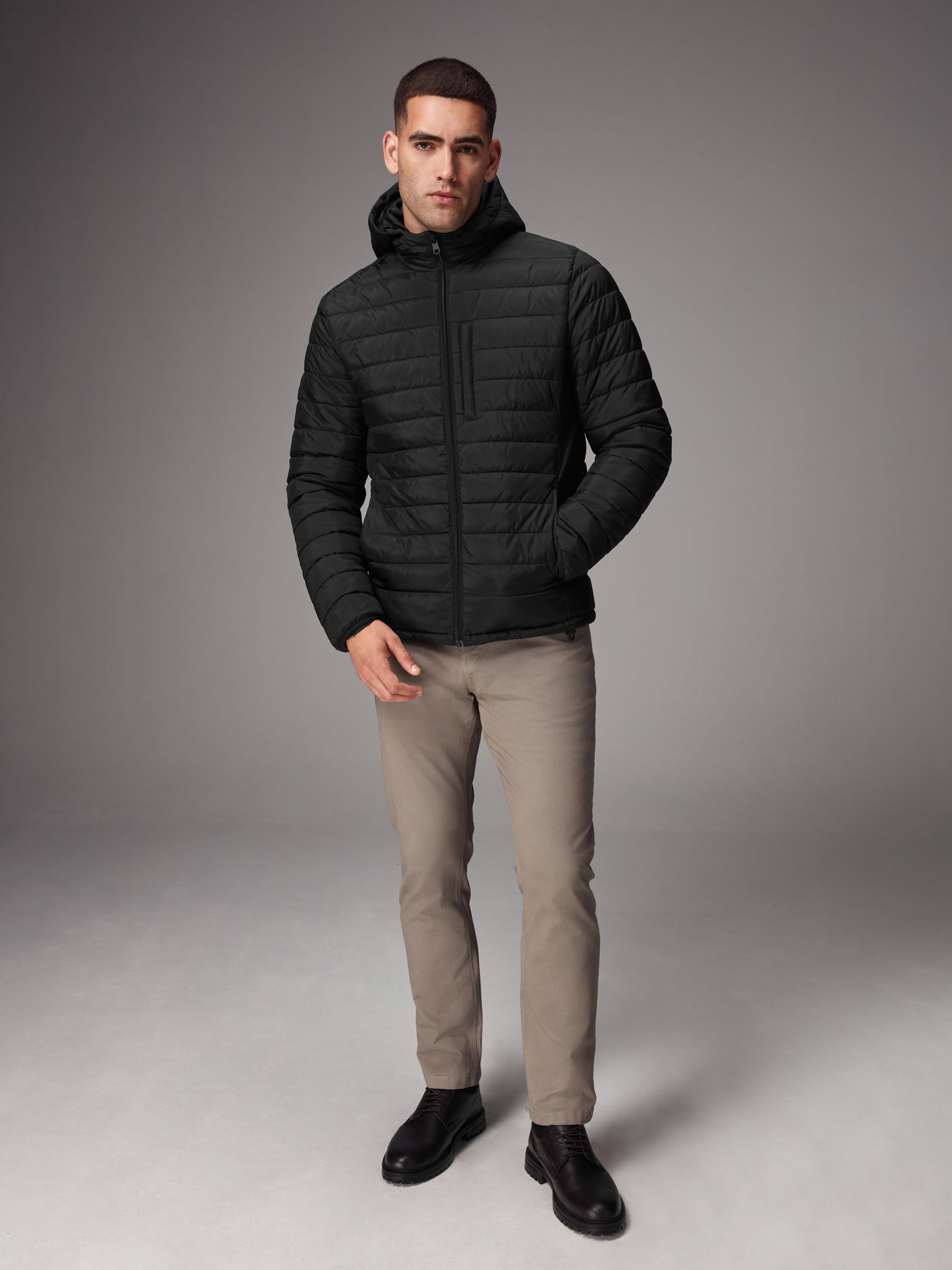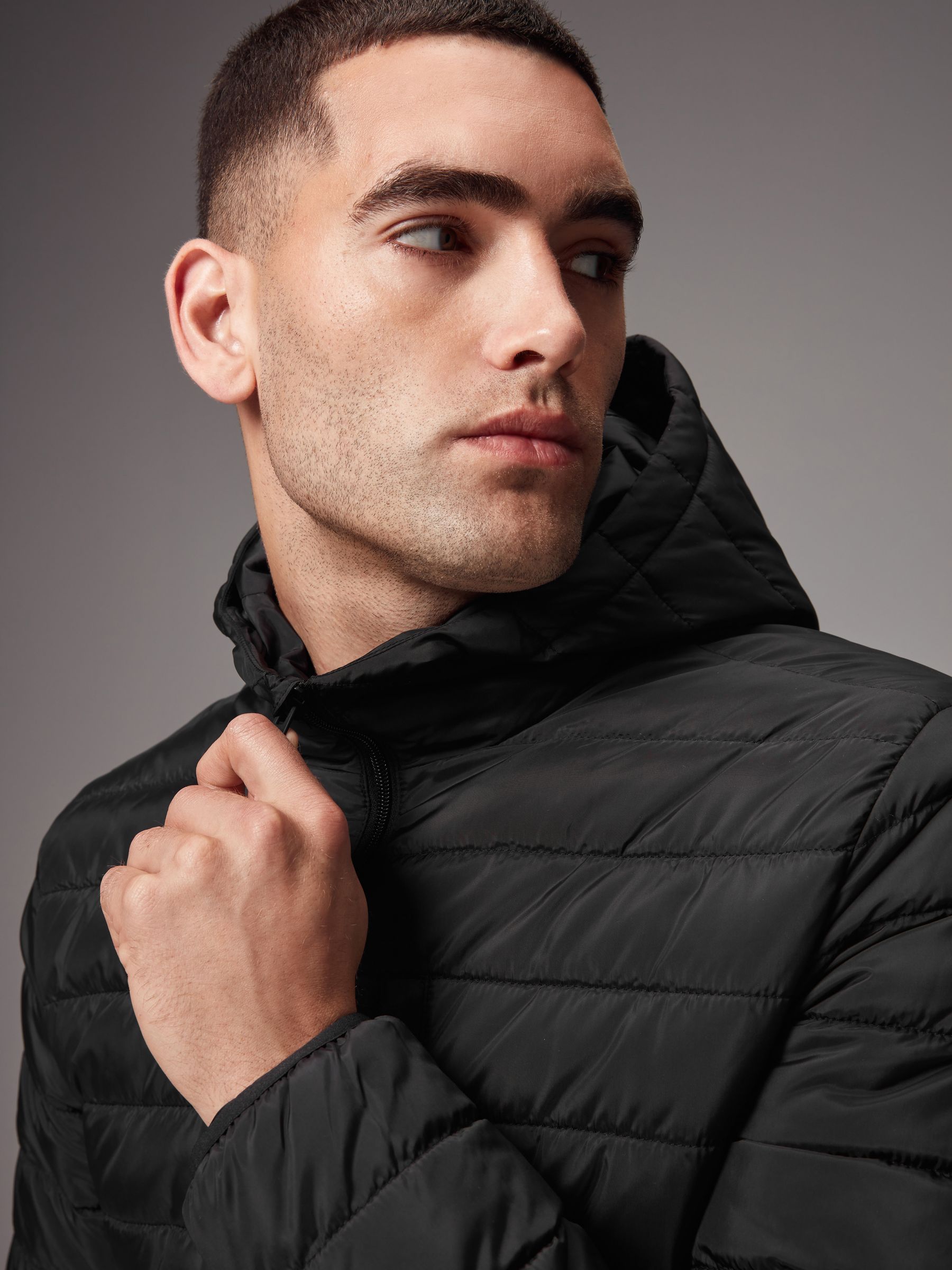 A stylish layer to add to your core outerwear, our black lightweight puffer jacket is sleek, comfortable and stylish. Designed in a lightweight, shower resistant fabric with adjustable toggle pull and handy hood.