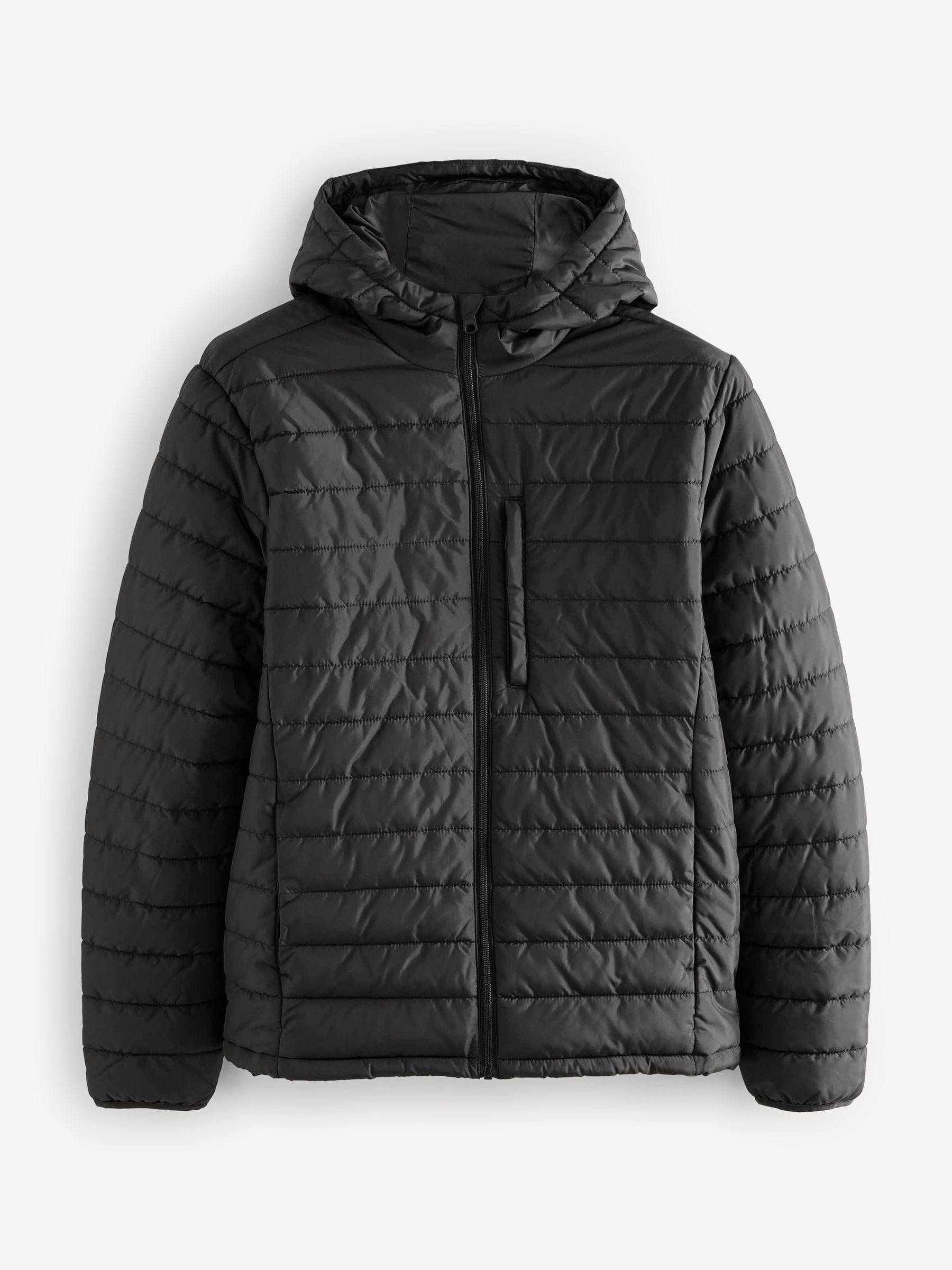 A stylish layer to add to your core outerwear, our black lightweight puffer jacket is sleek, comfortable and stylish. Designed in a lightweight, shower resistant fabric with adjustable toggle pull and handy hood. Puffer jacket Lightweight Shower resistant Hooded Adjustable toggle pull Main 100% Recycled polyester. Lining 100% Recycled polyester.