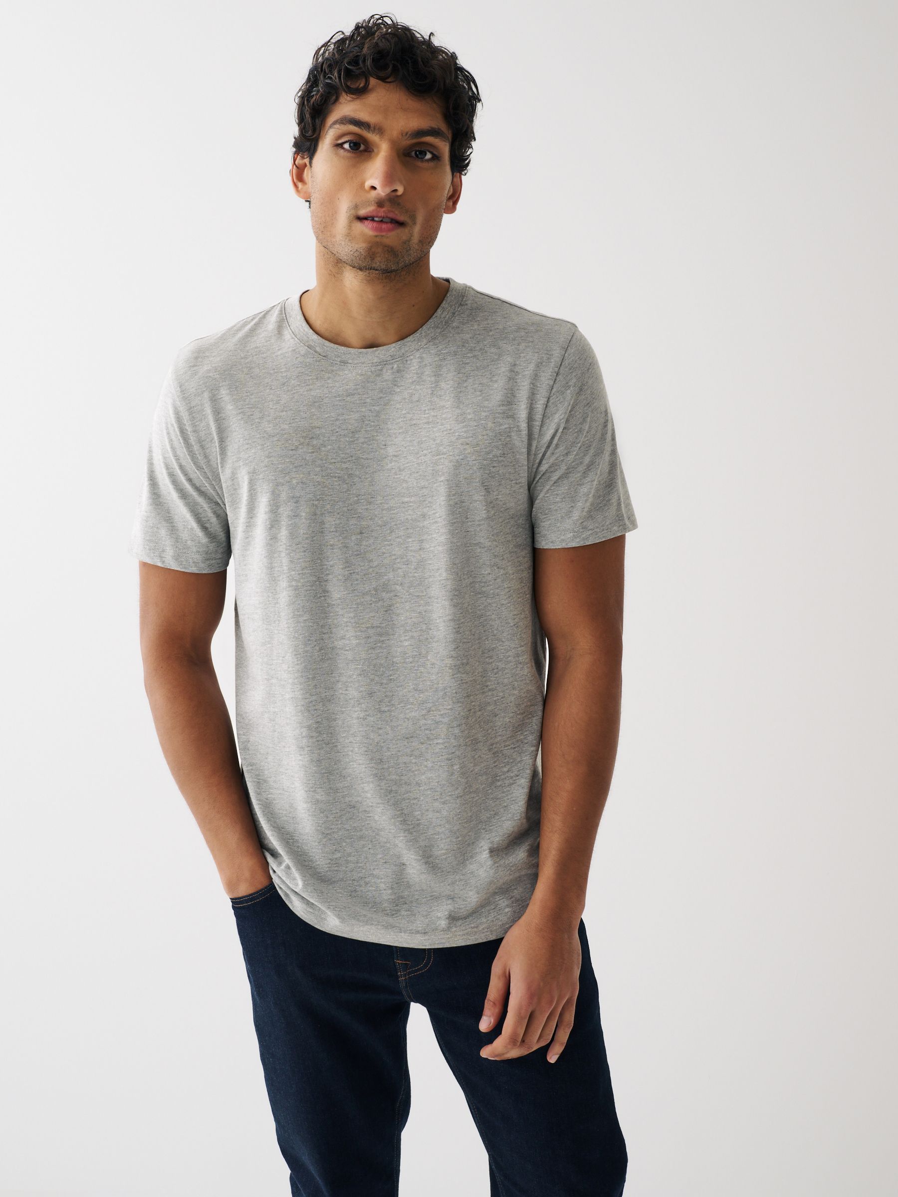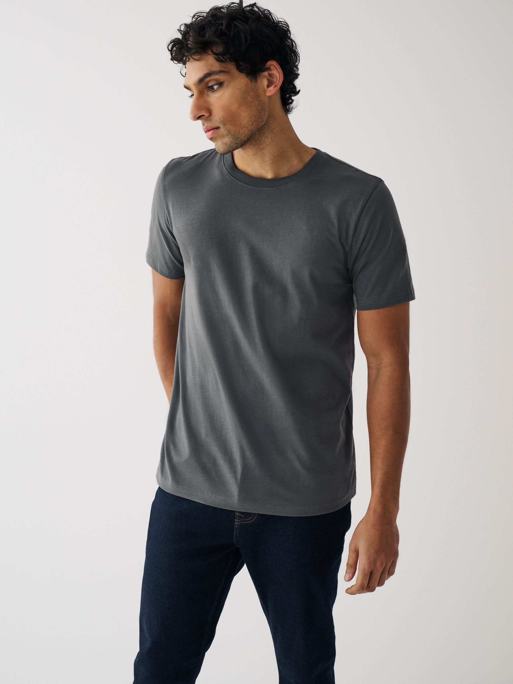 Our regular-fit T-Shirt is easy to wear and fits straight down the body. Stock up on everyday essentials with our 6 pack of men’s T-Shirts in black/slate/grey marl/white/navy/blue. With a crew neckline and short sleeves, these pure cotton T-Shirts are presented in an array of colours and are effortlessly easy to style. Our Essential T-Shirt will provide you with a great fit even after they have been washed as they have been pre-laundered. Lightweight fabric – 160gsm 5 x T-shirt Charcoal, Black, Navy, White and Denim 100% Cotton. T-shirt Grey Marl 90% Cotton, 10% Viscose. Made with U.S. Cotton Trust Protocol verified origin. A new standard in sustainble cotton production. The U.S. Cotton Trust Protocol assures more sustianable cotton farming, including fair working conditions and best practices for water and pesticide usage, soil diversity and greenhouse gas emmisions.