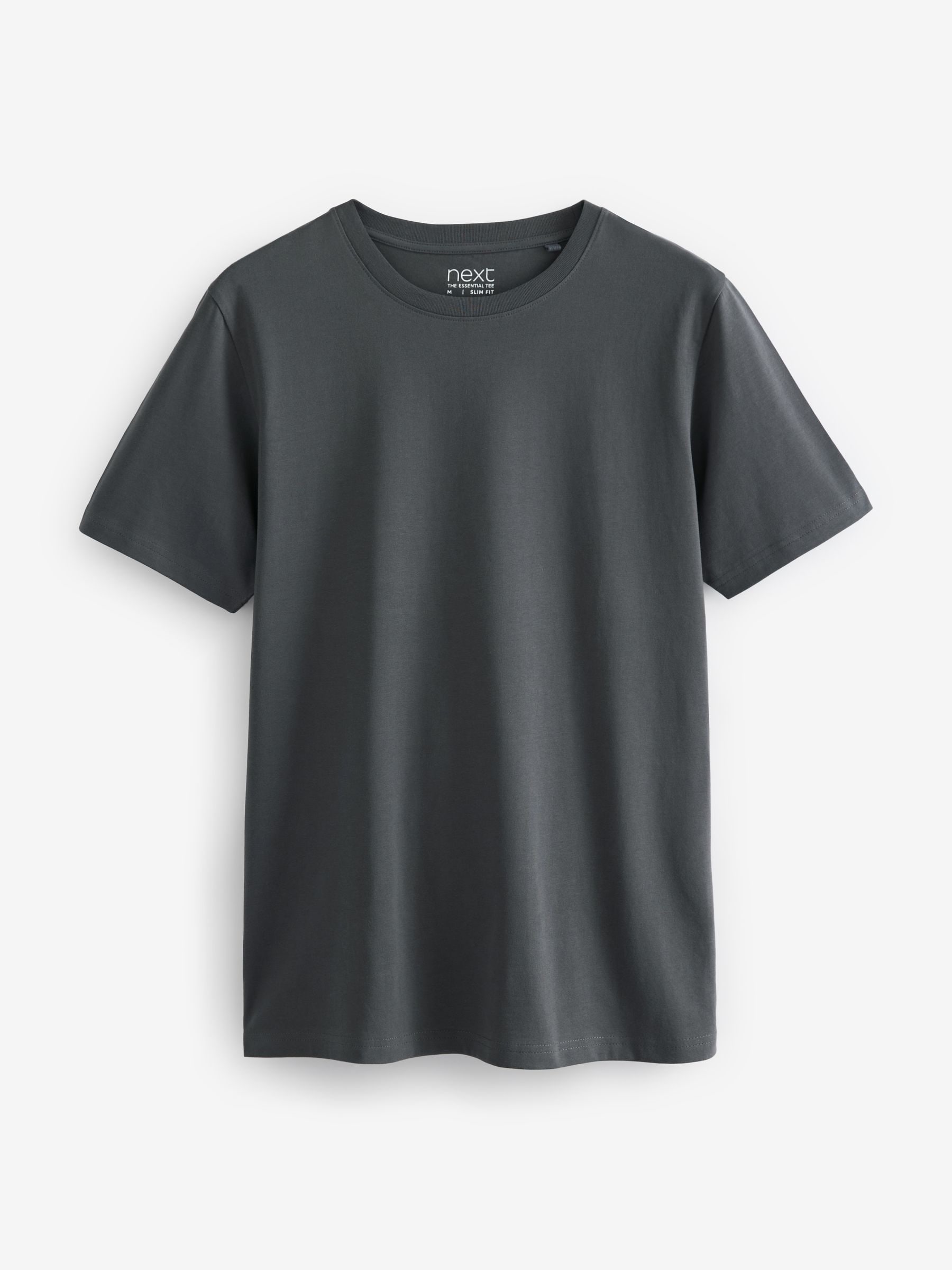 5 x T-shirt Charcoal, Black, Navy, White and Denim 100% Cotton. T-shirt Grey Marl 90% Cotton, 10% Viscose.