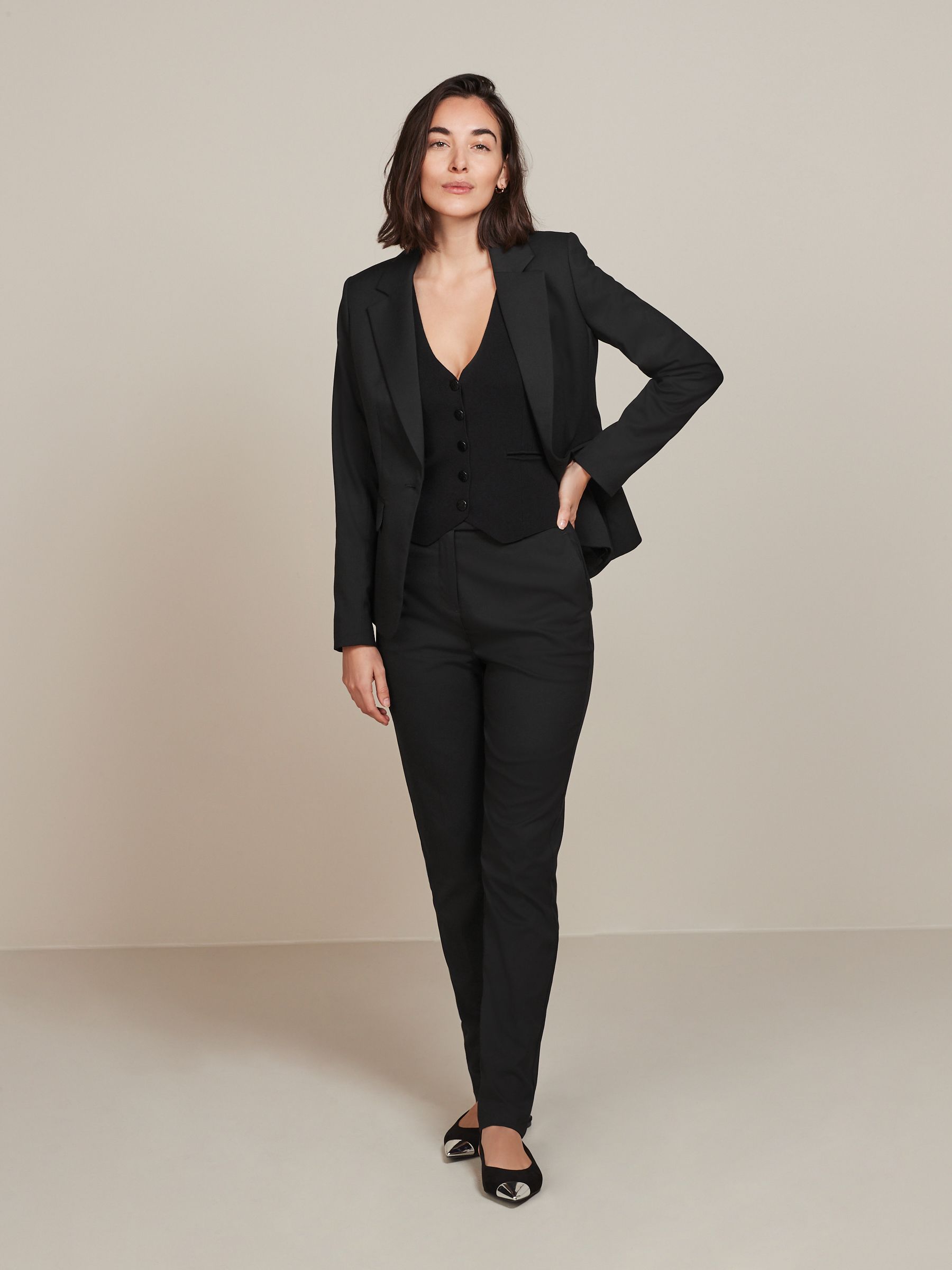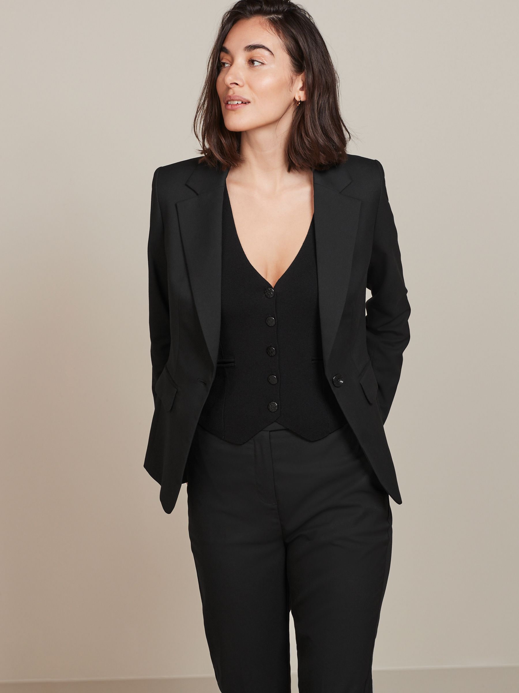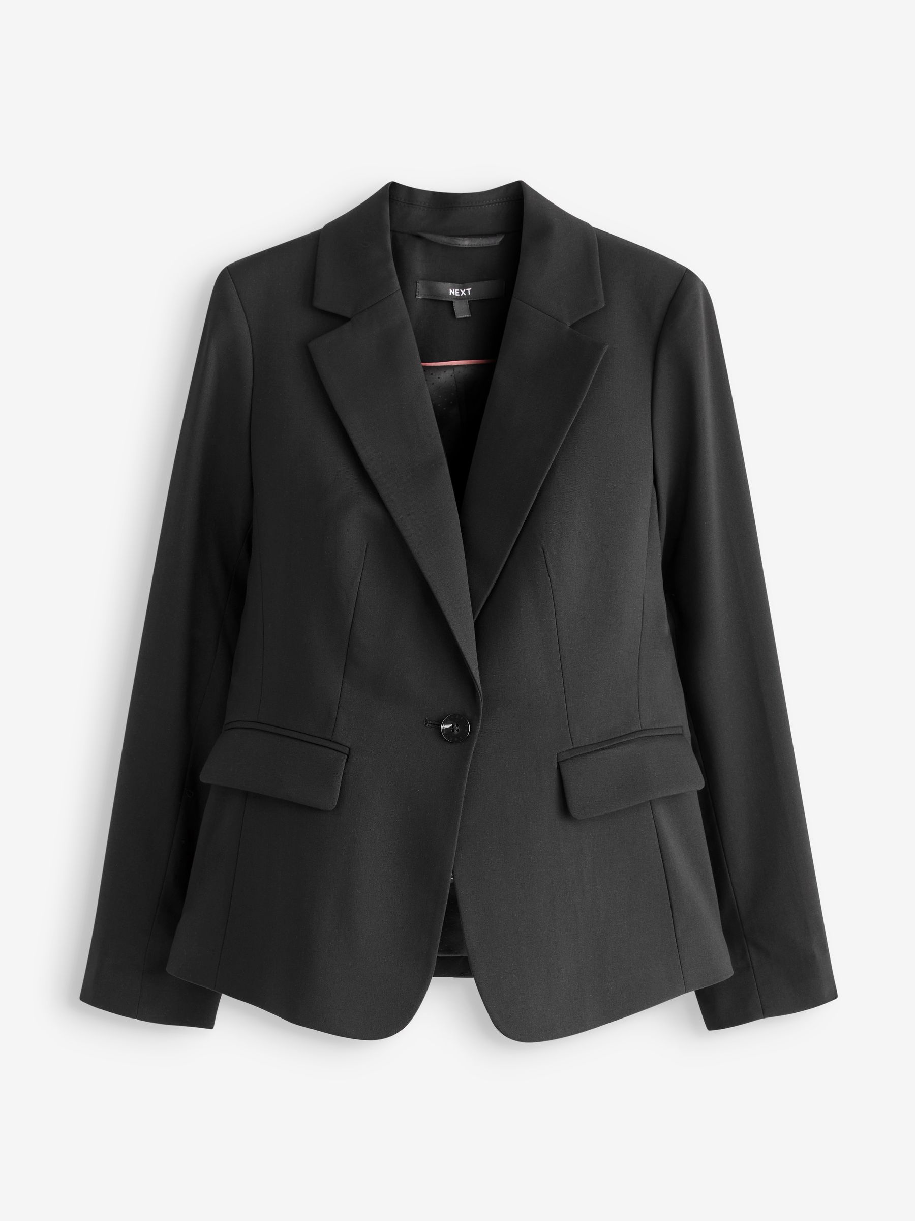 Create a smart silhouette in an instant with this single-breasted jacket, styled in a fitted shape with a notched lapel, functional pockets and a back vent for ease of movement. Ideal for your office outfits and formal occasions. Tailored Notched lapel Front pockets Single breasted Regular centre back neck to hem 25″ x 63cm. Machine washable. Main 64% Polyester, 34% Viscose, 2% Elastane. Lining 100% Polyester. Our tall collection is designed to fit women 5’10” and above. This has been proportionally increased through the body, leg and sleeve to achieve the perfect fit. Available in sizes 8-20., Items with the curve logo are available in sizes 18 and above.