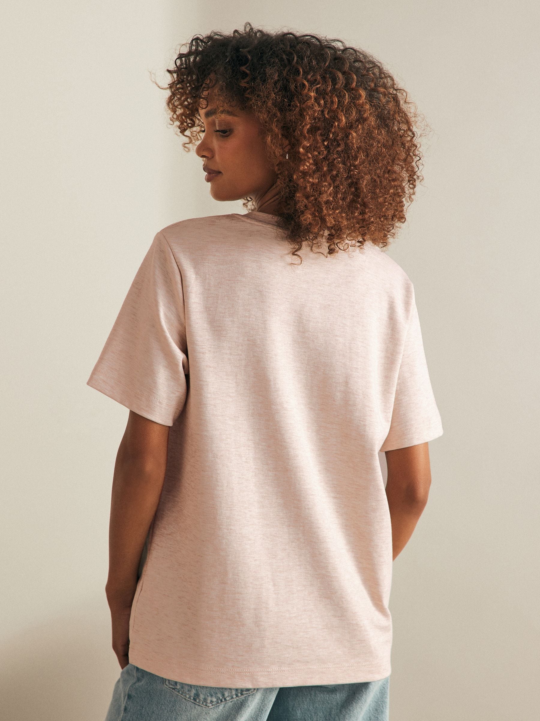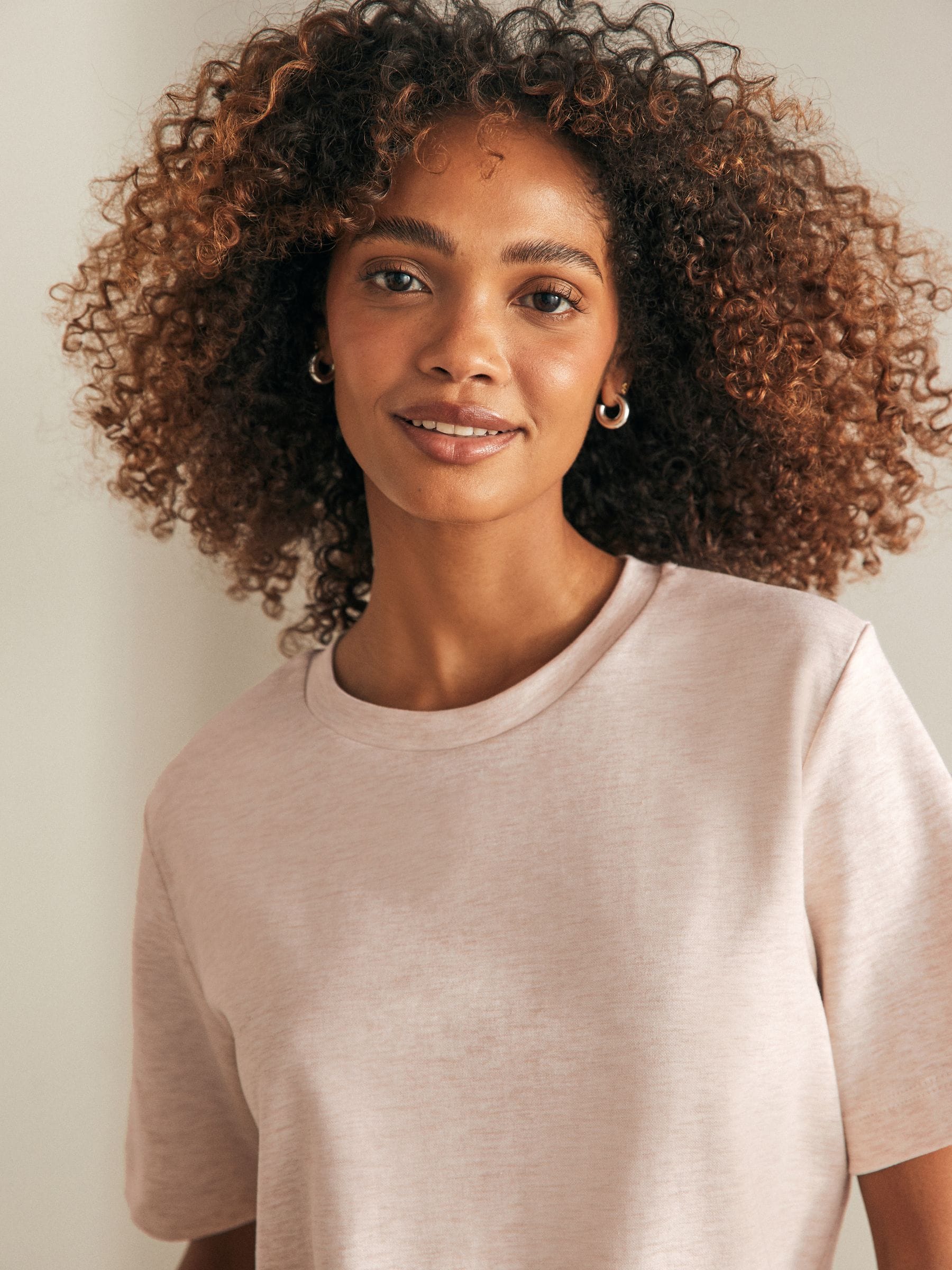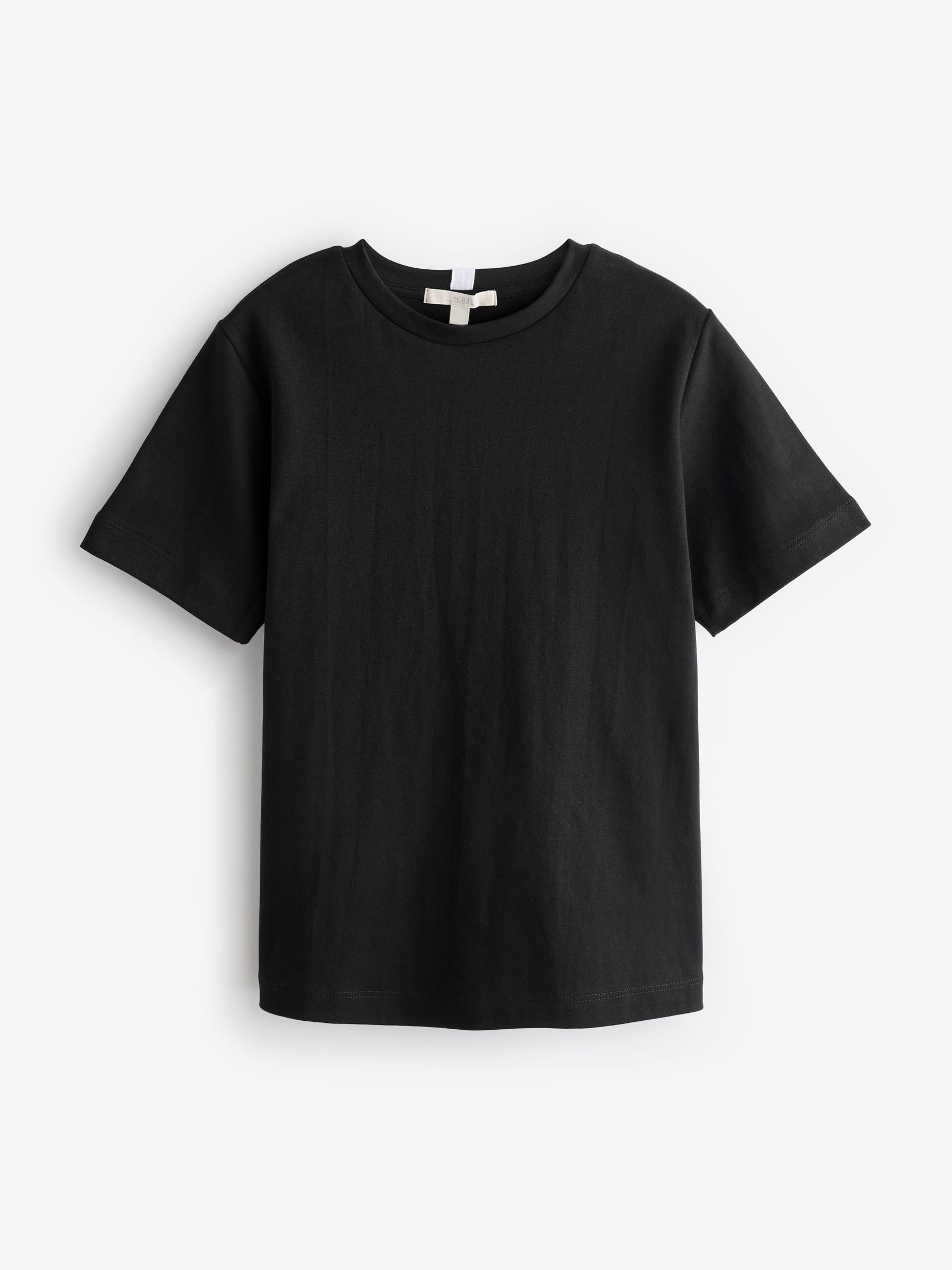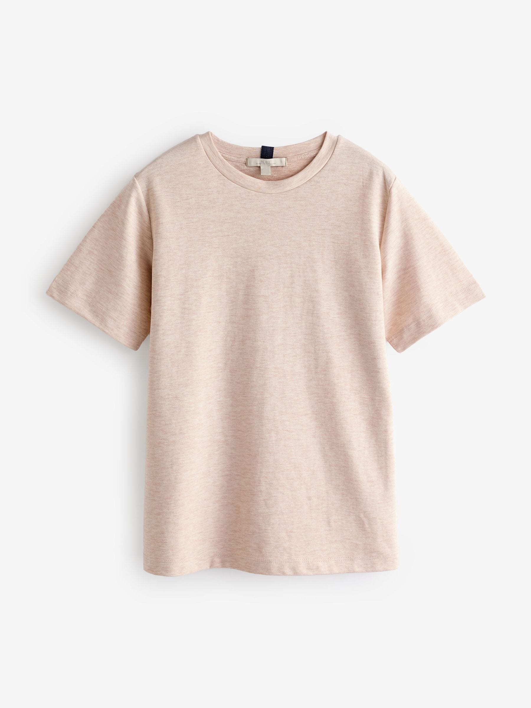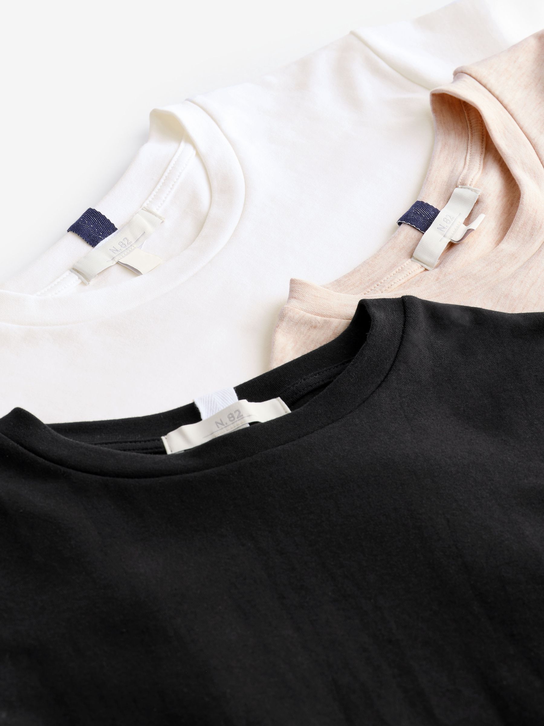 Now you can get your favourite tee in a 3 pack. Elevate your capsule wardrobe and indulge in an easy wearing trio. Made from the softest cotton and offering a heavyweight finish, our black, white and nude short-sleeved T-Shirt is a wardrobe must-have. Boasting a crew neck and a boxy fit, we know you will get some serious enjoyment from this classic T-Shirt. Team it with jeans and boots for an effortless look. 3-pack Boxy fit Cotton-rich blend Crewneck collar Machine washable. T-shirt and T-shirt 95% Cotton, 5% Elastane. T-shirt 92% Cotton, 5% Elastane, 3% Acrylic. Items with the curve logo are available in sizes 18 and above., Better Cotton – By choosing our cotton products, you’re supporting our investment in Better Cotton’s mission to help cotton farming communities survive and thrive while protecting and restoring the environment. This product is sourced via a system of mass balance and therefore may not contain Better Cotton. Learn more at www.next.co.uk/better-cotton