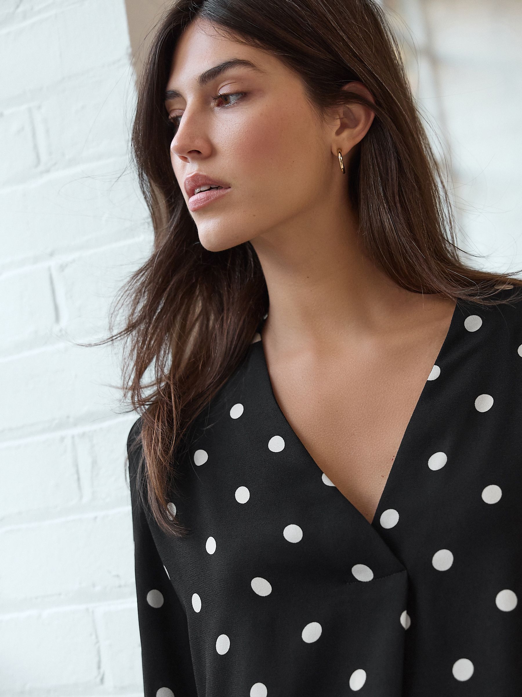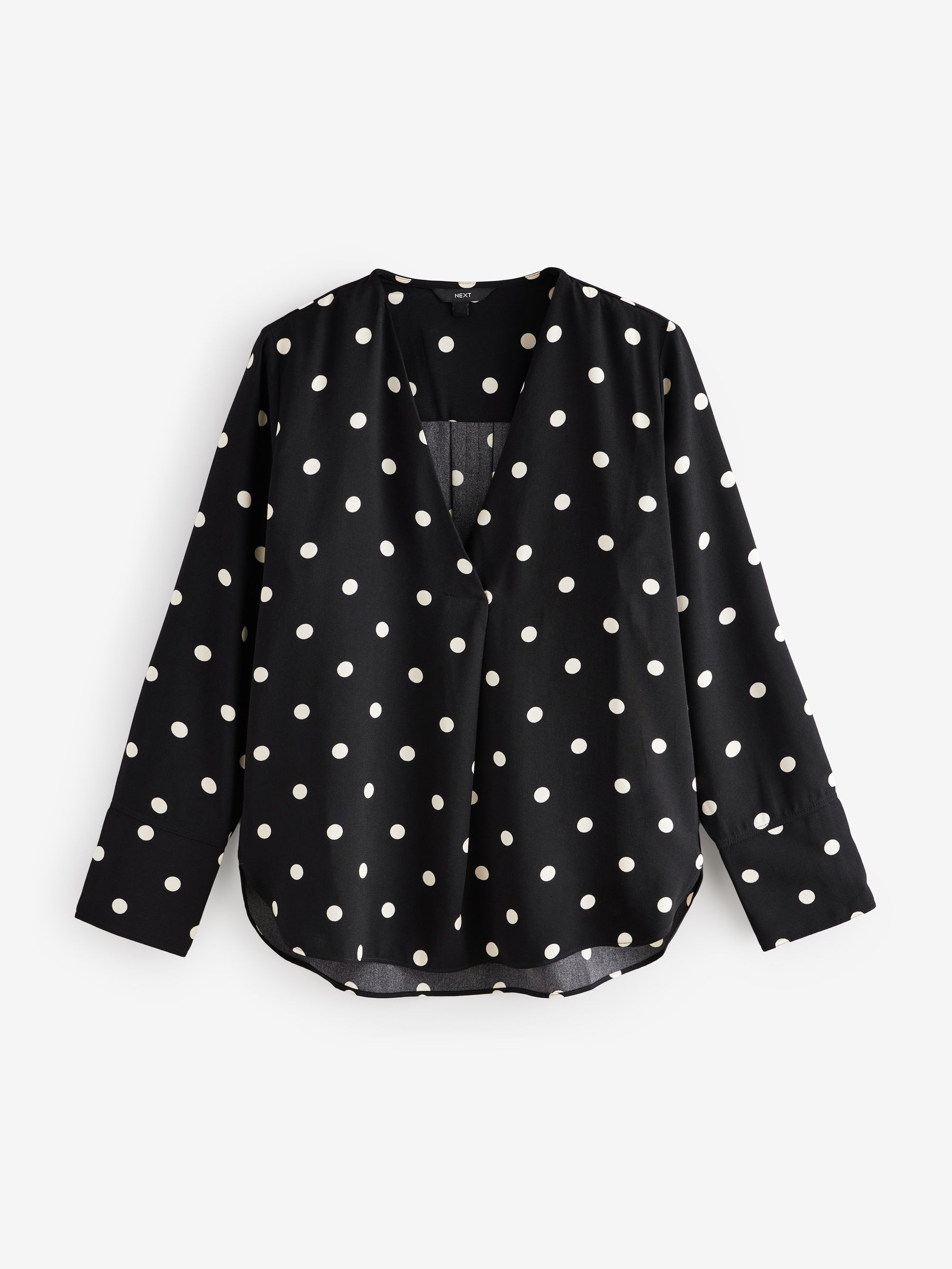 Elevate your office or weekend look with out long sleeve black overhead blouse. Cut with a V-neckline, in a relaxed fit, this versatile blouse is a classic everyday essential. Featuring a curved hem and cuffed sleeve detail, style with dark denim and a heel for effortless appeal.
