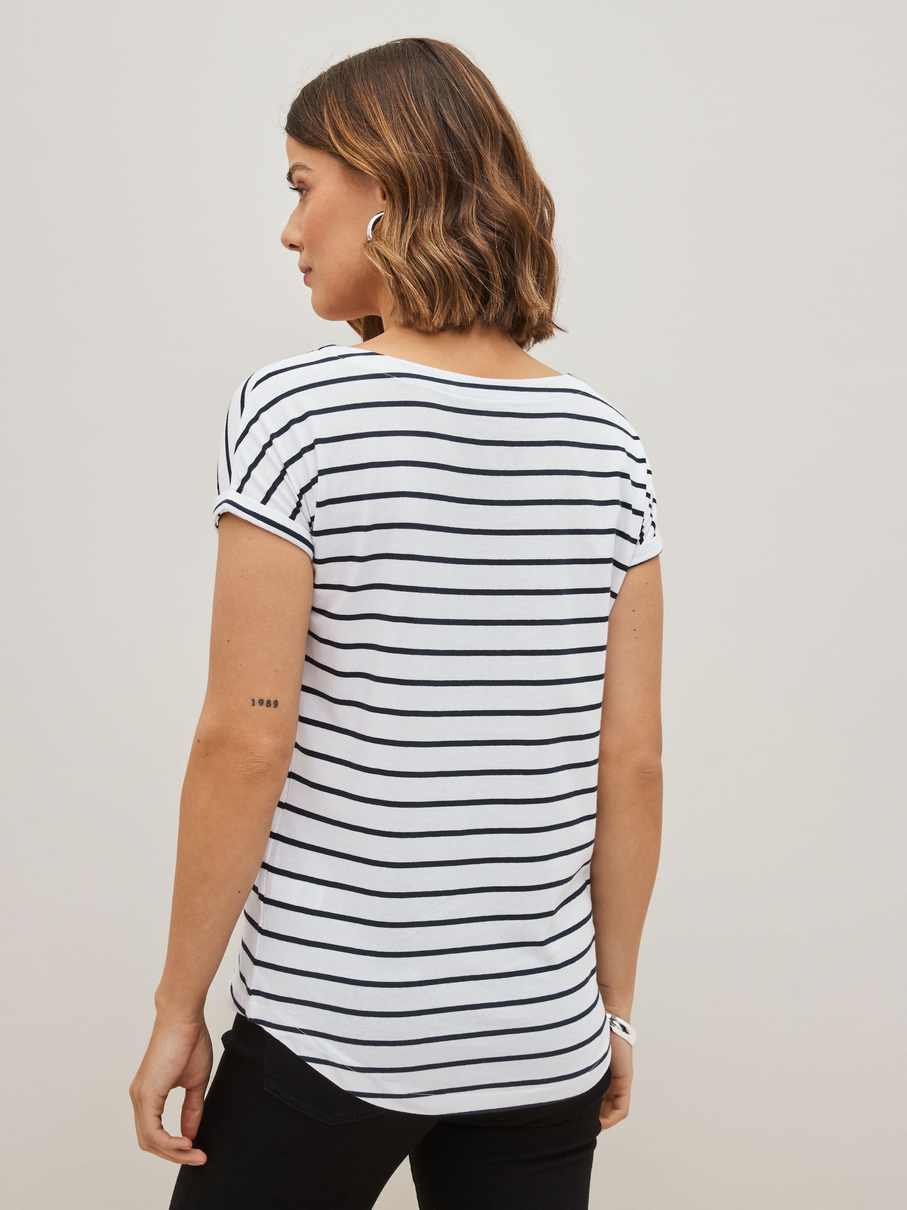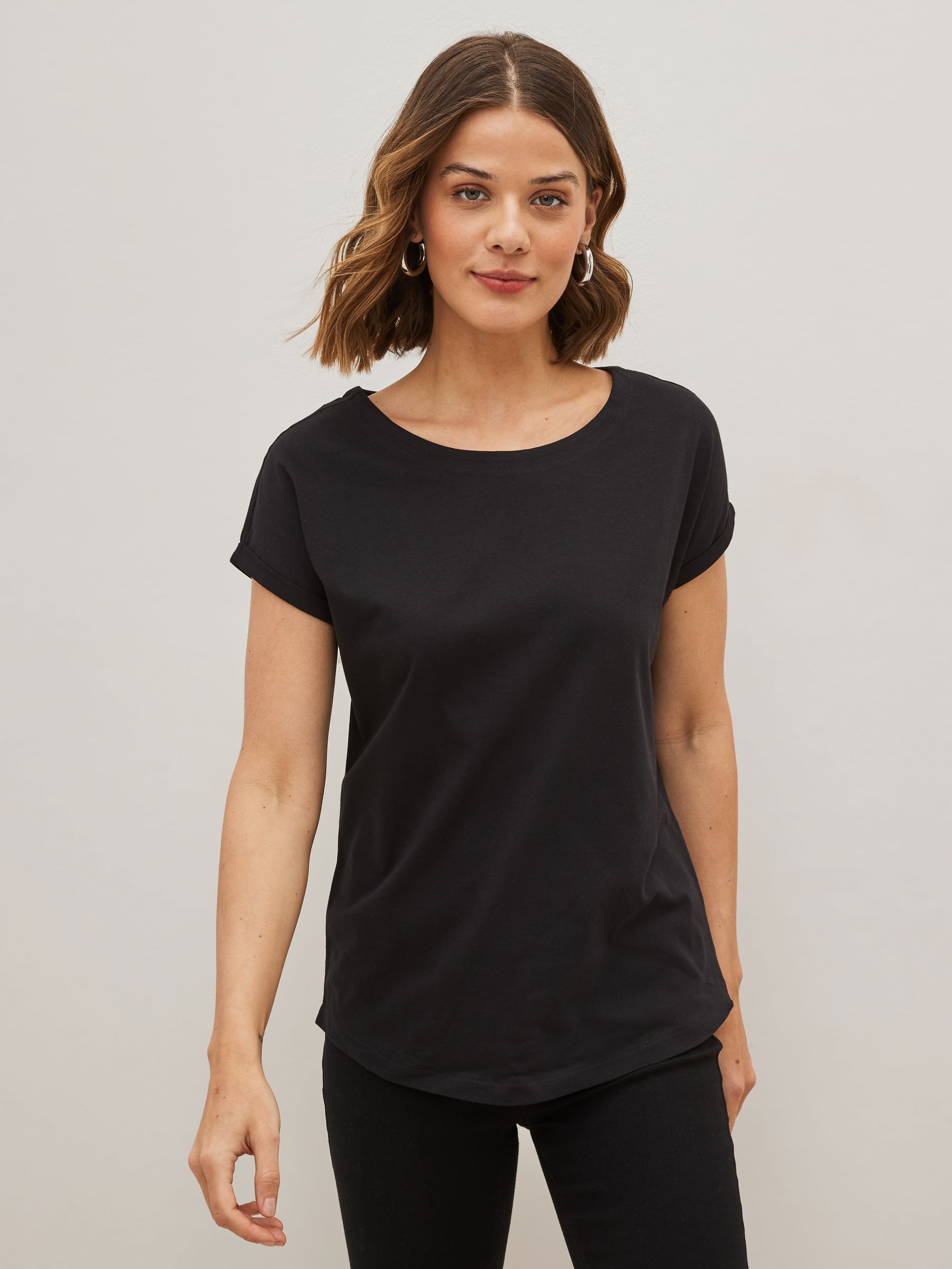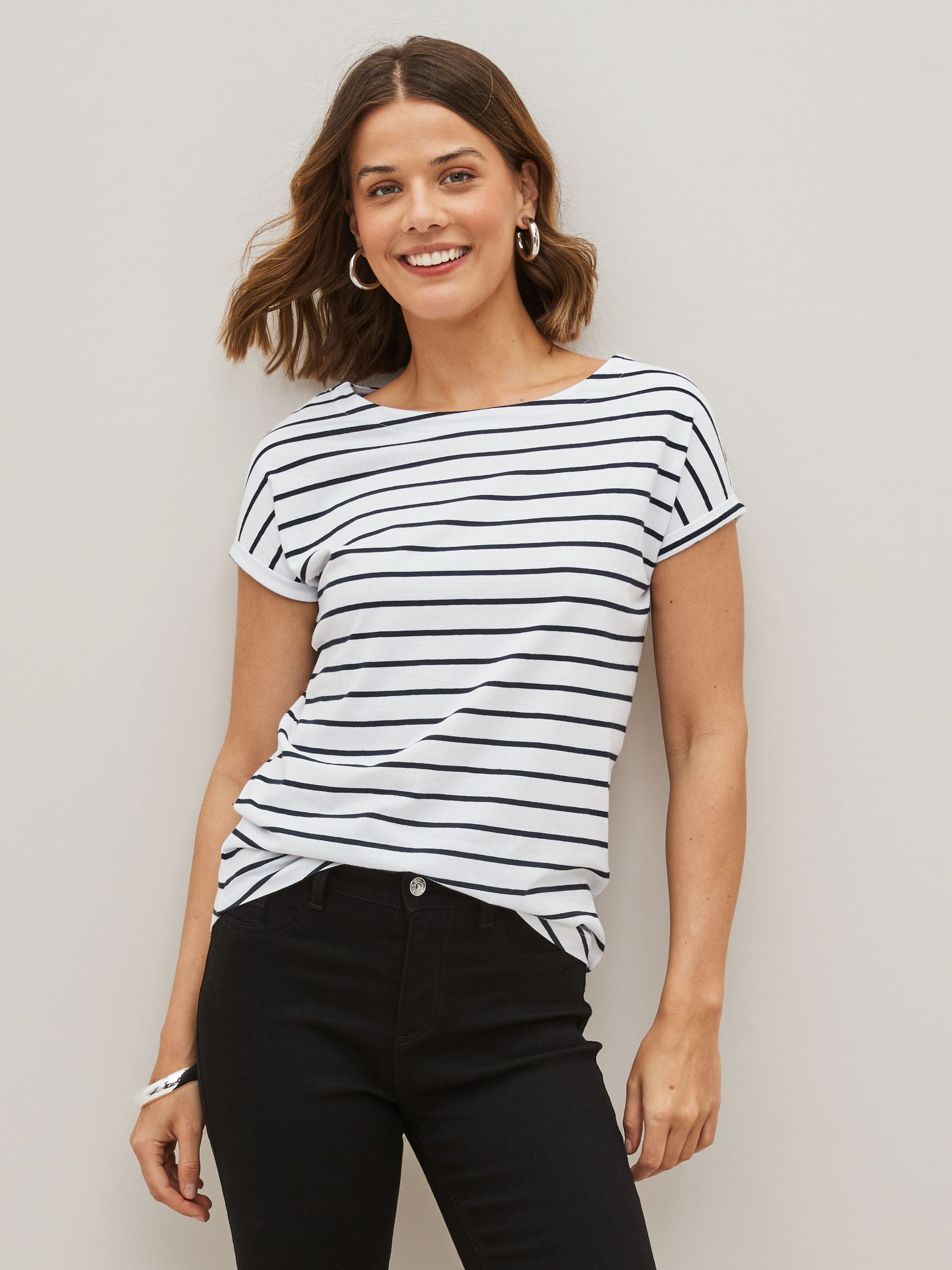 Update your basics with this pack of three flattering cap sleeve black, white & stripe T-Shirts. Made with cotton that is breathable and comfortable. Pack of 3 Cap sleeves Round neck Curved and elongated back hem Machine washable. 3 x T-shirt 100% Cotton. Items with the curve logo are available in sizes 18 and above., Made with U.S. Cotton Trust Protocol verified origin. A new standard in sustainble cotton production. The U.S. Cotton Trust Protocol assures more sustianable cotton farming, including fair working conditions and best practices for water and pesticide usage, soil diversity and greenhouse gas emmisions.