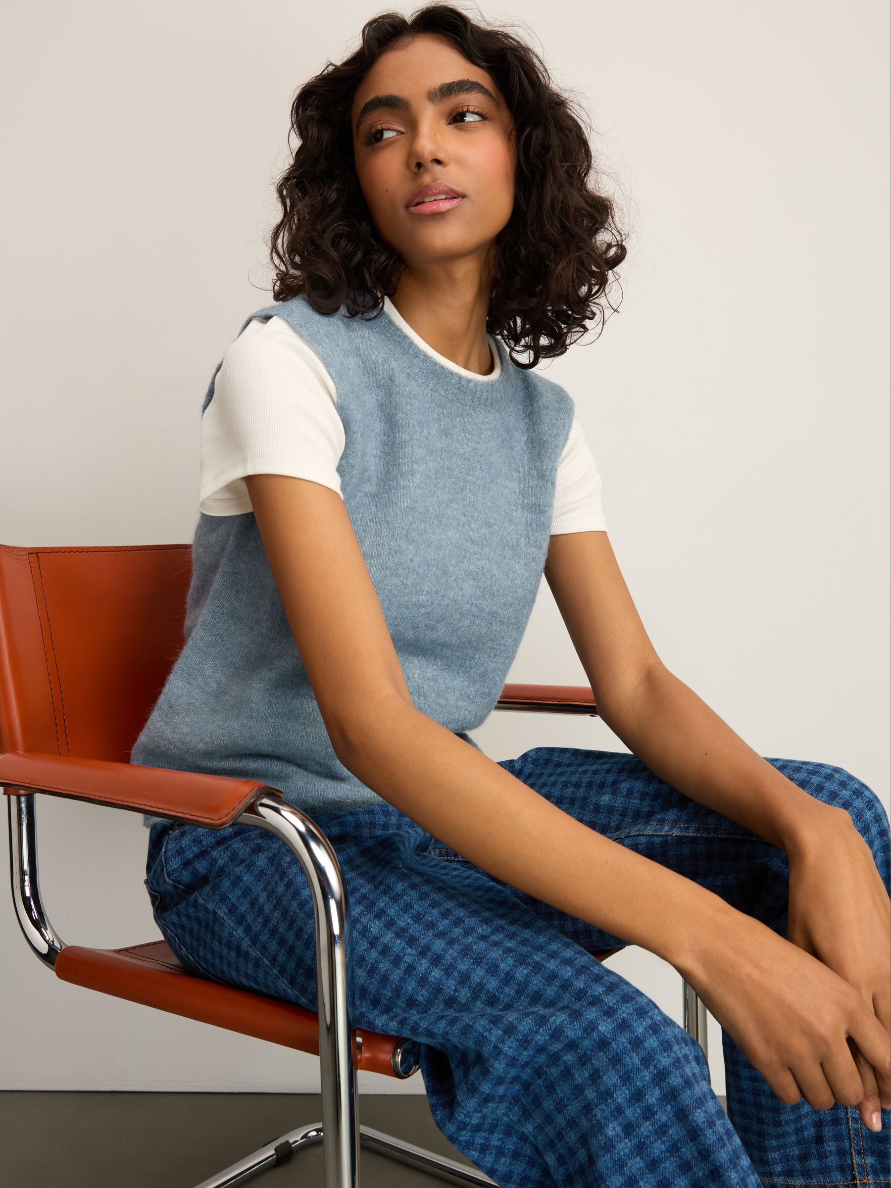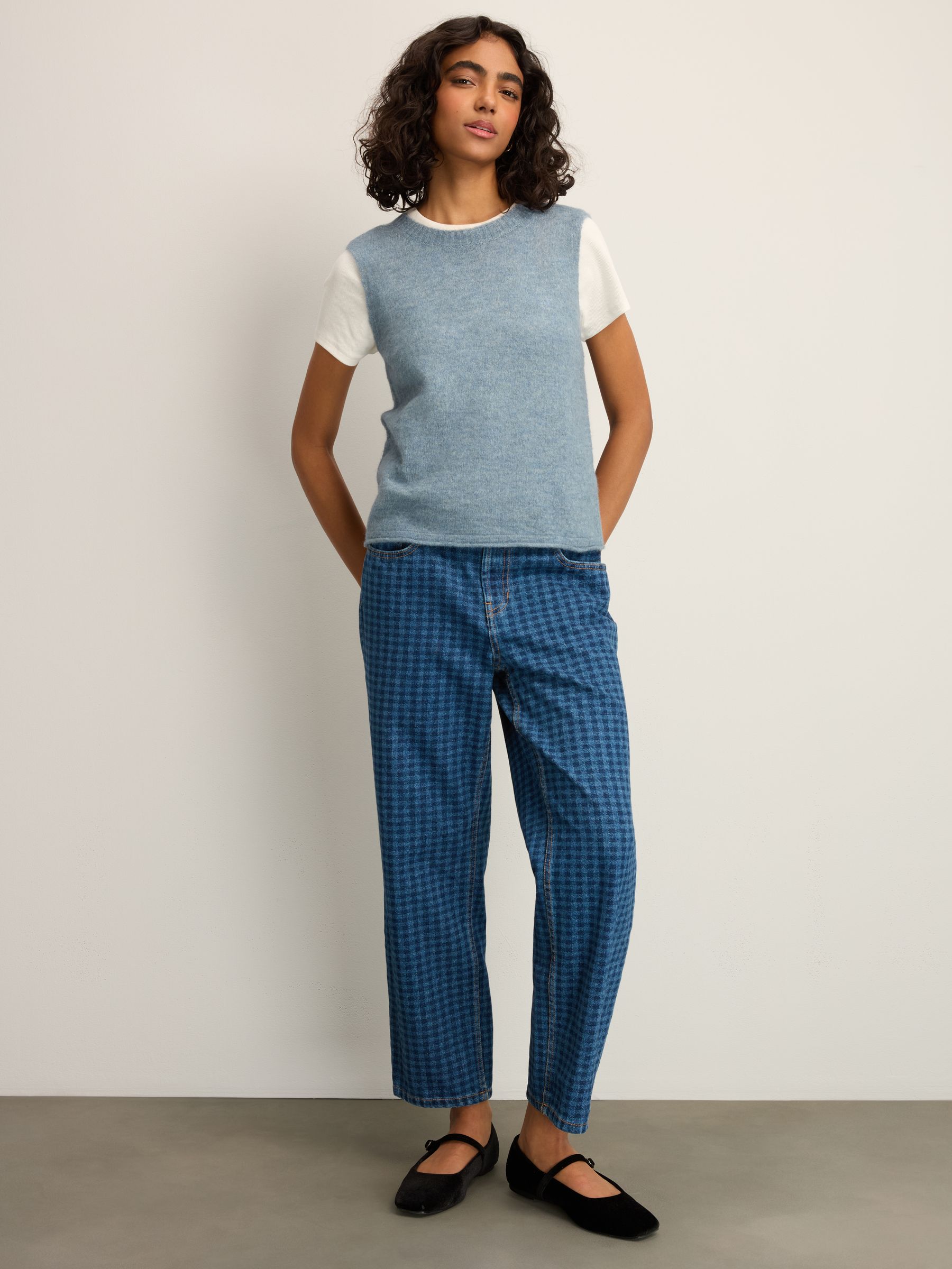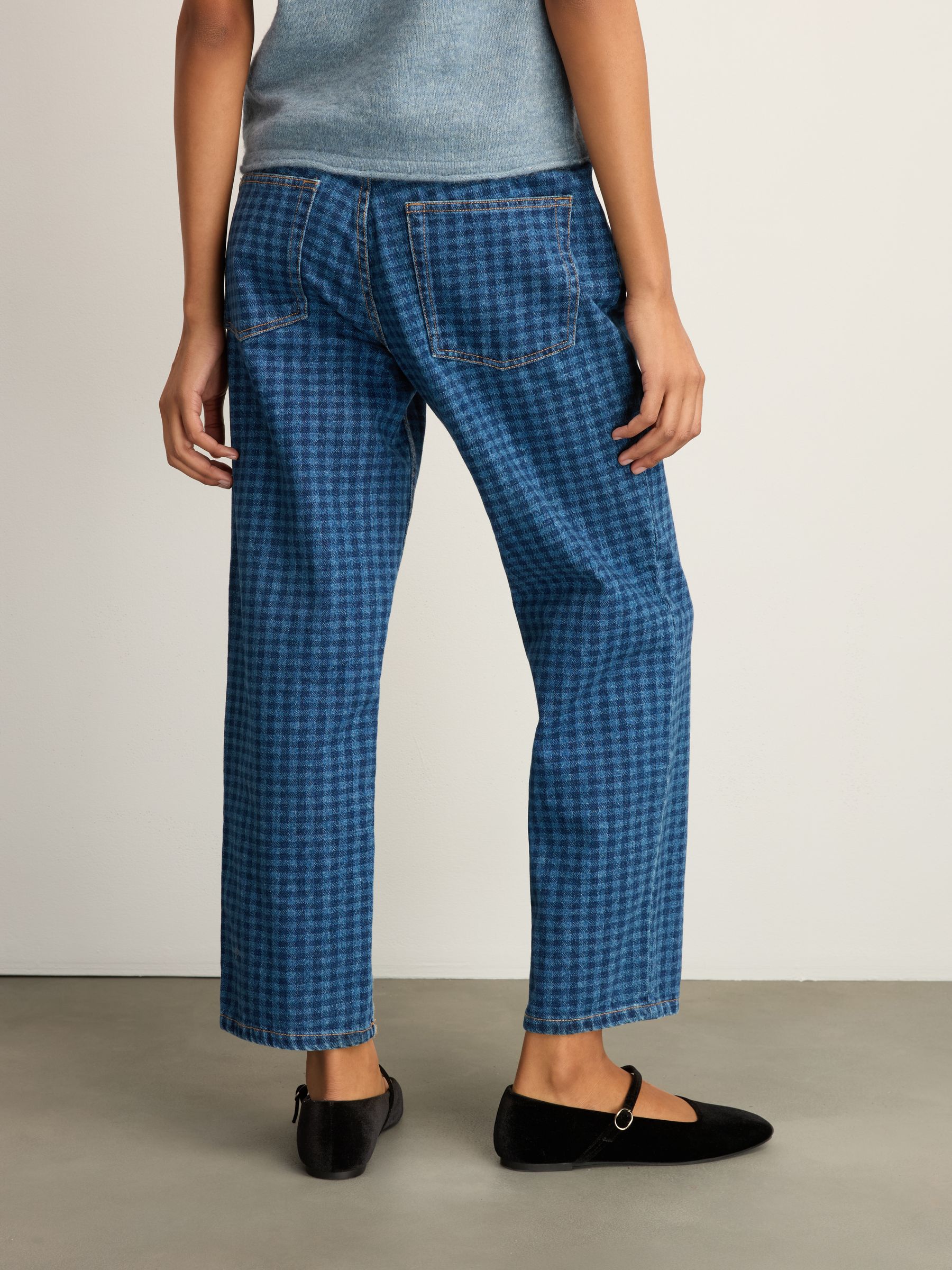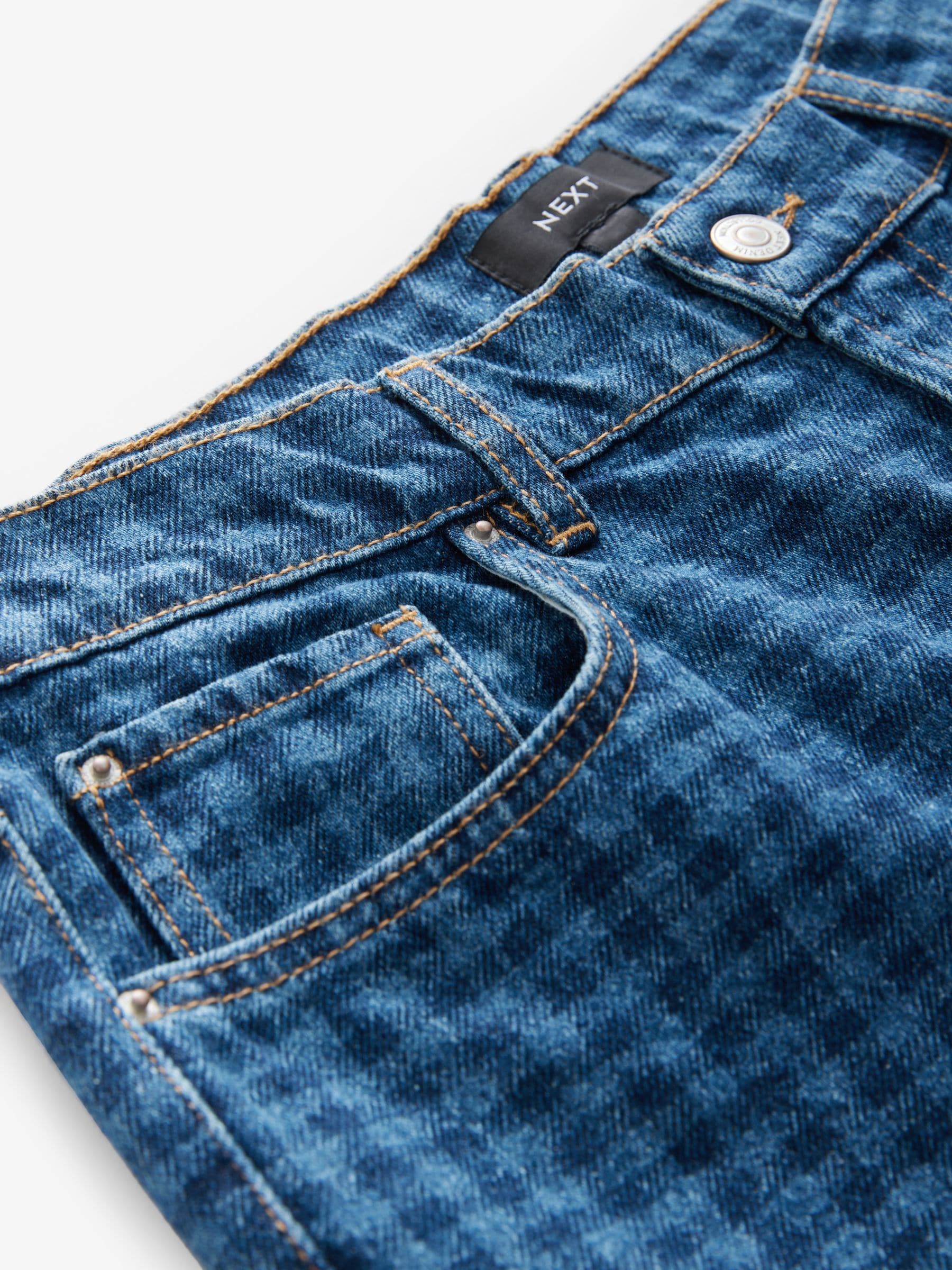 Blue Gingham Straight Leg 100% Cotton Jeans