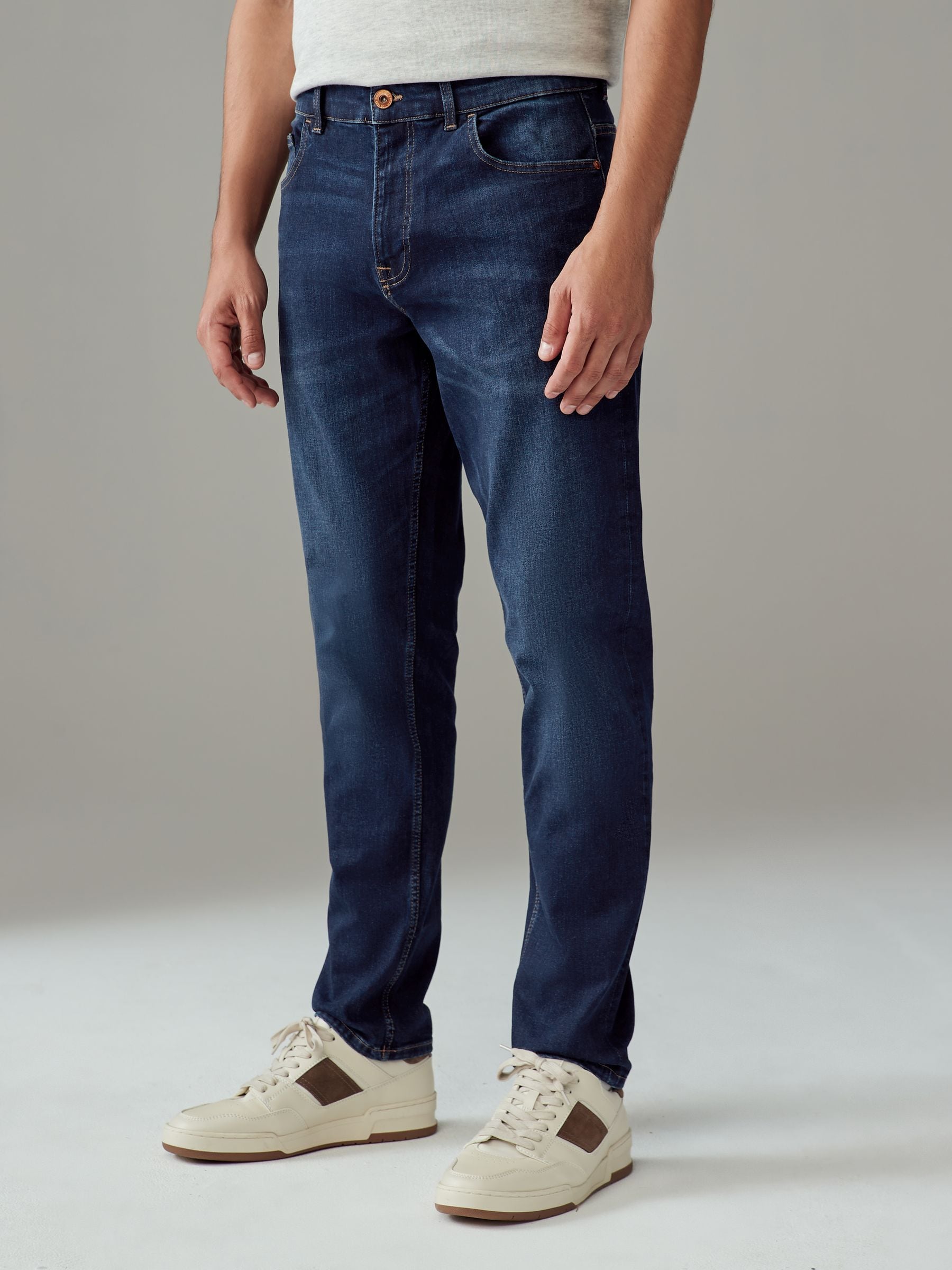 Stay well stocked with our handy 2-pack of slim fit mid and light blue jeans, featuring a cotton-rich denim fabric, finished with a button and zip fastening and 5-pocket detailing.
