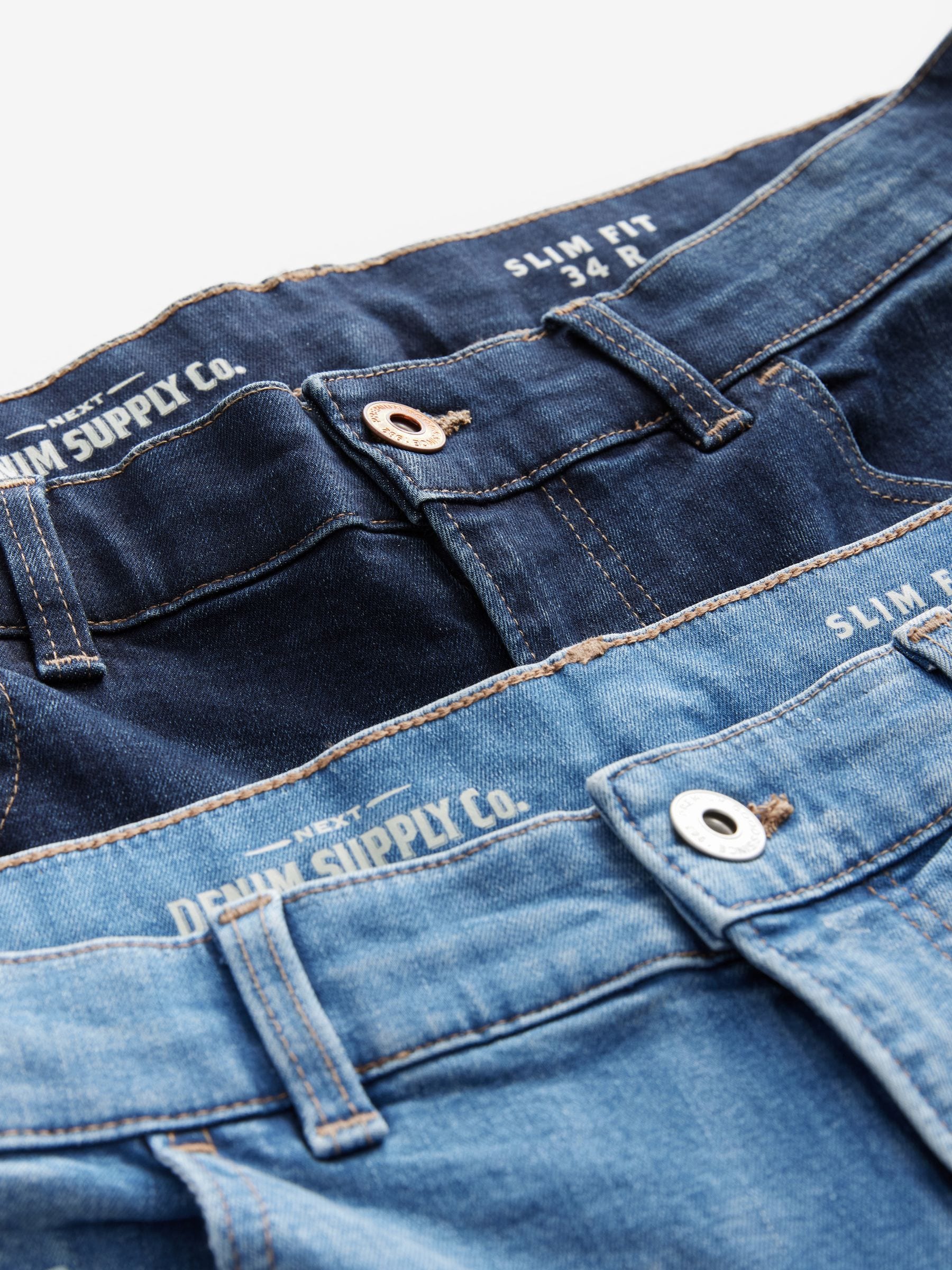 Stay well stocked with our handy 2-pack of slim fit mid and light blue jeans, featuring a cotton-rich denim fabric, finished with a button and zip fastening and 5-pocket detailing. 2-pack Slim fit Cotton-rich denim 5-pocket Button and zip fastening Machine washable. 2 x Jeans 92% Cotton, 6% Recycled polyester, 2% Elastane.