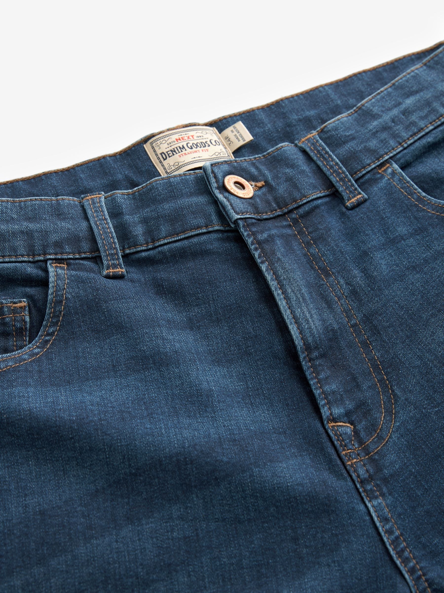 Elevate your everyday essentials with our mens’ classic stretch jeans. In a straight leg silhouette, this timeless style comes with endless styling options. Crafted in a cotton rich blend with added stretch, they make a comfortable and stylish addition to your yearly rotation. Complete with pockets, zip fly and button fastening and belt loops. Cotton rich blend Added stretch Pockets Straight leg shape Zip fly and button fastening Machine washable. 92% Cotton, 6% Recycled polyester, 2% Elastane. Better Cotton – By choosing our cotton products, you’re supporting our investment in Better Cotton’s mission to help cotton farming communities survive and thrive while protecting and restoring the environment. This product is sourced via a system of mass balance and therefore may not contain Better Cotton. Learn more at www.next.co.uk/better-cotton