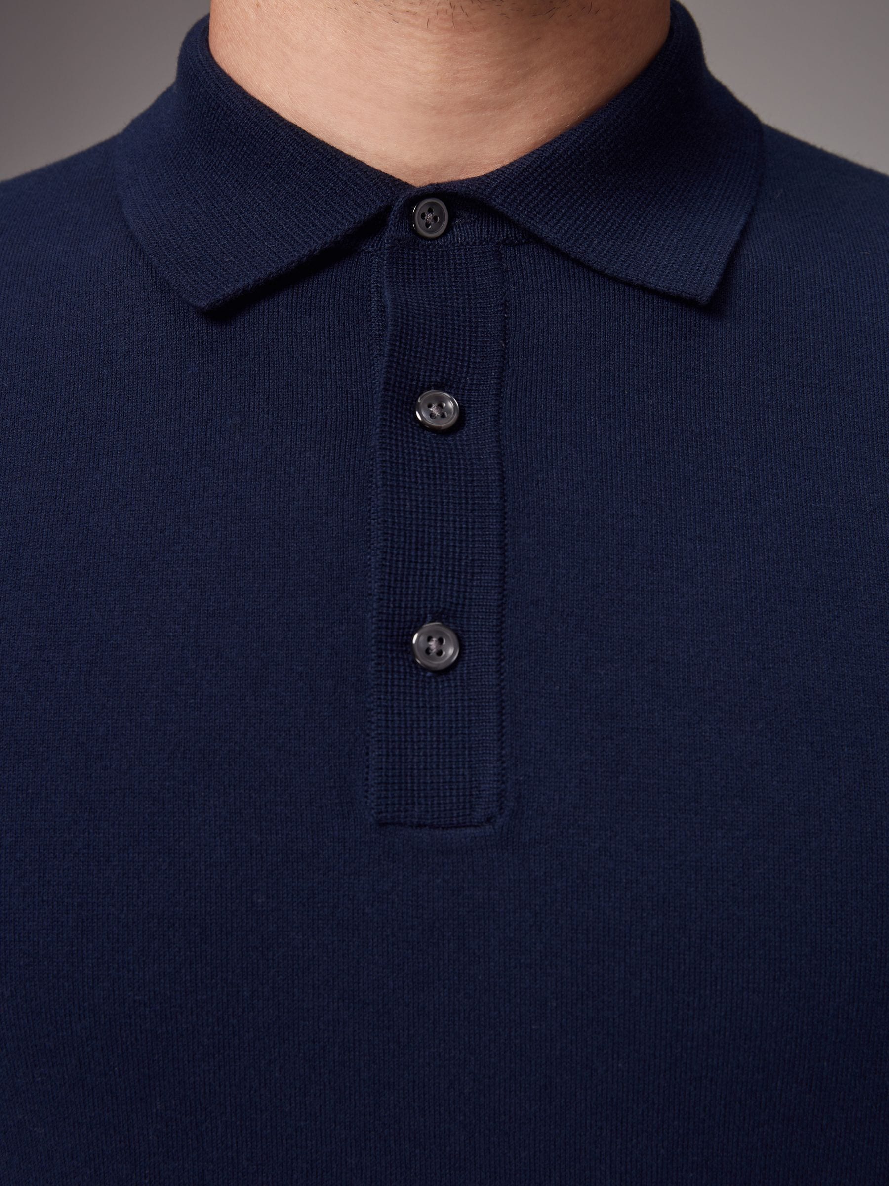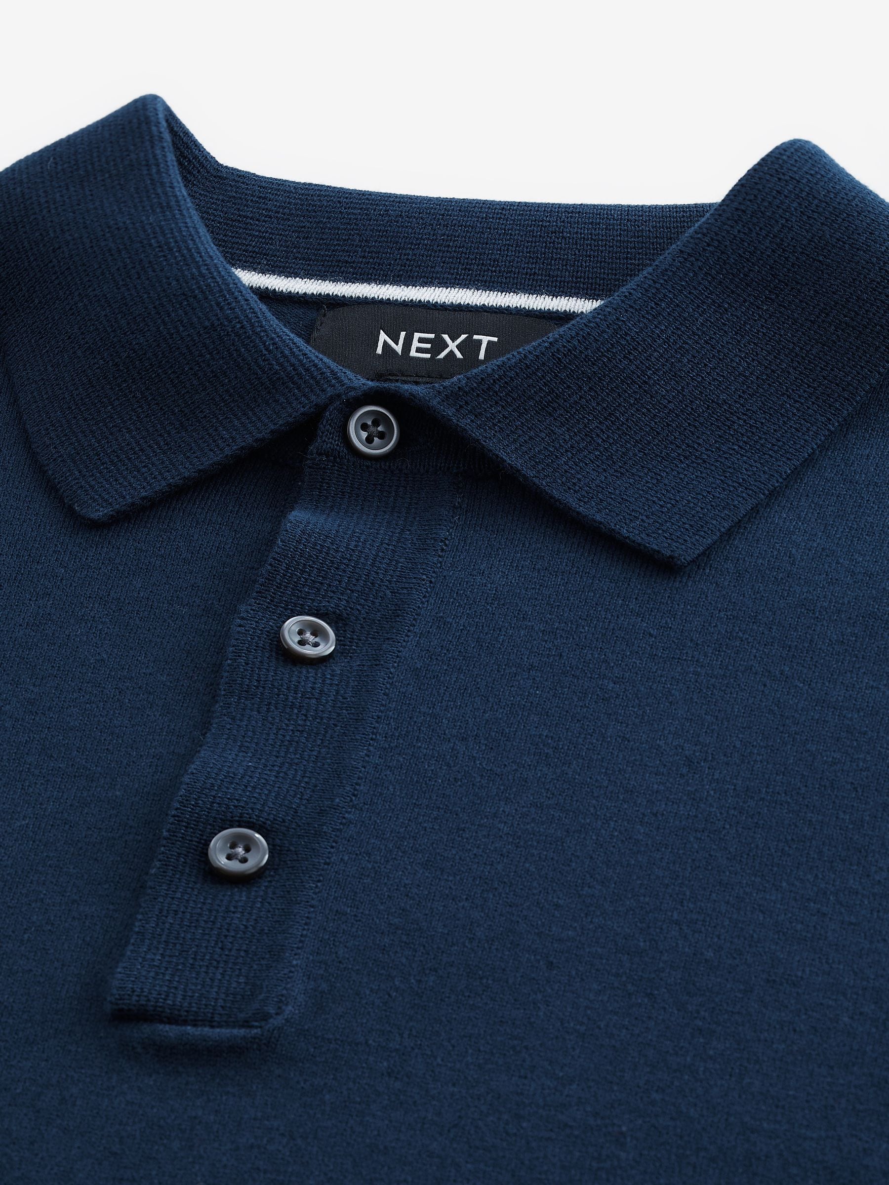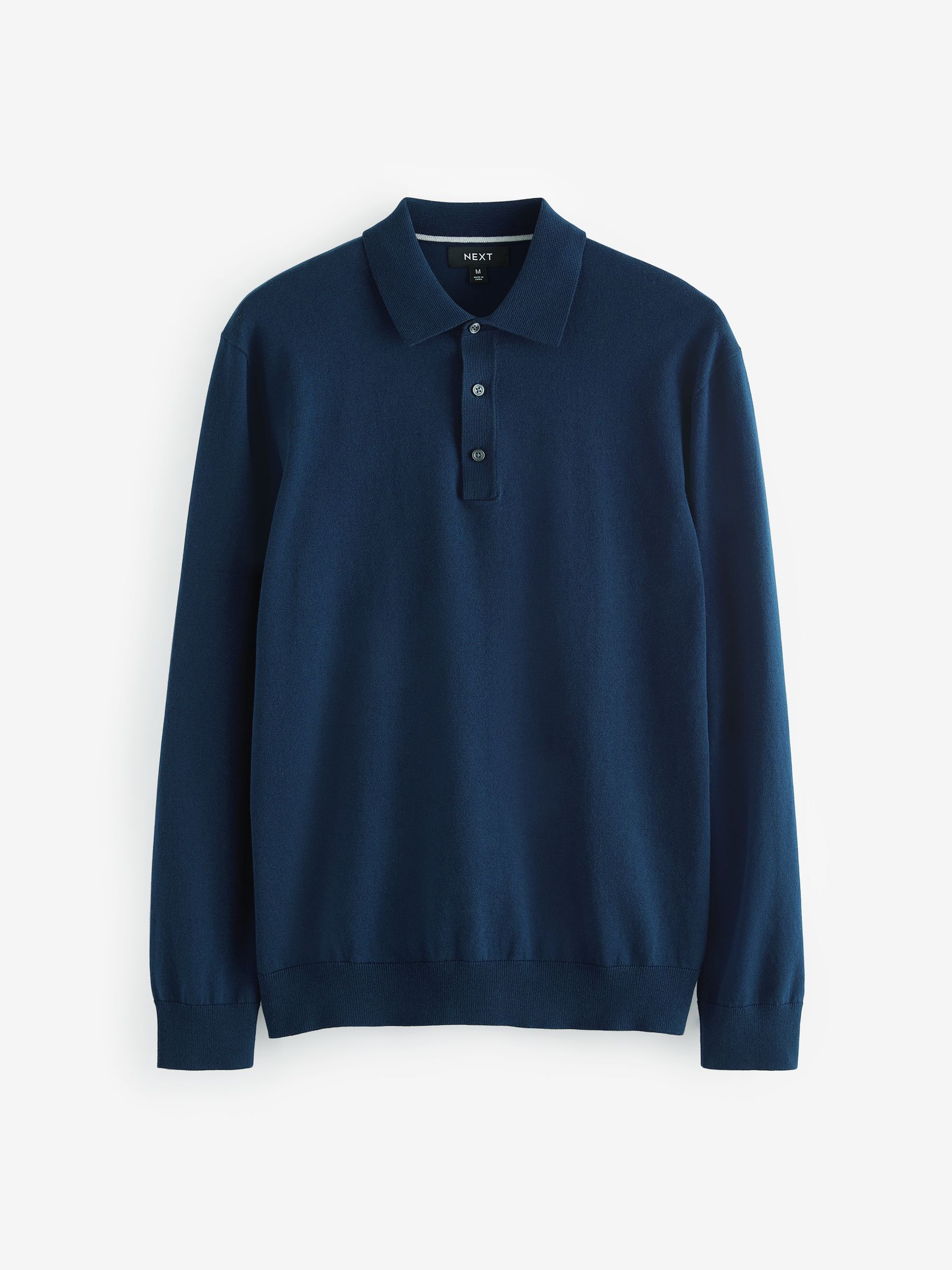 Elevate your smart-casual selection with this cotton-blend navy blue regular-fit knitted polo shirt, featuring a button-up neckline, a classic collar, ribbed sleeve cuffs and a ribbed hem. Perfect for wearing as a stand alone top or on top of a t-shirt as a mid-layer. Regular fit Cotton-blend Knitted fabric Button-up fastening Classic collar Ribbed cuffs and hem 82% Cotton, 18% Nylon.