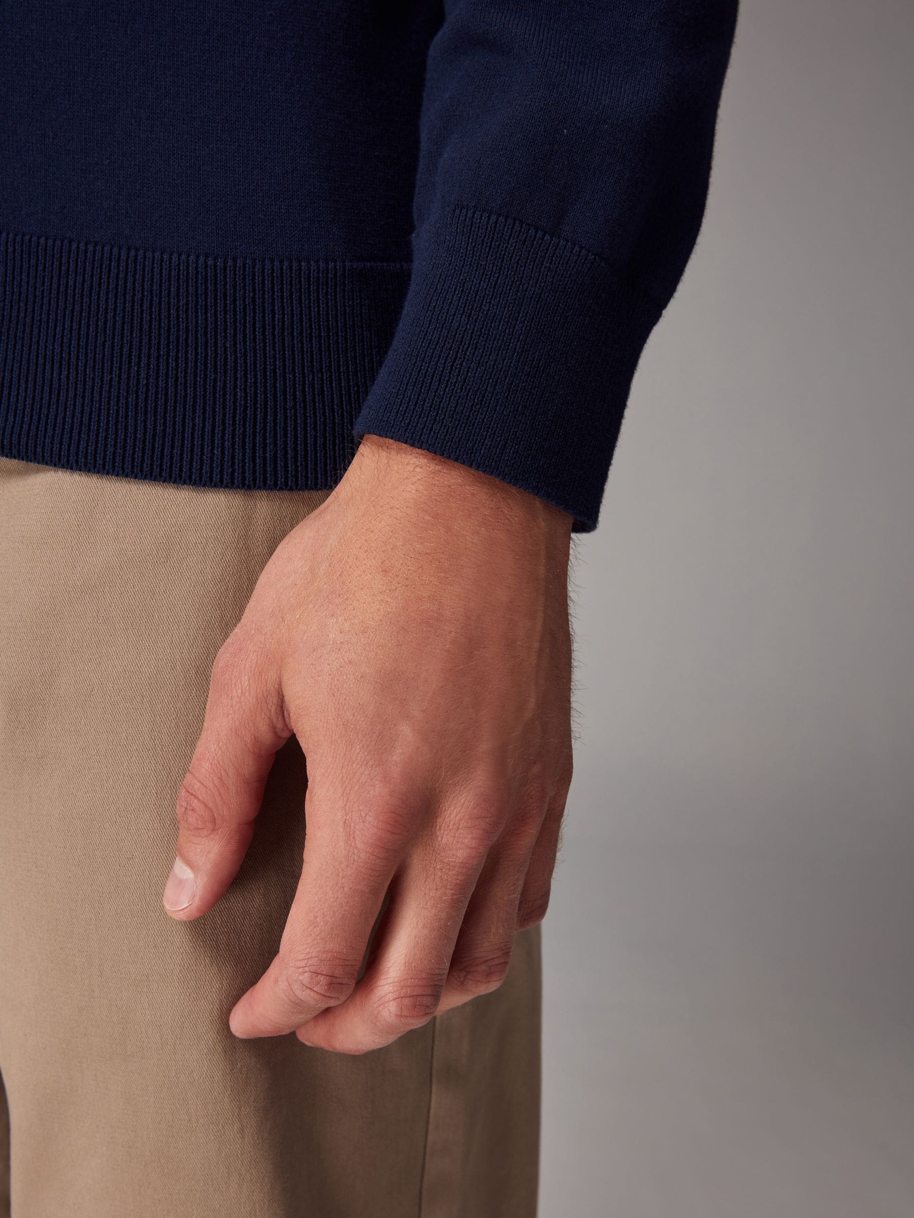 - Ribbed cuffs and hem