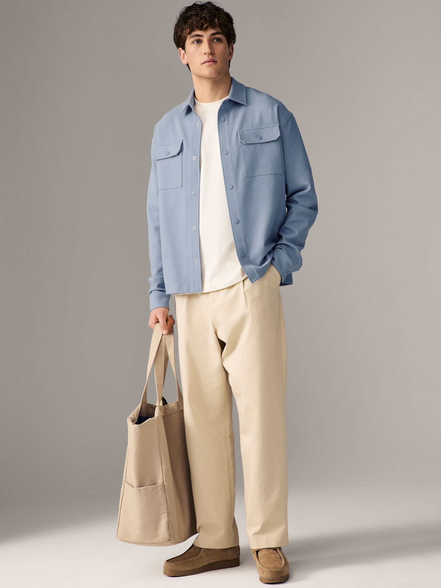 This premium textured jersey Stone overshirt is perfect for nailing a cool on-the-go look, featuring a zip fastening, a classic collar and chest pockets. Long sleeves Collar front Placket with zip fastening Chest pockets with popper-fastened flaps Machine washable. 54% Cotton, 42% Recycled polyester, 4% Elastane.