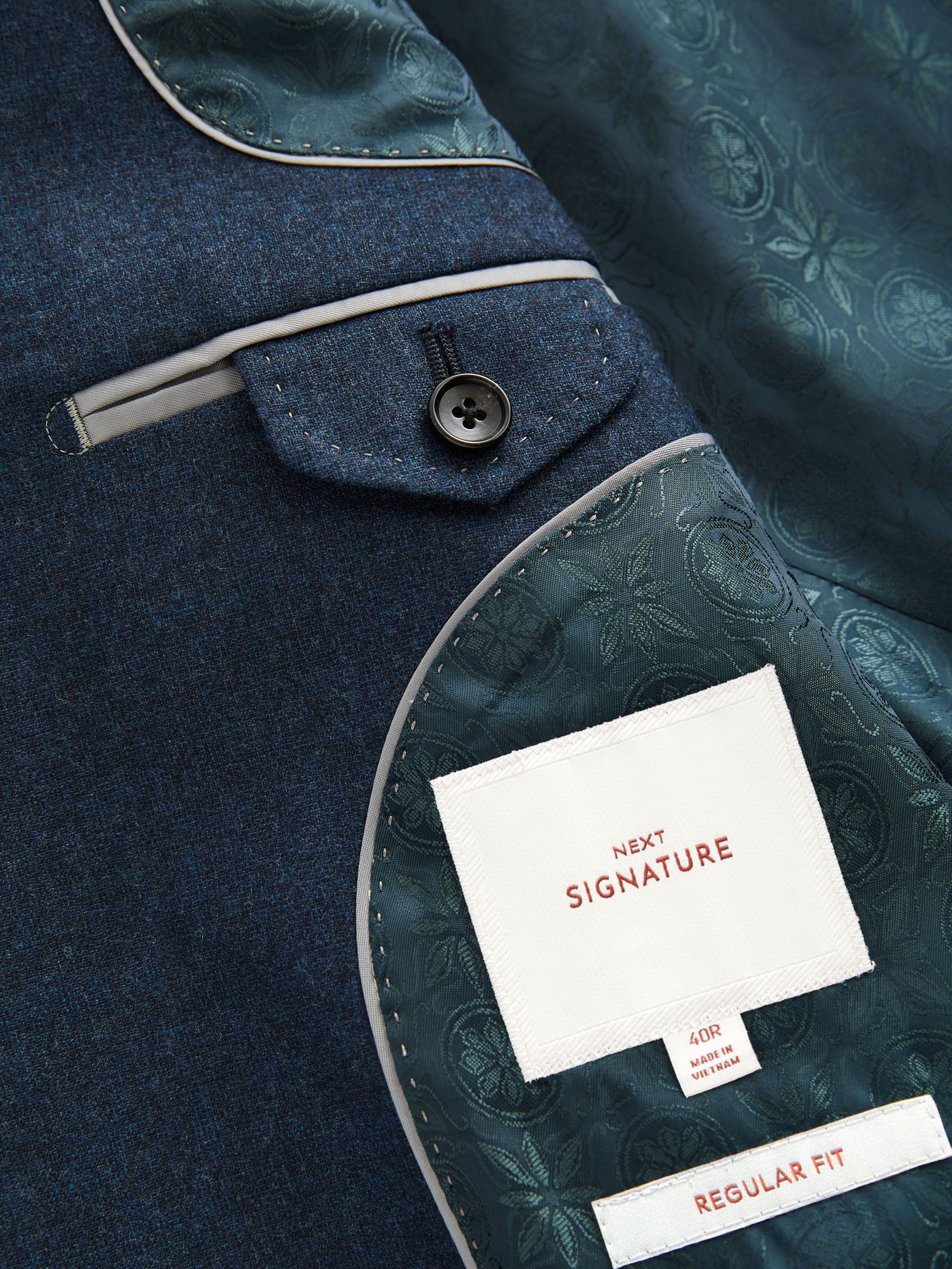 Crafted from luxurious Zignone Italian fabric with a touch of cashmere, the Signature Zignone flannel suit jacket in blue is the pinnacle of elegance and comfort. The premium wool ensures a soft, smooth texture that makes every wearing a pleasure. This impeccably tailored piece features a half-canvas chest construction that moulds perfectly to your body, offering both durability and a flattering fit. Inside, the jacquard lining and multiple internal pockets adds more flair. Additionally, the functional cuffs not only add sophistication but also allow for easy adjustments. ZignoneZignone creates fabrics of contemporary elegance for the greatest international menswear brands. Among the most established “Made in Italy” companies in Biella, the mill takes care of every manufacturing step, standing out for flexibility, speed of production, and control. Zignone collections weave tradition and discovery, refined taste and search for wearability, launching a new generation of fabrics that are ideal for a dynamic lifestyle. Signature suit jacket Made in Italy Wool-blend fabric Flannel feel Notched lapel collar Button-up fastening Single breasted Flap pockets Pull-out chest pocket Main 90% Wool, 10% Cashmere. Lining 57% Polyester, 43% Viscose.