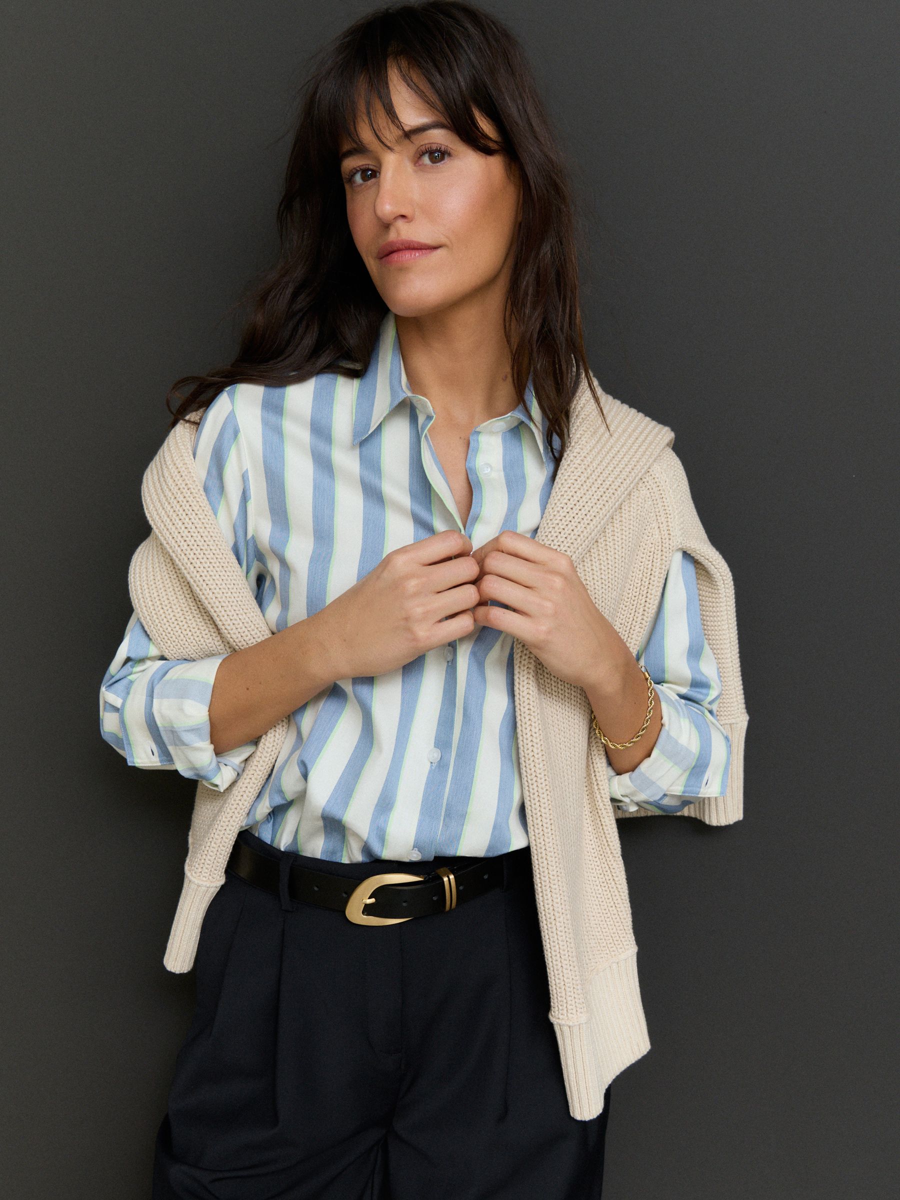 The perfect shirt for everyday wear, this pure cotton striped shirt can be worn as the perfect layering piece with your favourite smart trouser and a white tee, or wear buttoned up with jeans for a smart casual look. Complete with button-down fastening, long sleeves and collar.