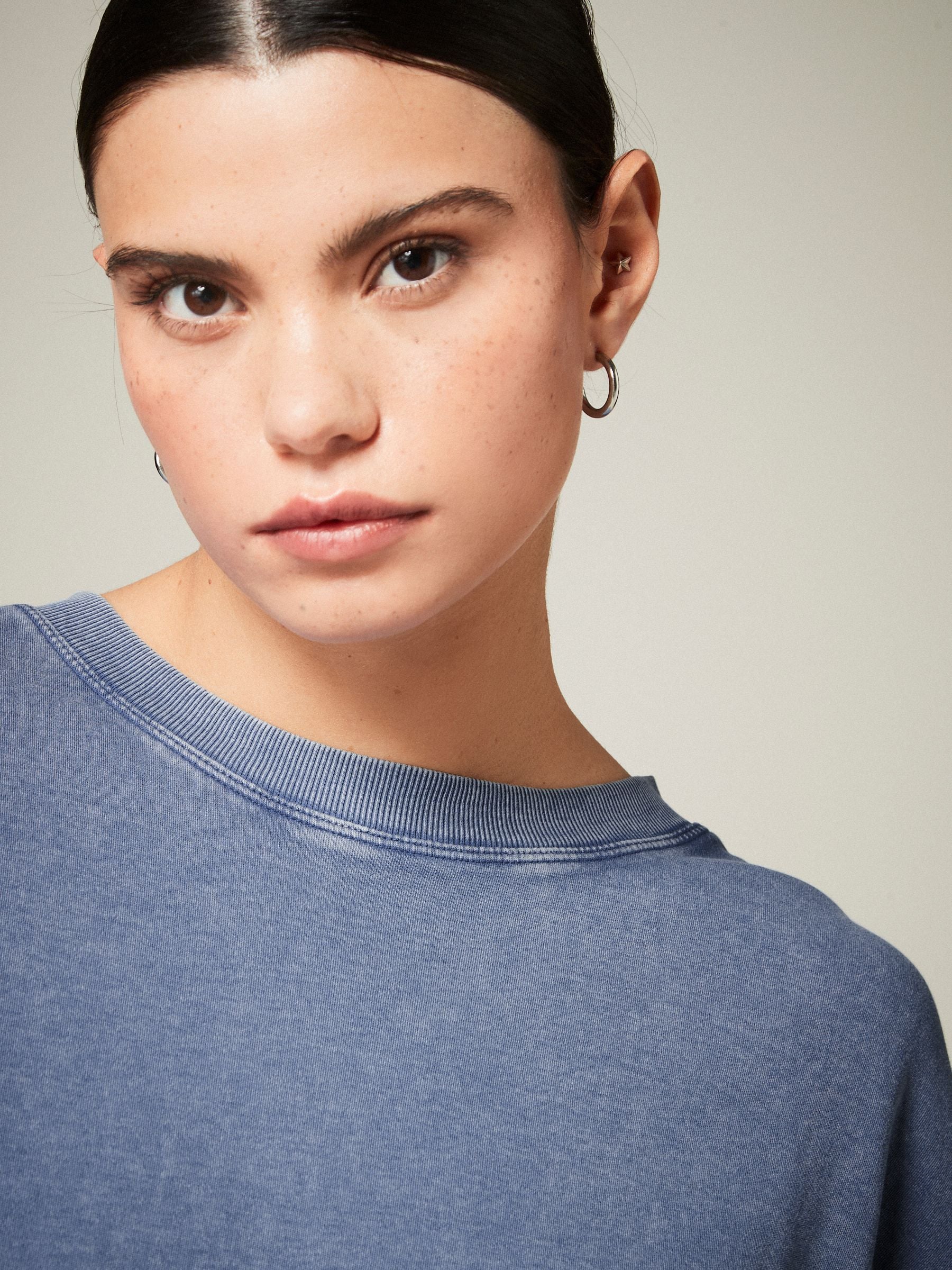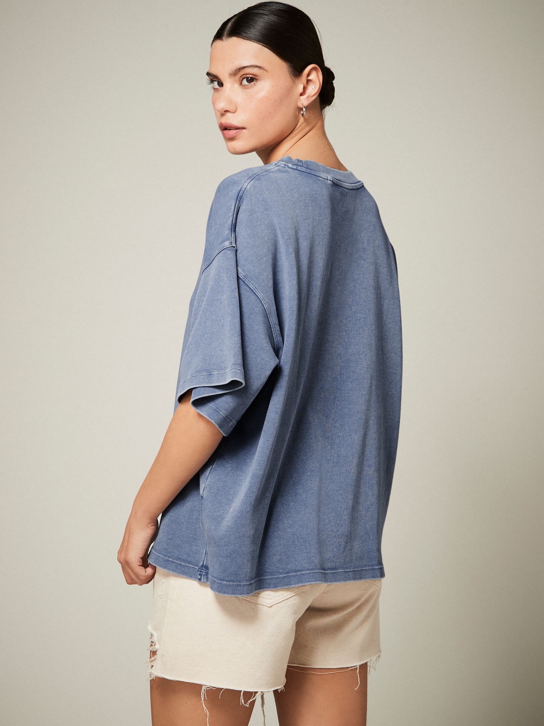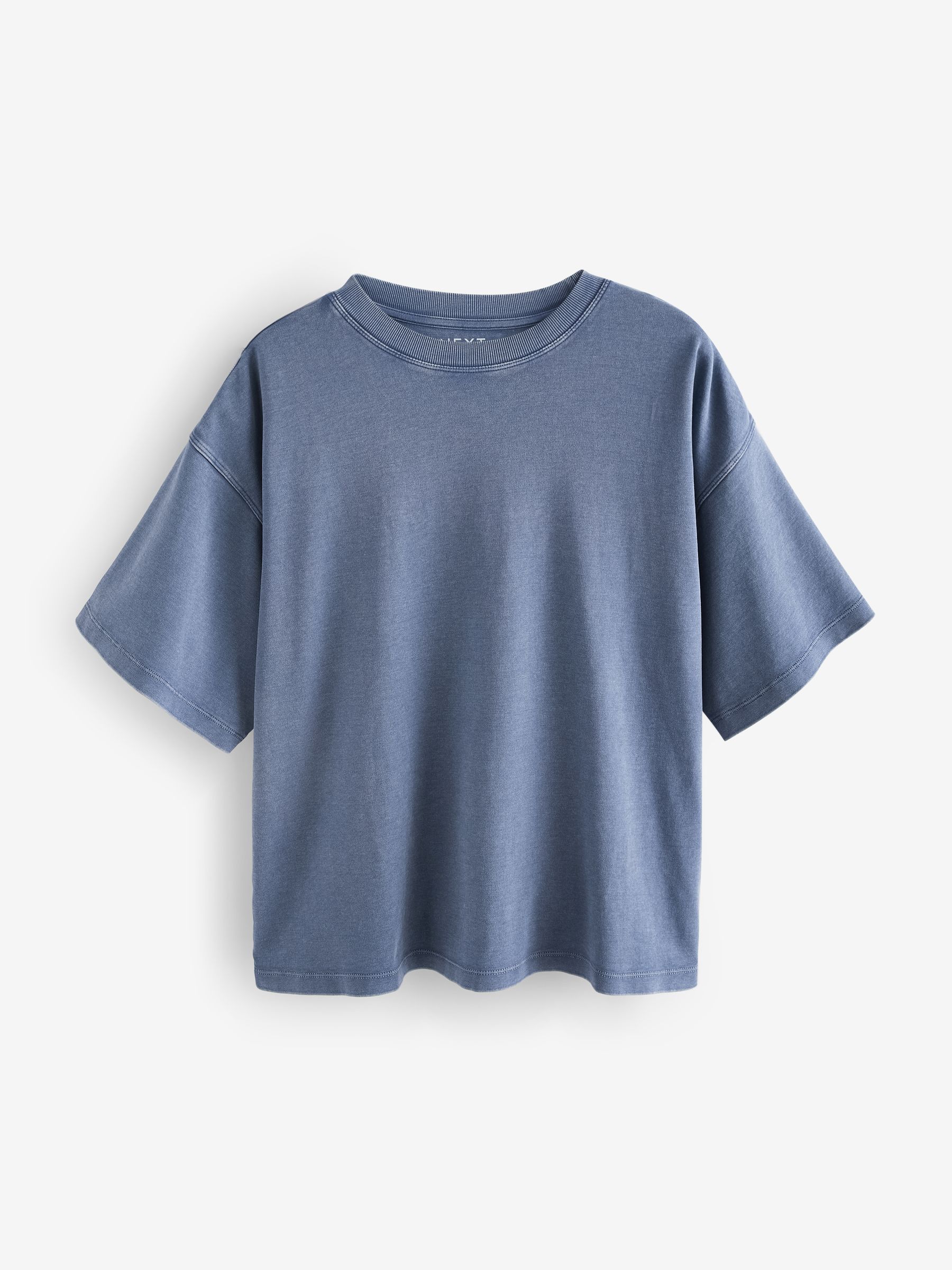 This product has a looser fit than usual. The one item of clothing every person must have in their wardrobe will be a basic T-Shirt. Bonus points if that wash T-Shirt in blue is extremely flattering, comfortable and versatile with practically any outfit no matter the occasion. We feel our heavyweight Boxy fit T-Shirt is the perfect staple to add to your collection. This pure-cotton, relaxed-fit T-Shirt adds a statement look to your style staples, finished in a boxy cut with dropped shoulders and a ribbed crew neck collar. Relaxed, boxy fit 100% Cotton Dropped shoulders Ribbed crewneck collar Main 100% Cotton. Rib 95% Cotton, 5% Elastane. Made with U.S. Cotton Trust Protocol verified origin. A new standard in sustainble cotton production. The U.S. Cotton Trust Protocol assures more sustianable cotton farming, including fair working conditions and best practices for water and pesticide usage, soil diversity and greenhouse gas emmisions.