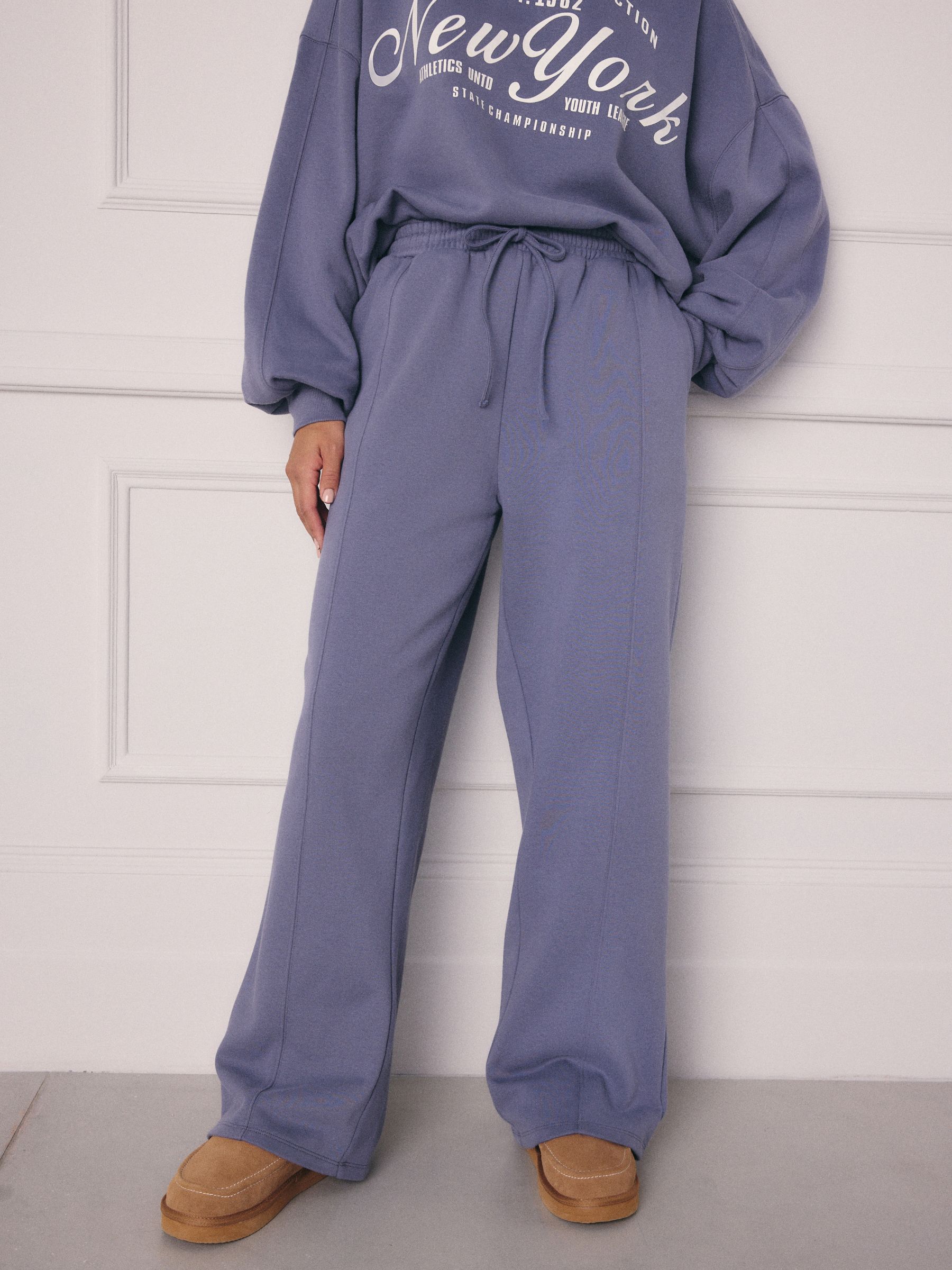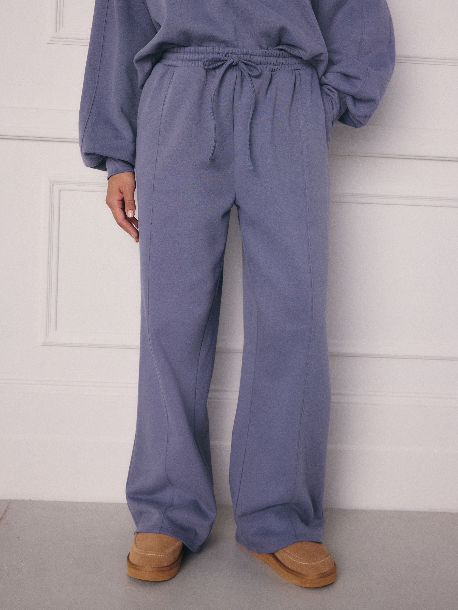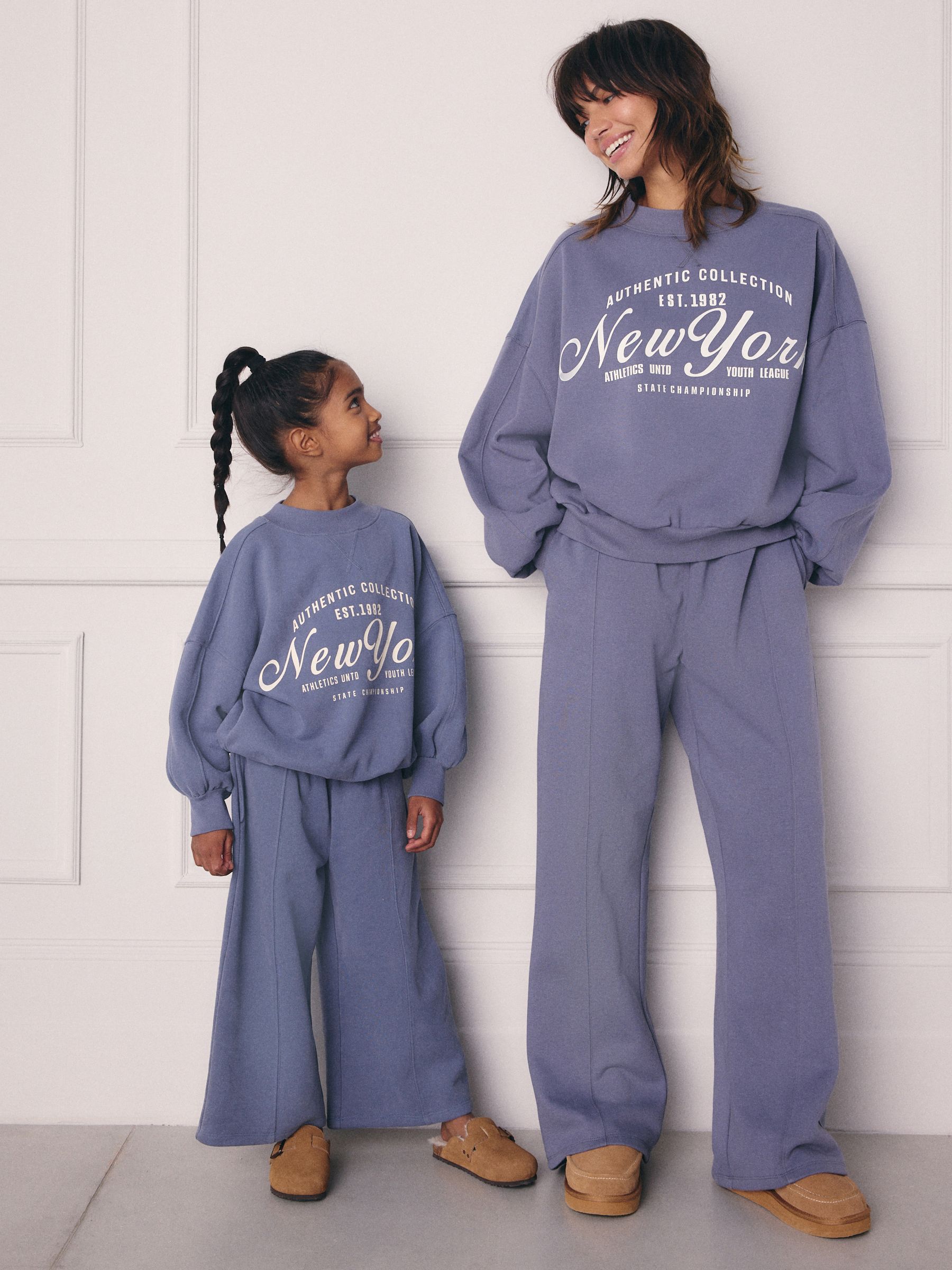 In an on-trend wide leg, you’ll want to wear these comfortable and stylish blue jogging bottoms in and out of the house, made from a cotton-rich jersey fabric with an elasticated waistband and an adjustable drawstring. The joggers are finished with side pockets, with a matching sweatshirt sold separately. This coordinated outfit is also available in children’s sizes, so you can match with your mini-me.