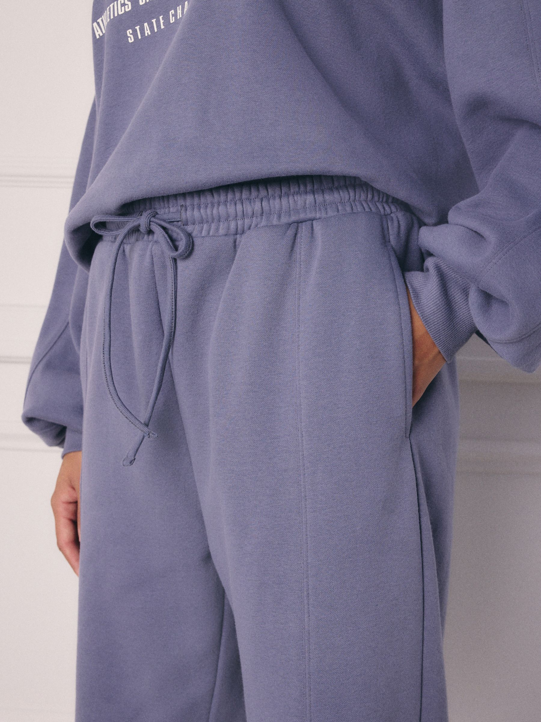 In an on-trend wide leg, you’ll want to wear these comfortable and stylish blue jogging bottoms in and out of the house, made from a cotton-rich jersey fabric with an elasticated waistband and an adjustable drawstring. The joggers are finished with side pockets, with a matching sweatshirt sold separately. This coordinated outfit is also available in children’s sizes, so you can match with your mini-me. Wide leg Cotton-rich Elasticated waistband Side pockets Open hem Regular to fit inside leg 29″ x 74cm. 80% Cotton, 20% Recycled polyester. Warning: Keep away from fire and flames.