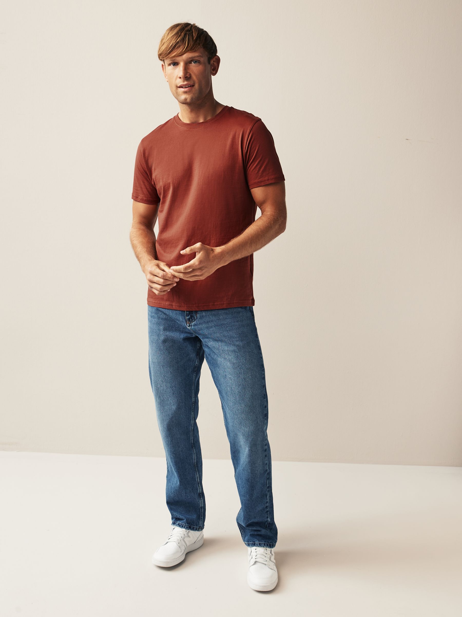 Our regular fit T-Shirt is easy to wear and fits straight down the body.
