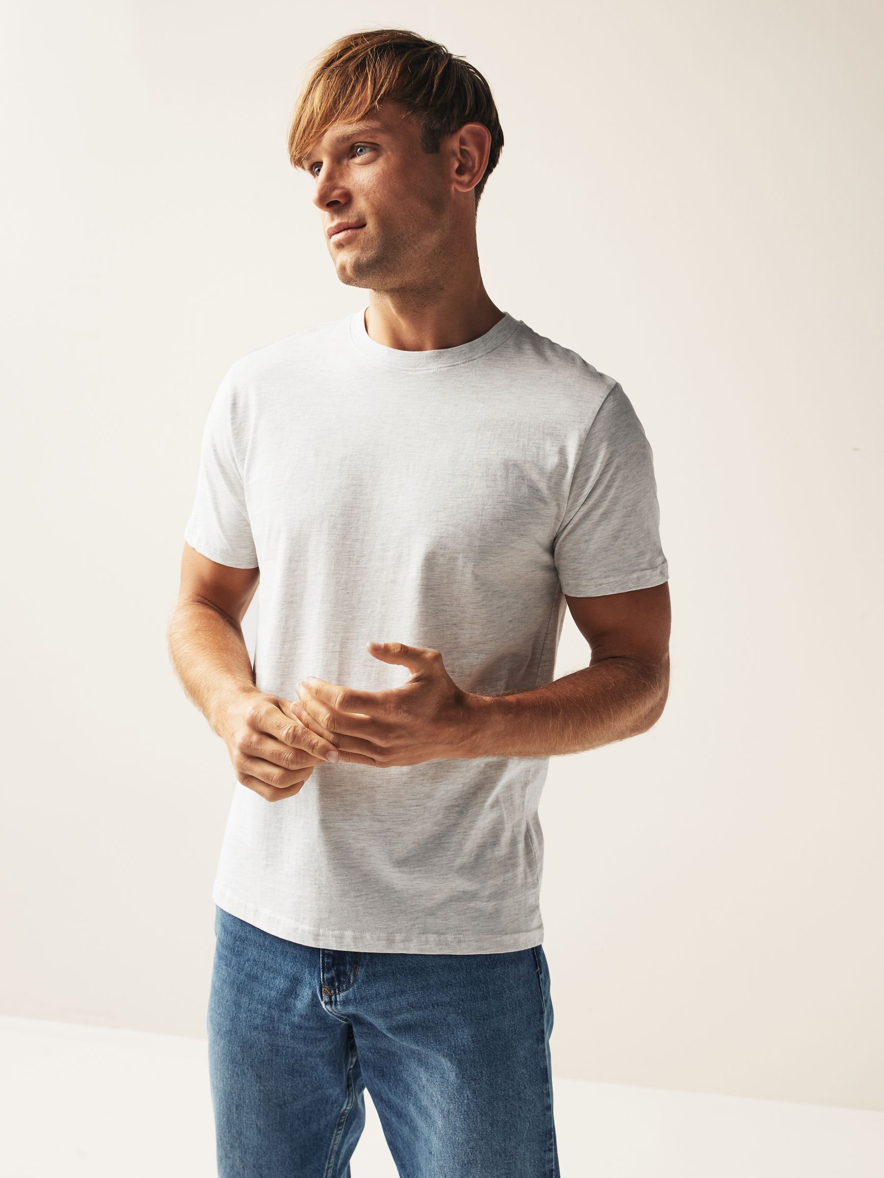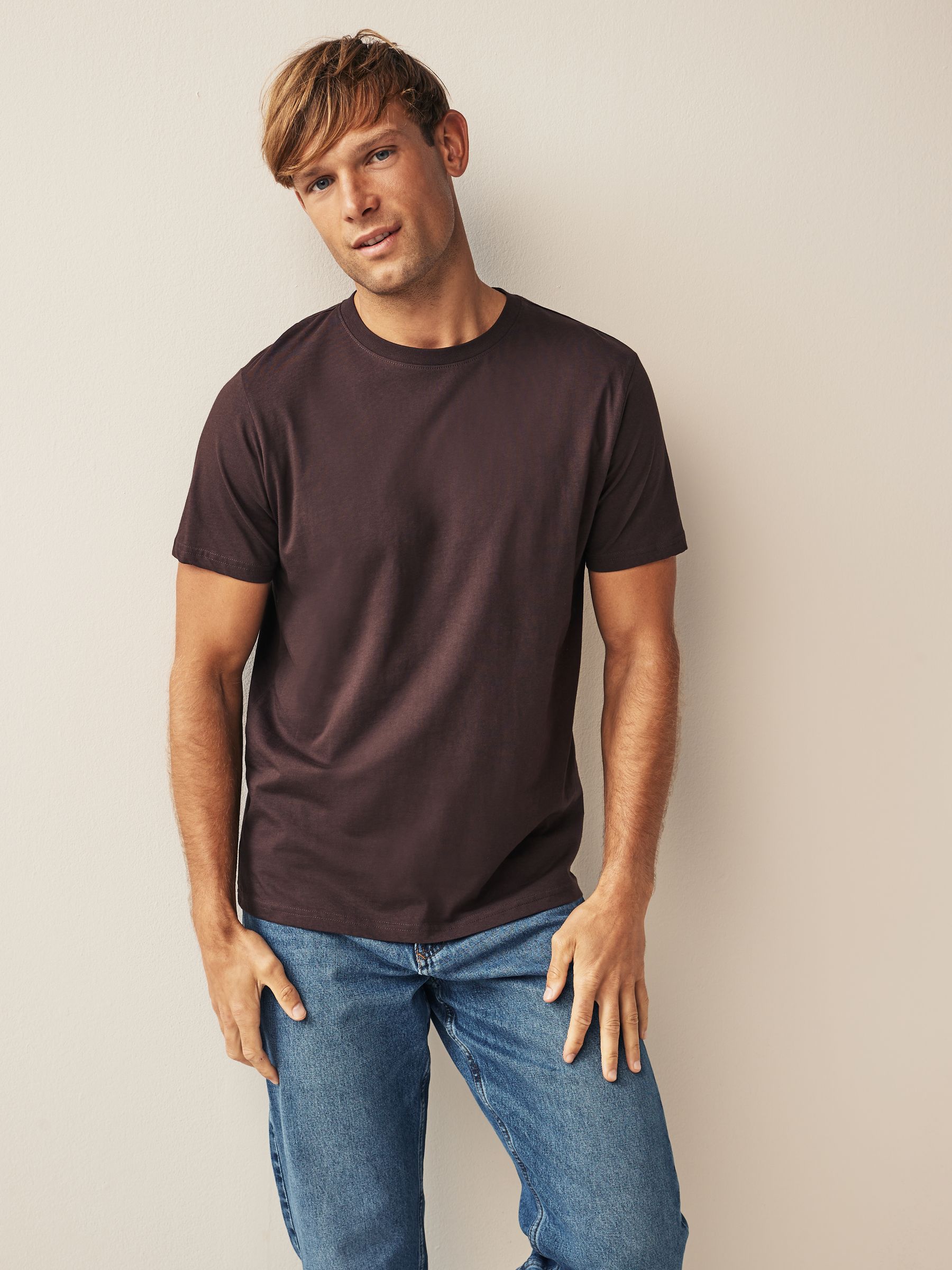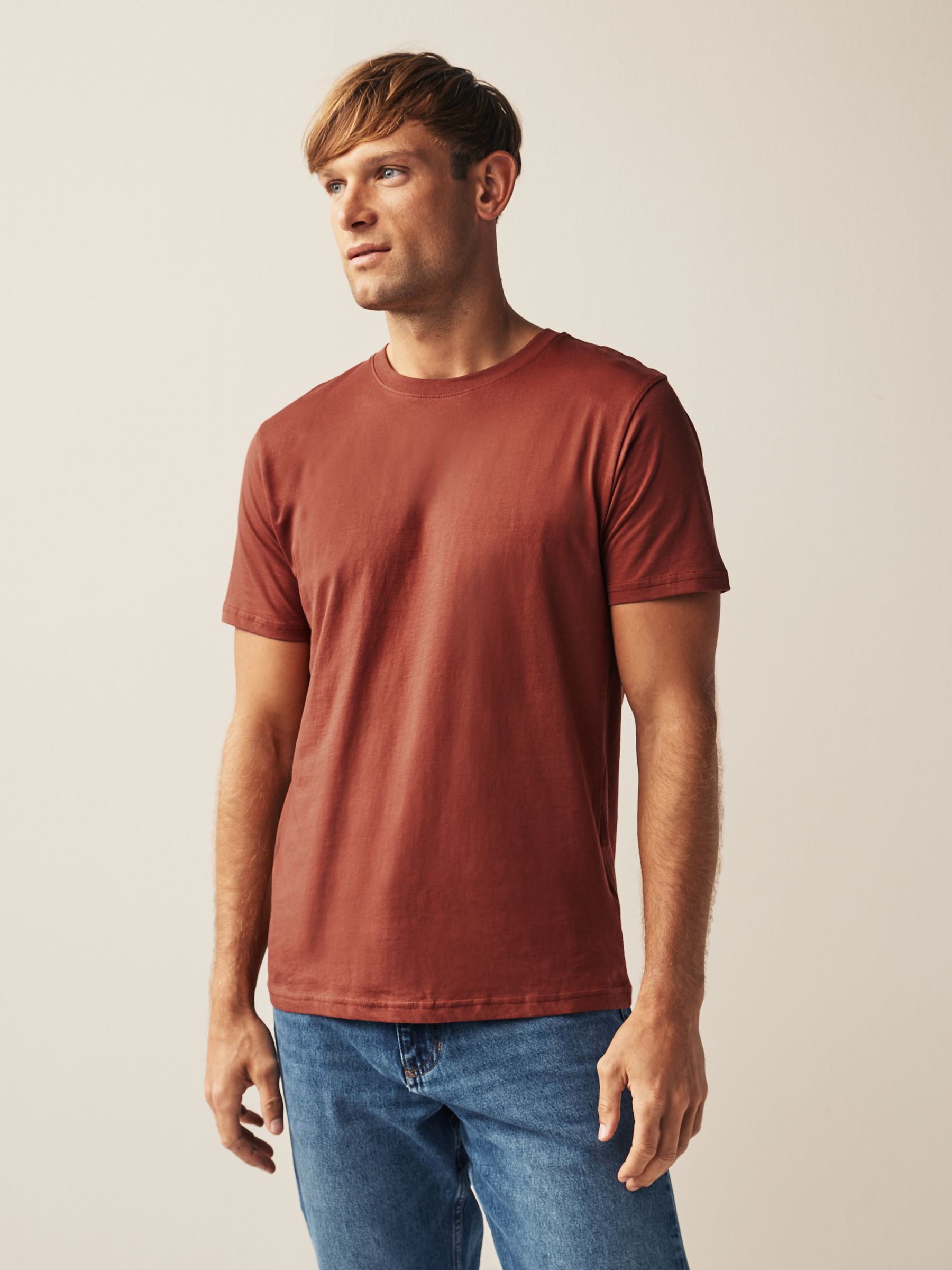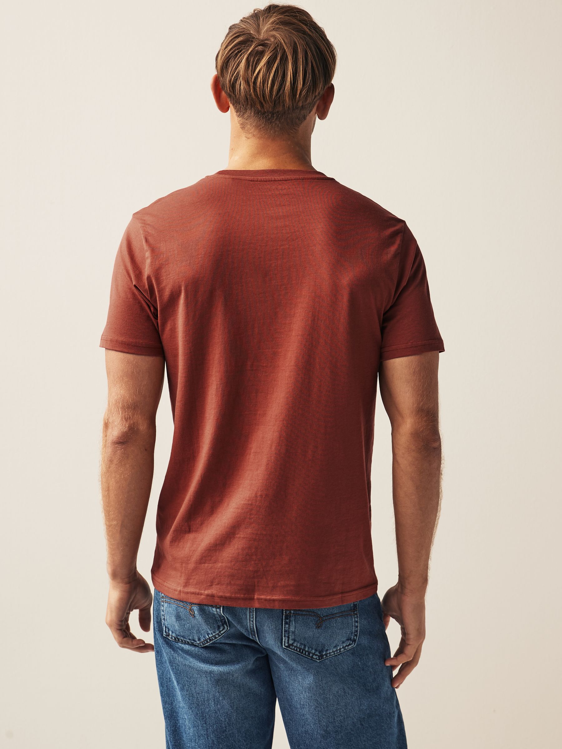 Our regular fit T-Shirt is easy to wear and fits straight down the body. Stock up on everyday essentials with our 6 pack of men’s Brown/Rust/Rust/ Black/Ecru Marl/Slate/Silver T-Shirts. Cut in a regular fit with a crew neckline and short sleeves, these pure cotton T-Shirts are presented in an array of colours and are effortlessly easy to style. Our Essential T-Shirt will provide you with a great fit even after they have been washed as they have been pre-laundered. 6 pack Regular fit Crew neck Everyday essentials Lightweight fabric – 160gsm 5 x T-shirt 100% Cotton. T-shirt 99% Cotton, 1% Viscose. Made with U.S. Cotton Trust Protocol verified origin. A new standard in sustainble cotton production. The U.S. Cotton Trust Protocol assures more sustianable cotton farming, including fair working conditions and best practices for water and pesticide usage, soil diversity and greenhouse gas emmisions.