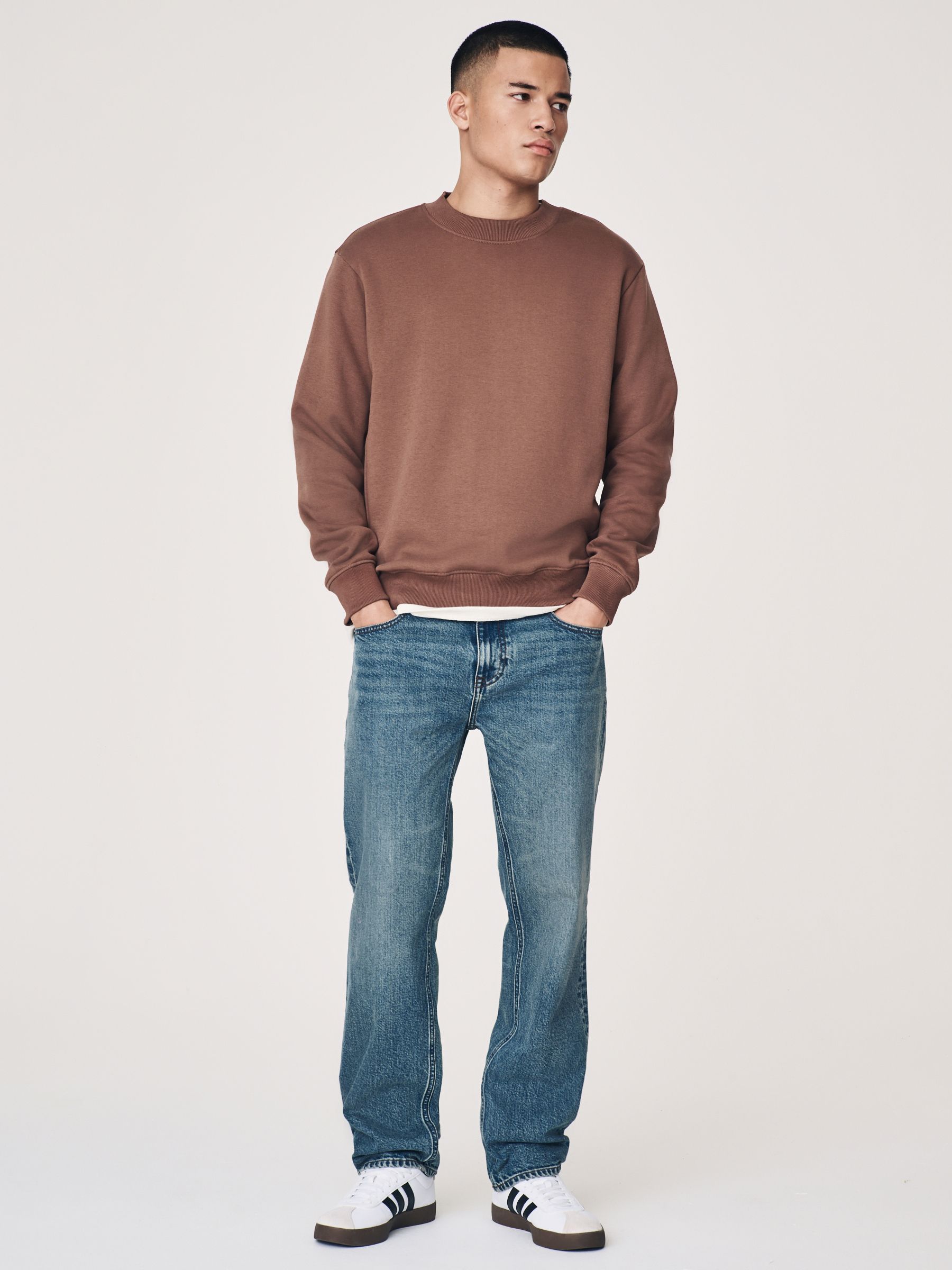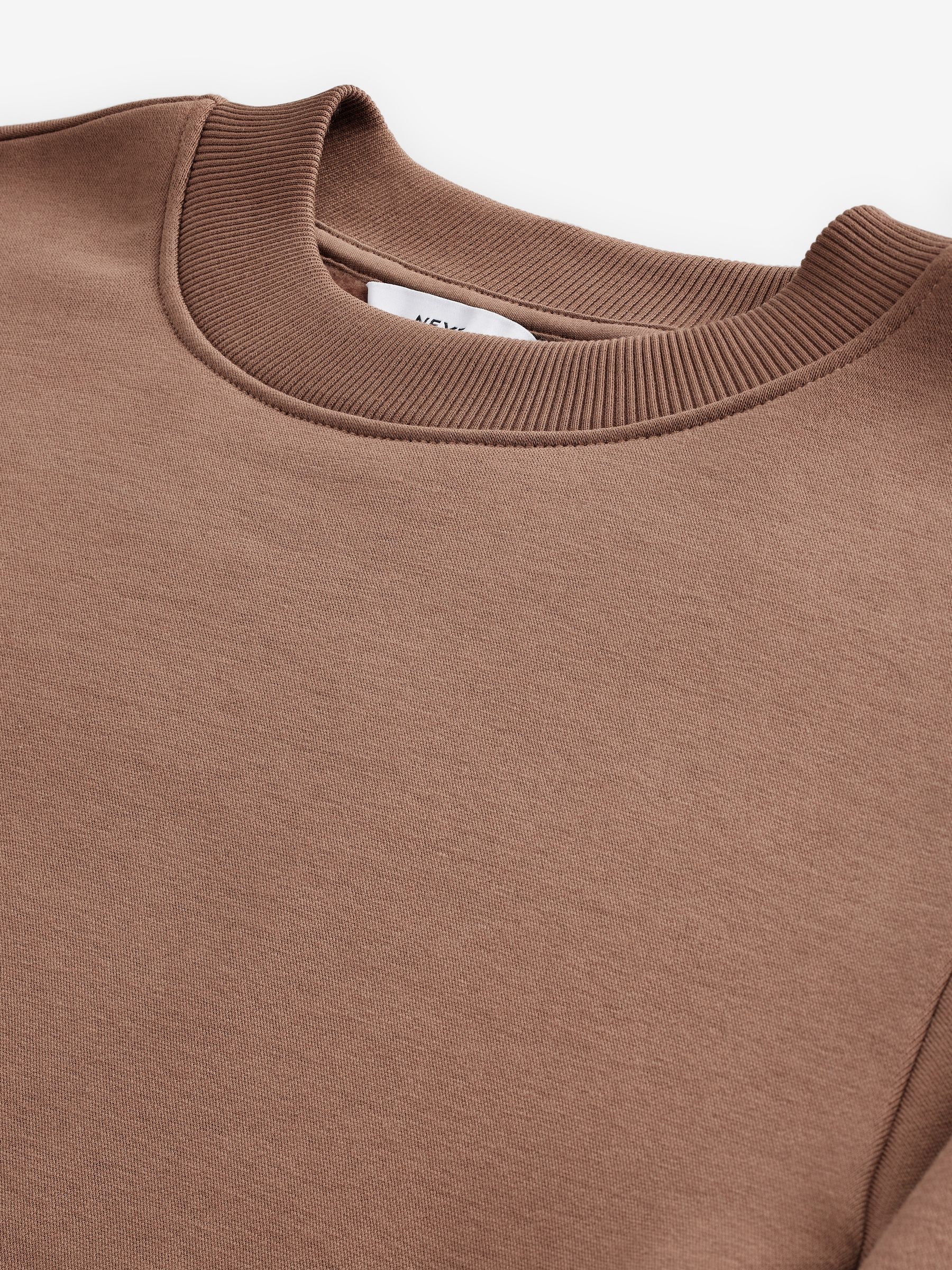 Every wardrobe needs a classic jersey sweatshirt, and this elevated cotton-rich fabric jumper features a thick ribbed collar with ribbed hems and dropped shoulders, finished with a soft brush-feel lining. Cotton-rich jersey Crewneck collar Dropped shoulders Ribbed hems Brush-feel lining Machine washable. 80% Cotton, 20% Recycled polyester.