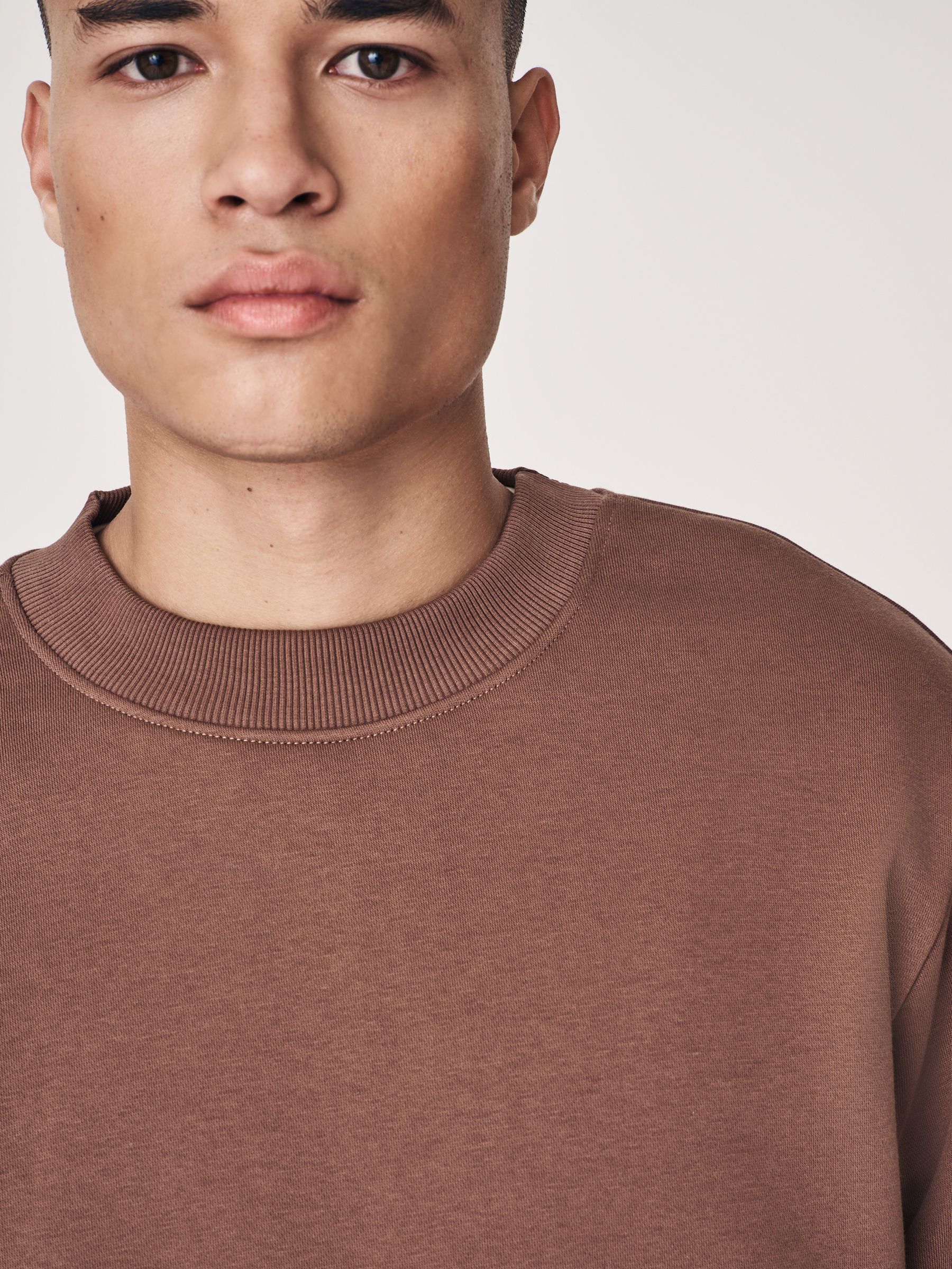 Every wardrobe needs a classic jersey sweatshirt, and this elevated cotton-rich fabric jumper features a thick ribbed collar with ribbed hems and dropped shoulders, finished with a soft brush-feel lining.