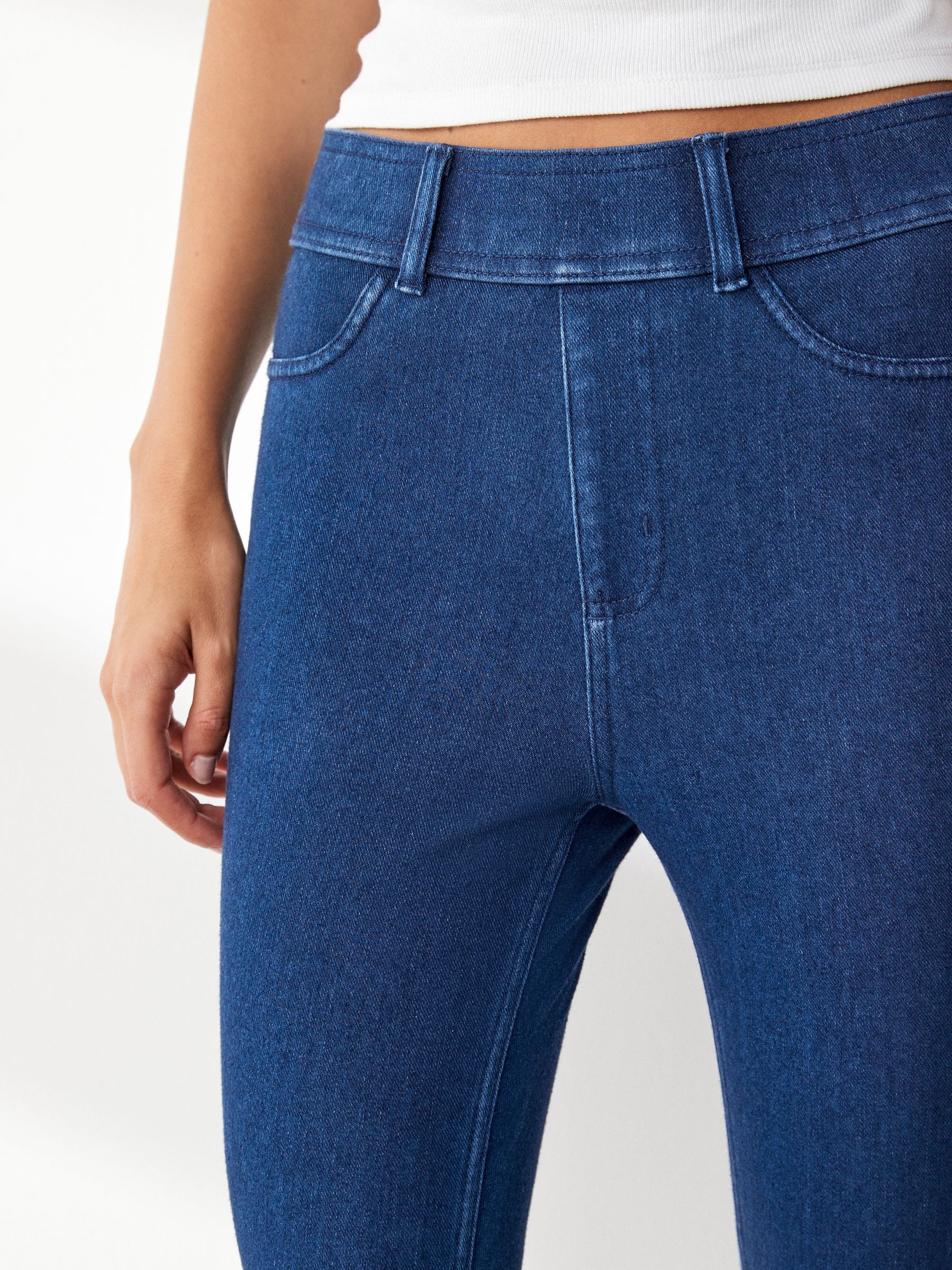 Made from a stretchy jersey denim blend, these mid-rise leggings are designed in a pull-on shape with a slim leg through to the ankle. Ideal for when comfort is key, our jersey denim leggings are guaranteed to be your go-to for comfy, casual styling.