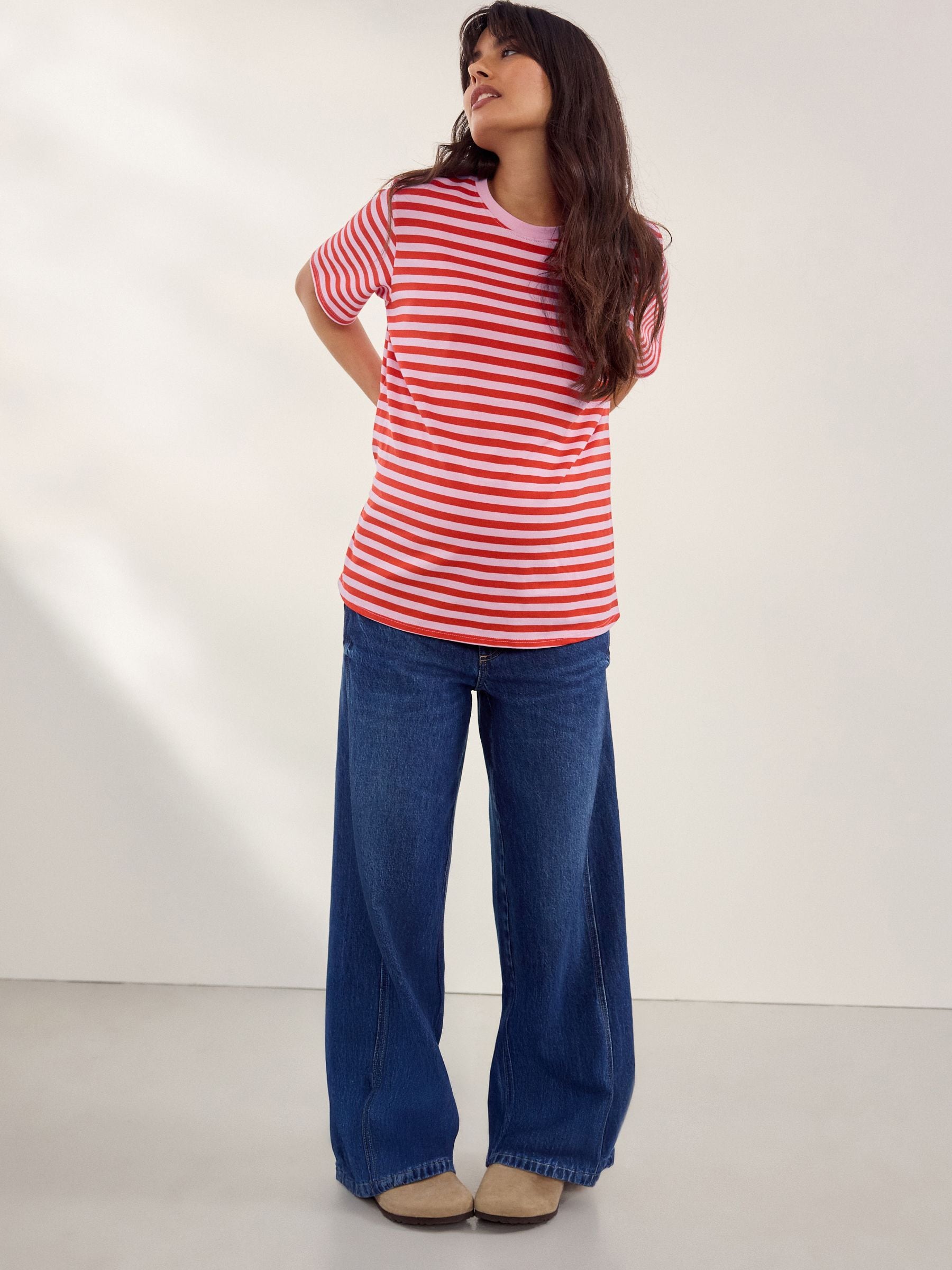 Ideal for your casual outfits during and after pregnancy, these stylish dark blue wide-leg jeans have elasticated inserts to the side for an added stretch that moves with your bump, crafted from pure cotton denim with pockets and a button and zip fastening. Maternity fit Wide leg 100% cotton denim Stretch side panels Button and zip fastening Side and rear pockets Regular to fit inside leg 29″ x 74cm. Long to fit inside leg 31″ x 79cm. Machine washable. 100% Cotton.