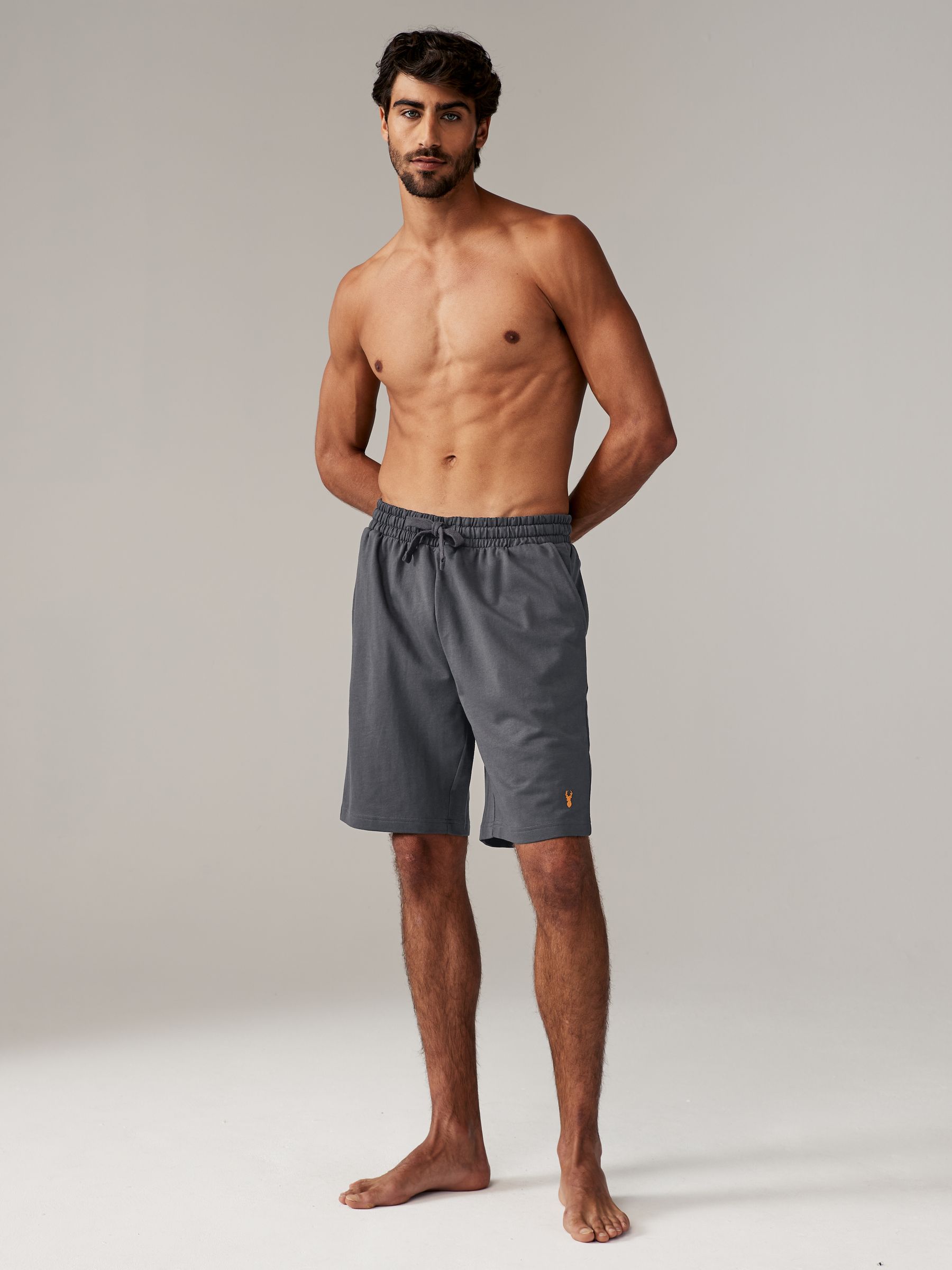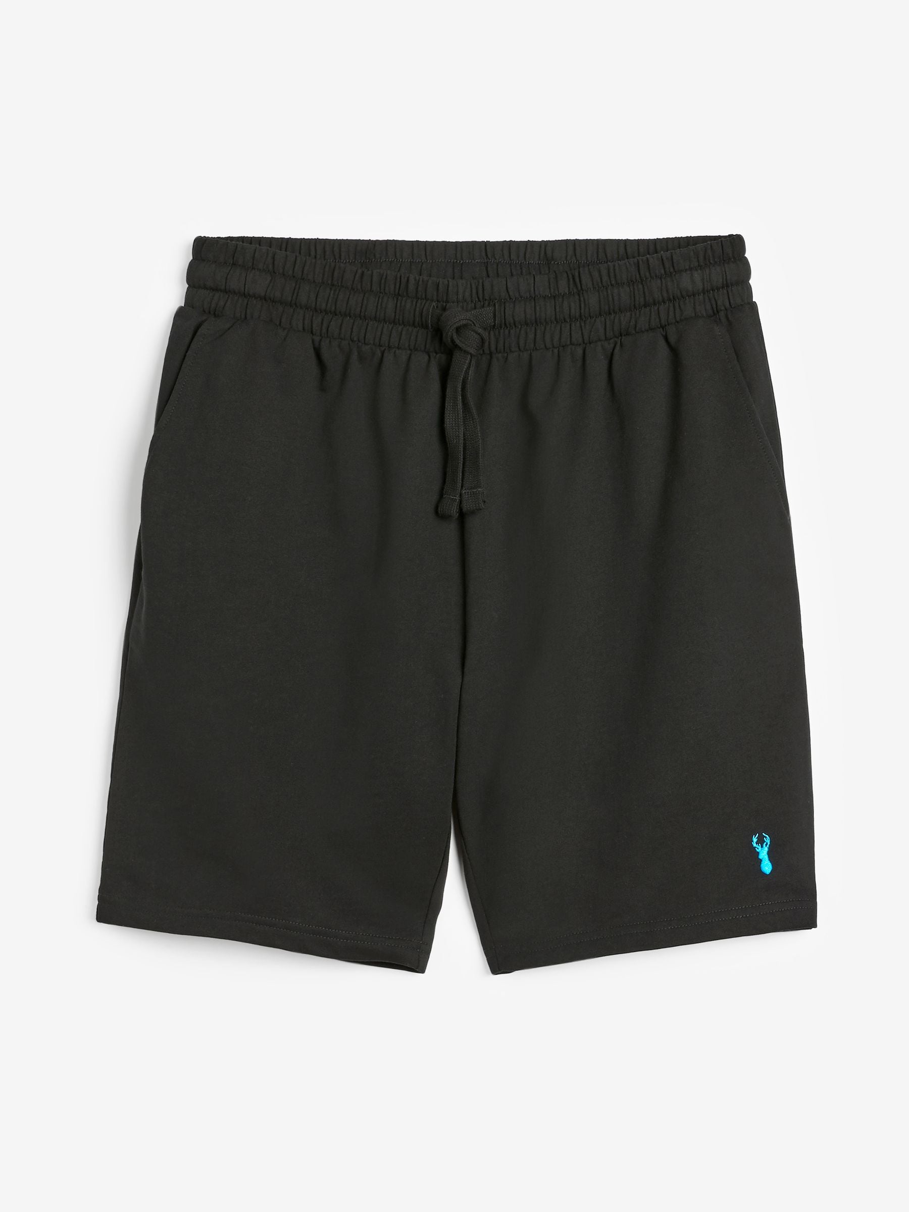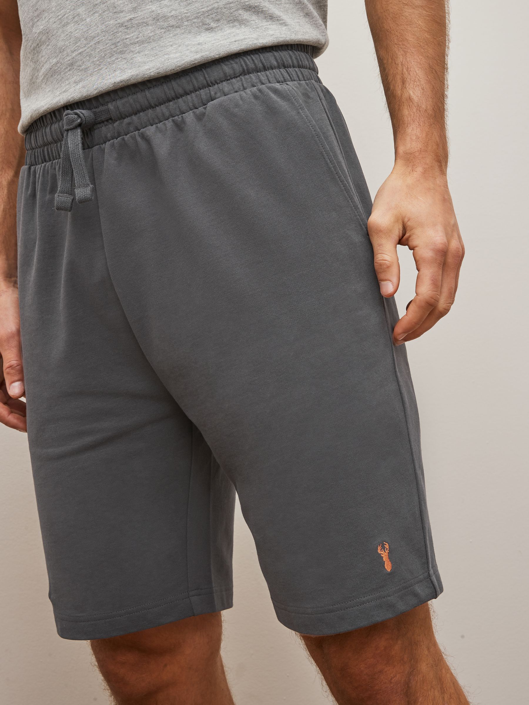 These grey/black casual shorts are made from a midweight loopback fabric with stag embroidery detail to the hem, elasticated waist with drawcord and pockets.