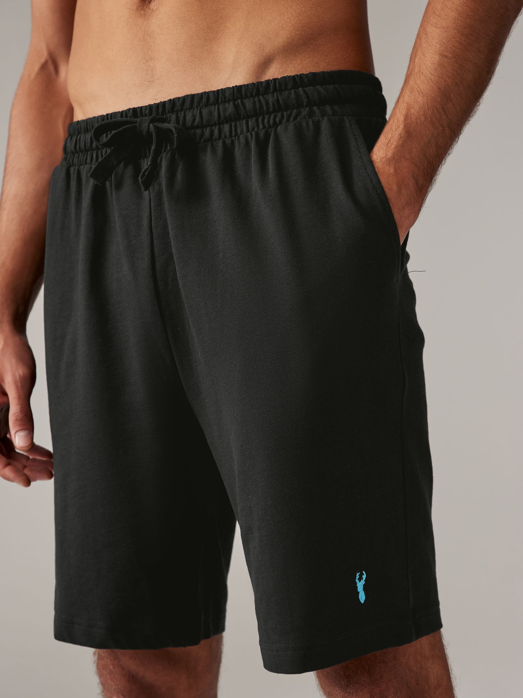 These grey/black casual shorts are made from a midweight loopback fabric with stag embroidery detail to the hem, elasticated waist with drawcord and pockets. Midweight loopback fabric Stag embroidery Elasticated waist Drawcord Pockets Machine washable. 2 x Shorts 100% Cotton. Warning: Keep away from fire and flames., Better Cotton – By choosing our cotton products, you’re supporting our investment in Better Cotton’s mission to help cotton farming communities survive and thrive while protecting and restoring the environment. This product is sourced via a system of mass balance and therefore may not contain Better Cotton. Learn more at www.next.co.uk/better-cotton