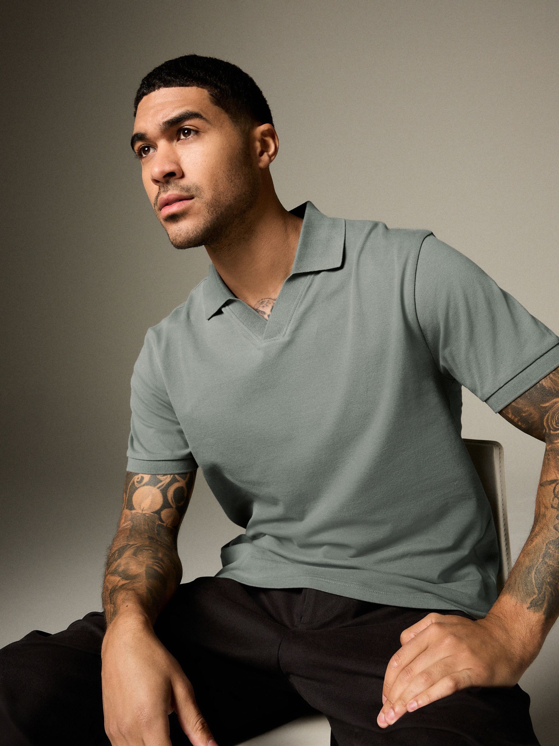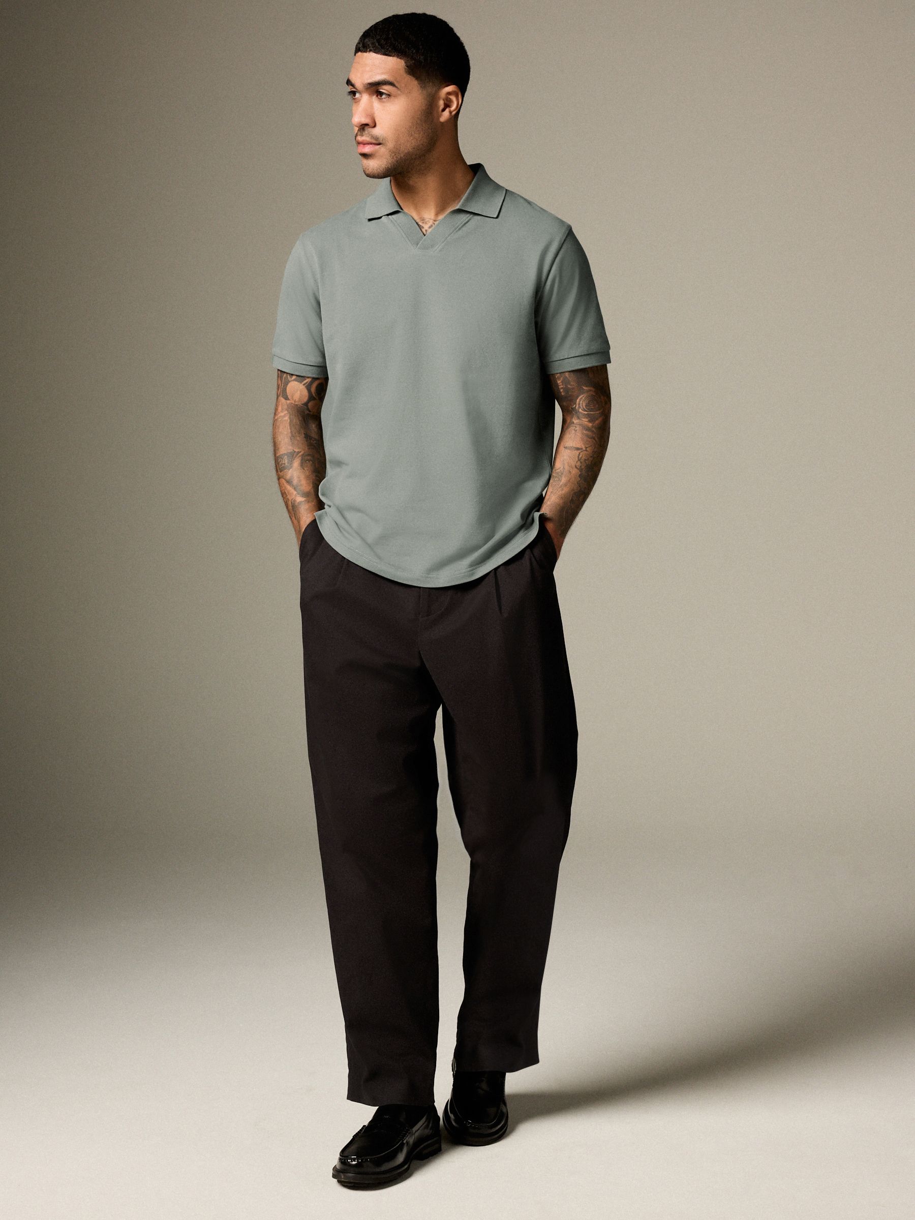 A wardrobe staple, our polo shirt is made from soft cotton pique for your comfort throughout the day. We’ve updated a classic by adding a revere collar for a more trend-led style that can be dressed up or down to suit the occasion. Smart casual staple Revere collar Short sleeves Cotton rich Machine washable. 95% Cotton, 5% Elastane.