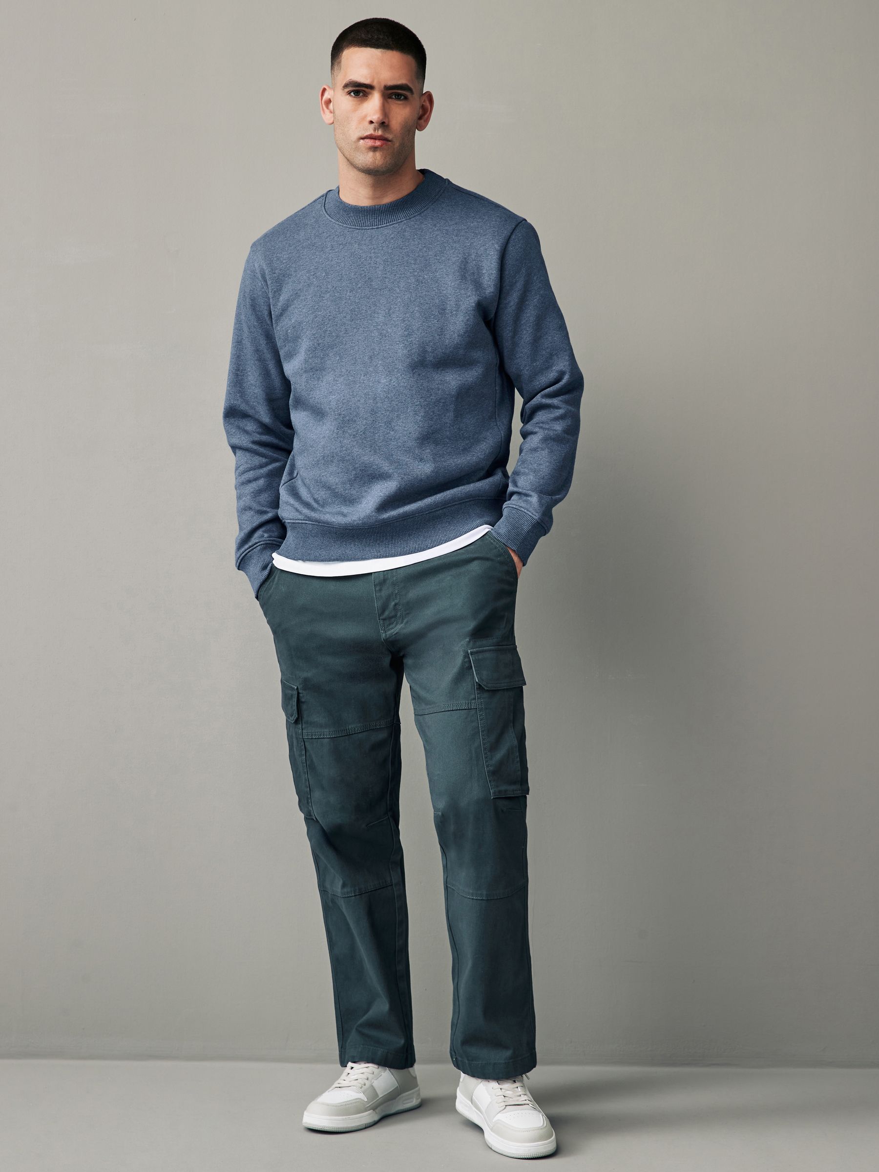 Every wardrobe needs a classic jersey sweatshirt, and this elevated cotton-rich fabric jumper features a thick ribbed collar with ribbed hems and dropped shoulders, finished with a soft brush-feel lining. Cotton-rich jersey Crewneck collar Dropped shoulders Ribbed hems Brush-feel lining Machine washable. 50% Cotton, 50% Recycled polyester.