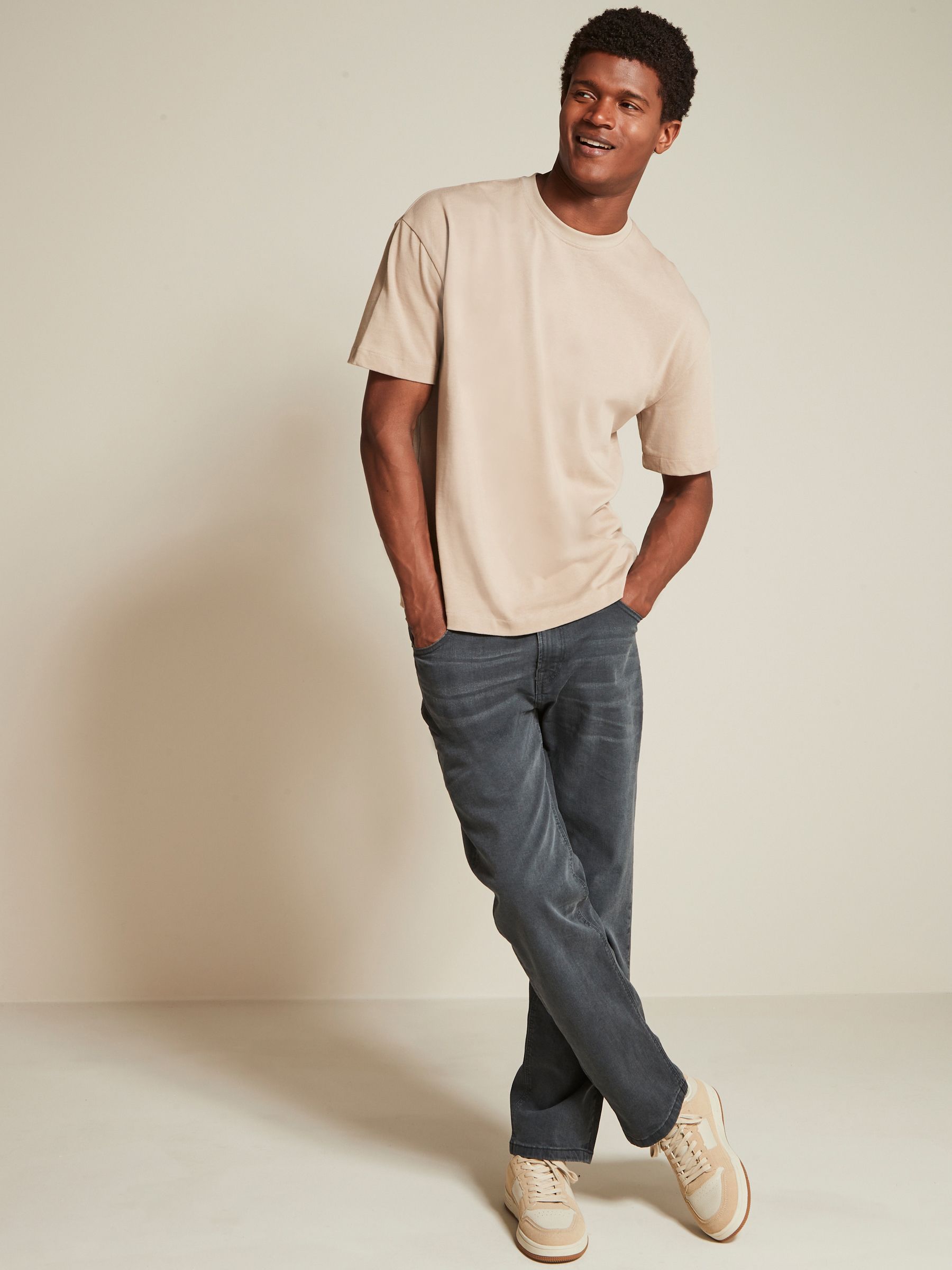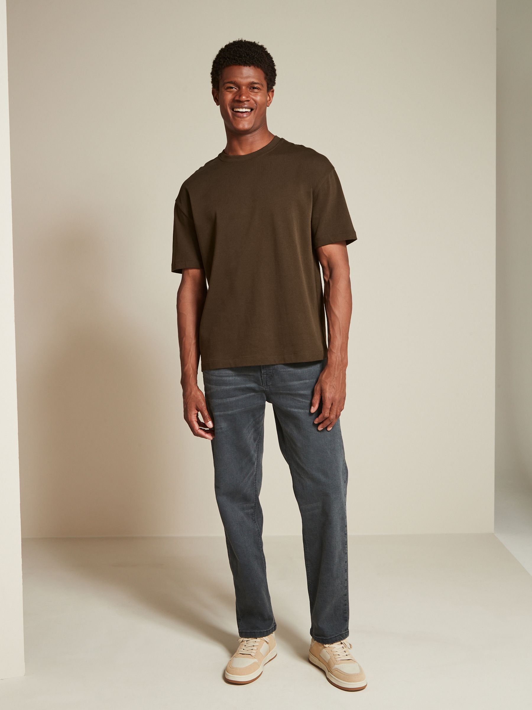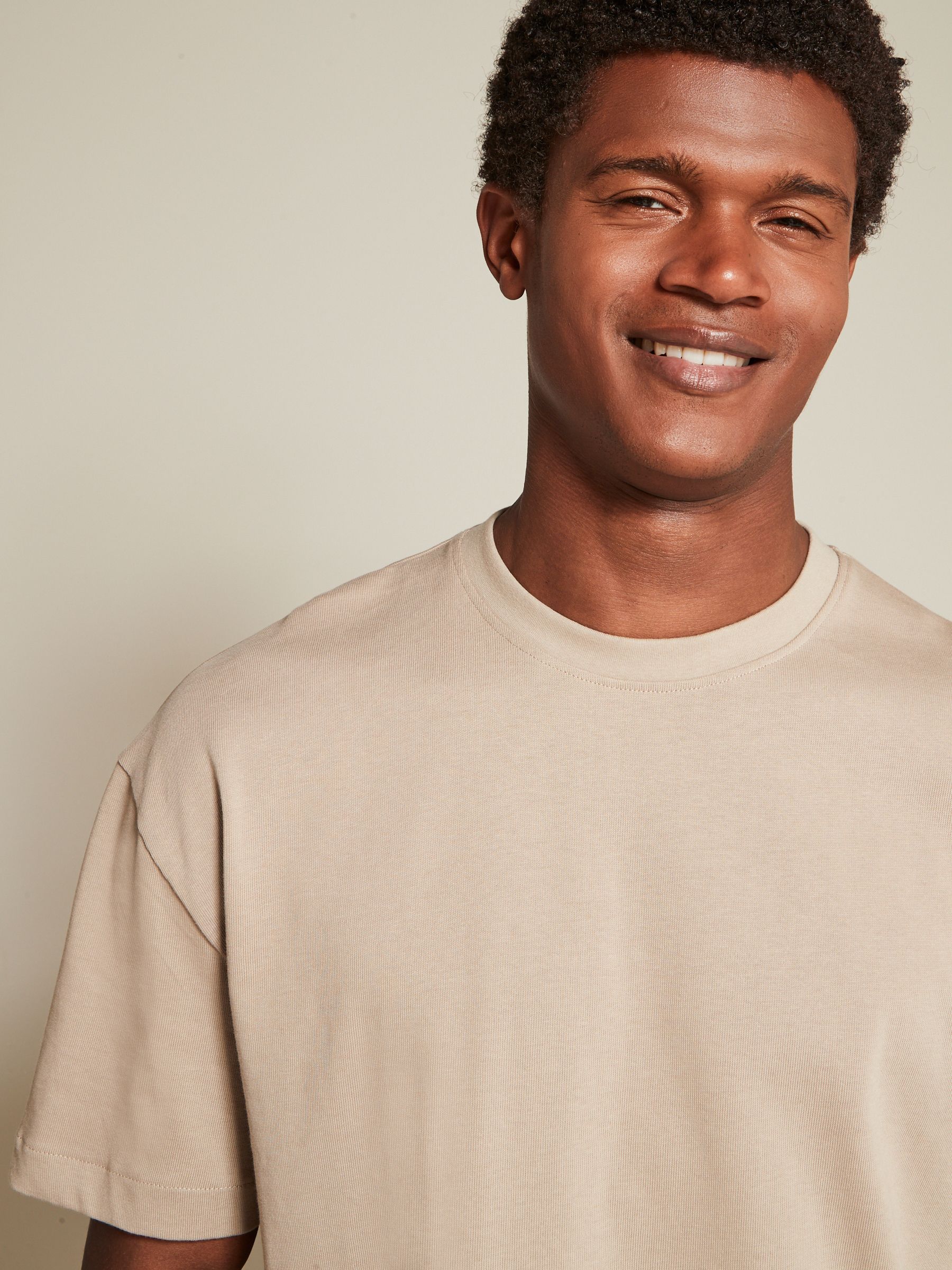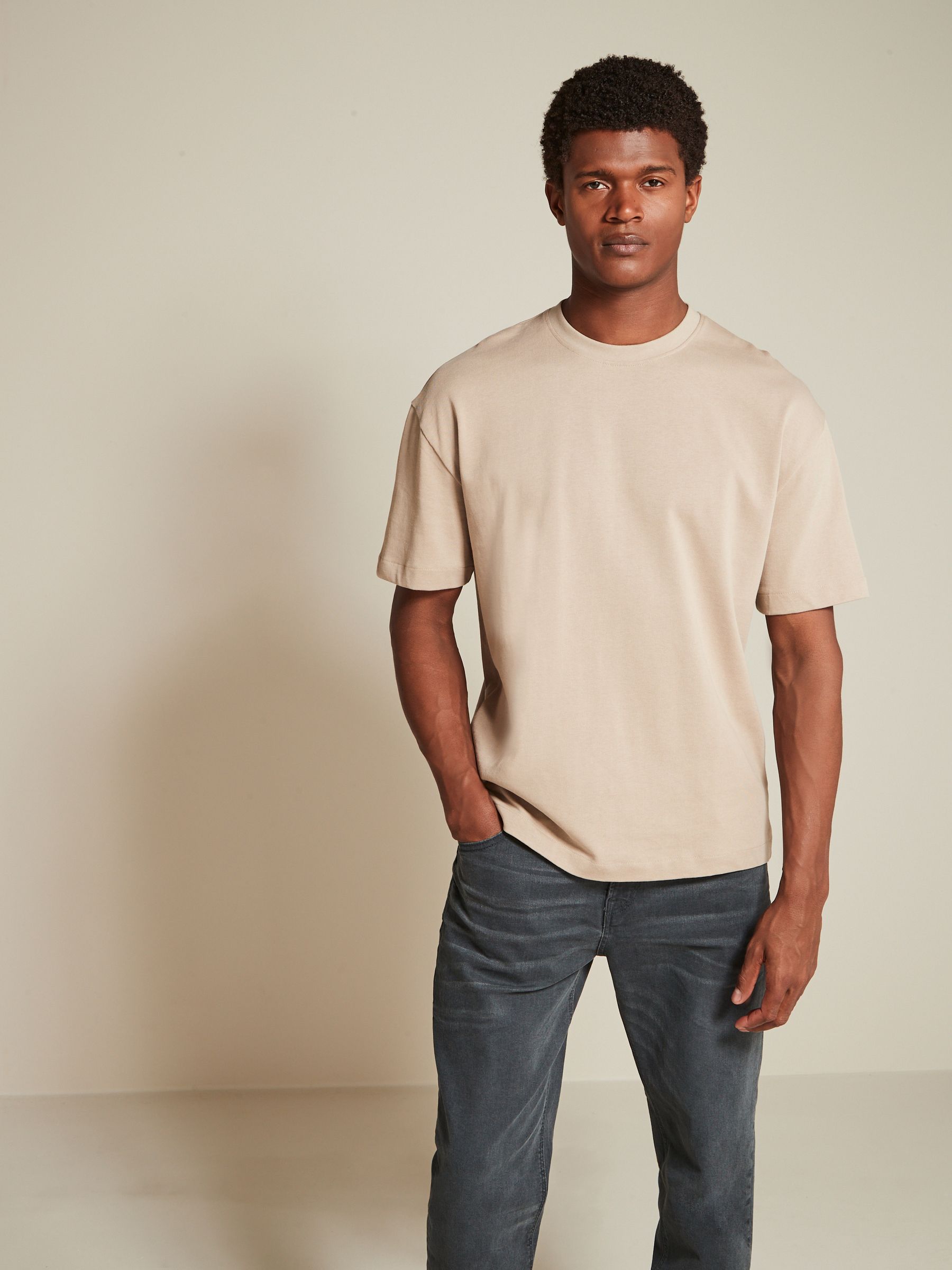 Our relaxed fit T-Shirt has a longer body length, features a dropped shoulder, longer sleeve and fits wider through the body.