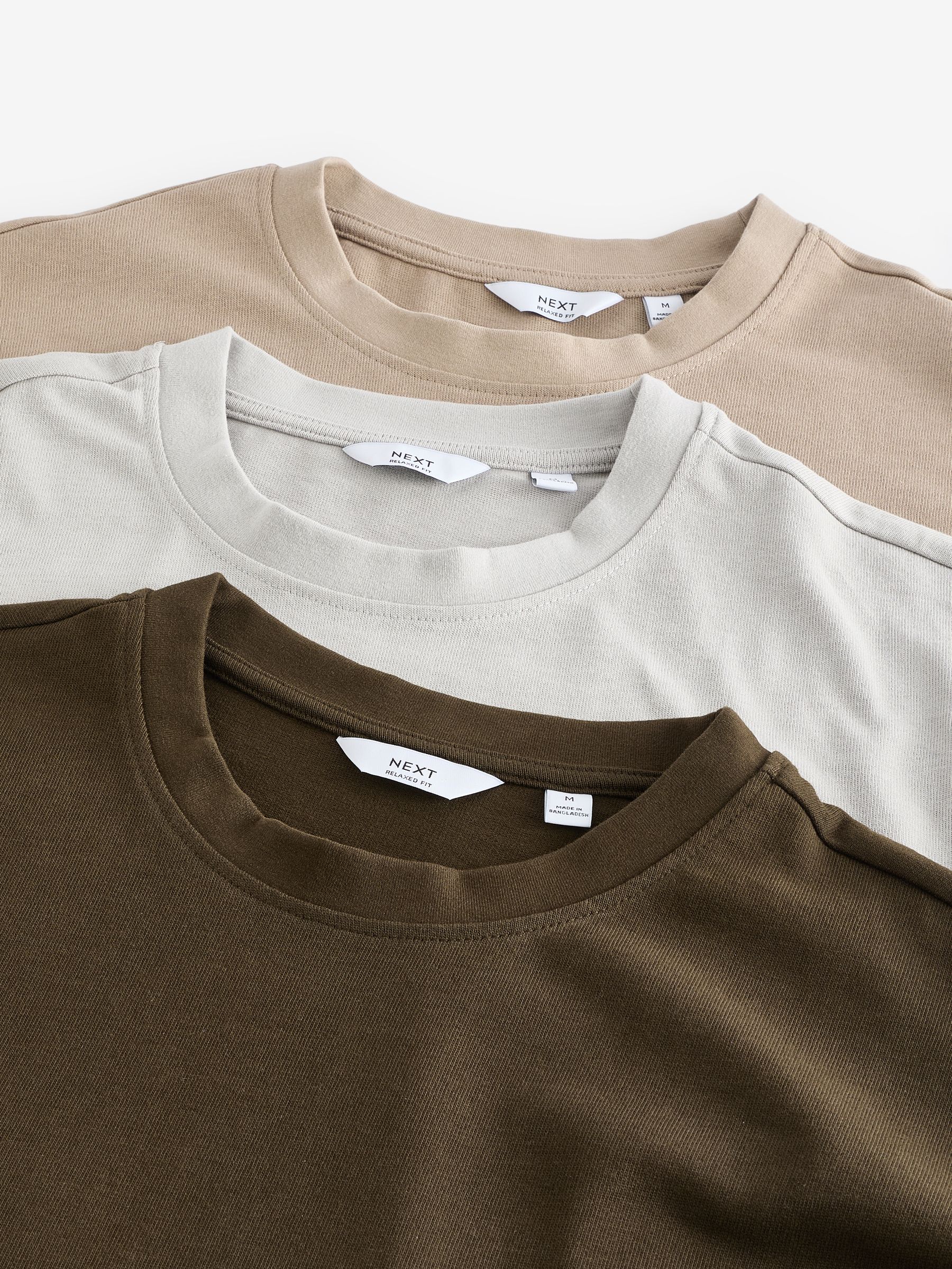 Our relaxed fit T-Shirt has a longer body length, features a dropped shoulder, longer sleeve and fits wider through the body. Stock up on the staples with our three-pack of heavyweight T-Shirts. Designed in a relaxed fit with short sleeves and a crew neck, these pure cotton T-Shirts are great as a base layer or worn alone. Heavyweight fabric – 300gsm Three pack Crew neck Short sleeve Relaxed fit Machine washable. 3 x T-shirt 100% Cotton.