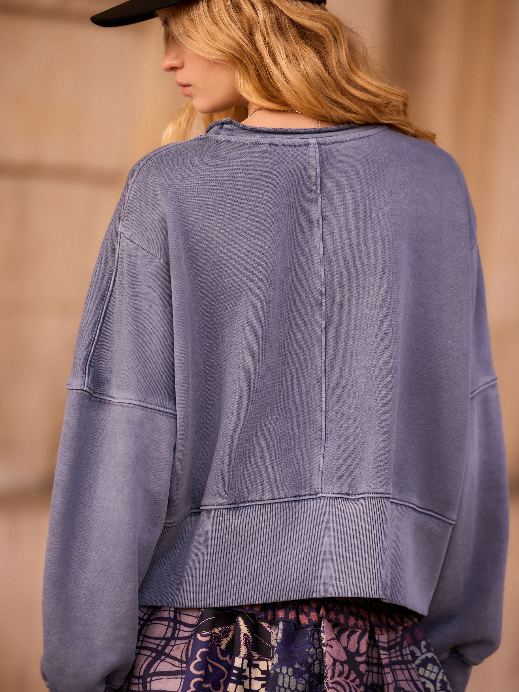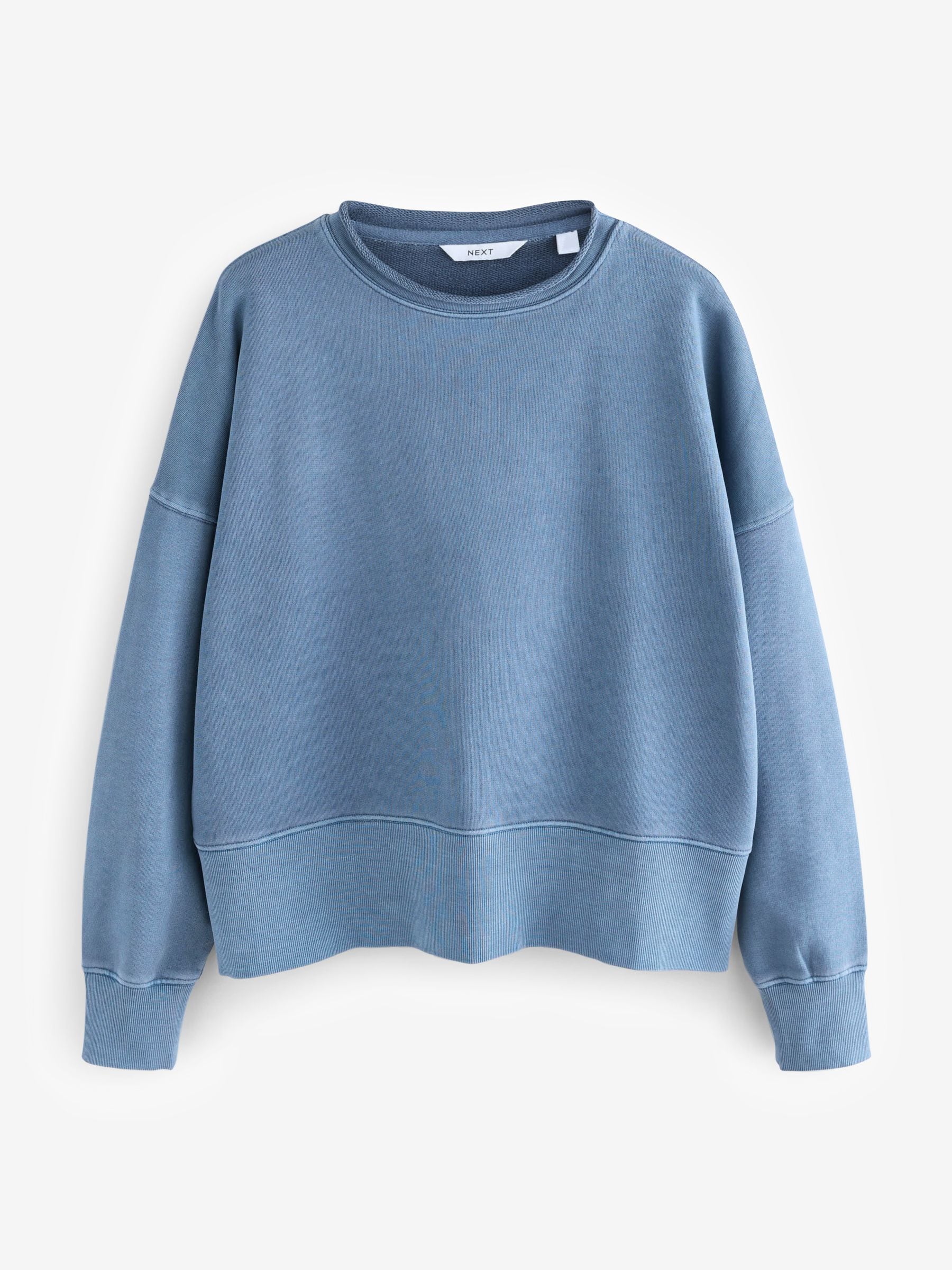 This stylish sweatshirt features oversized long sleeves, a round collar with trim detailing, raw hemming, dropped shoulders and an exaggerated ribbed cuff to the sleeves and hem for a boxy shape, finished in a pure-cotton fabric. Boxy shape 100% cotton Dropped shoulders Trimmed collar Ribbed trims Machine washable. 100% Cotton.