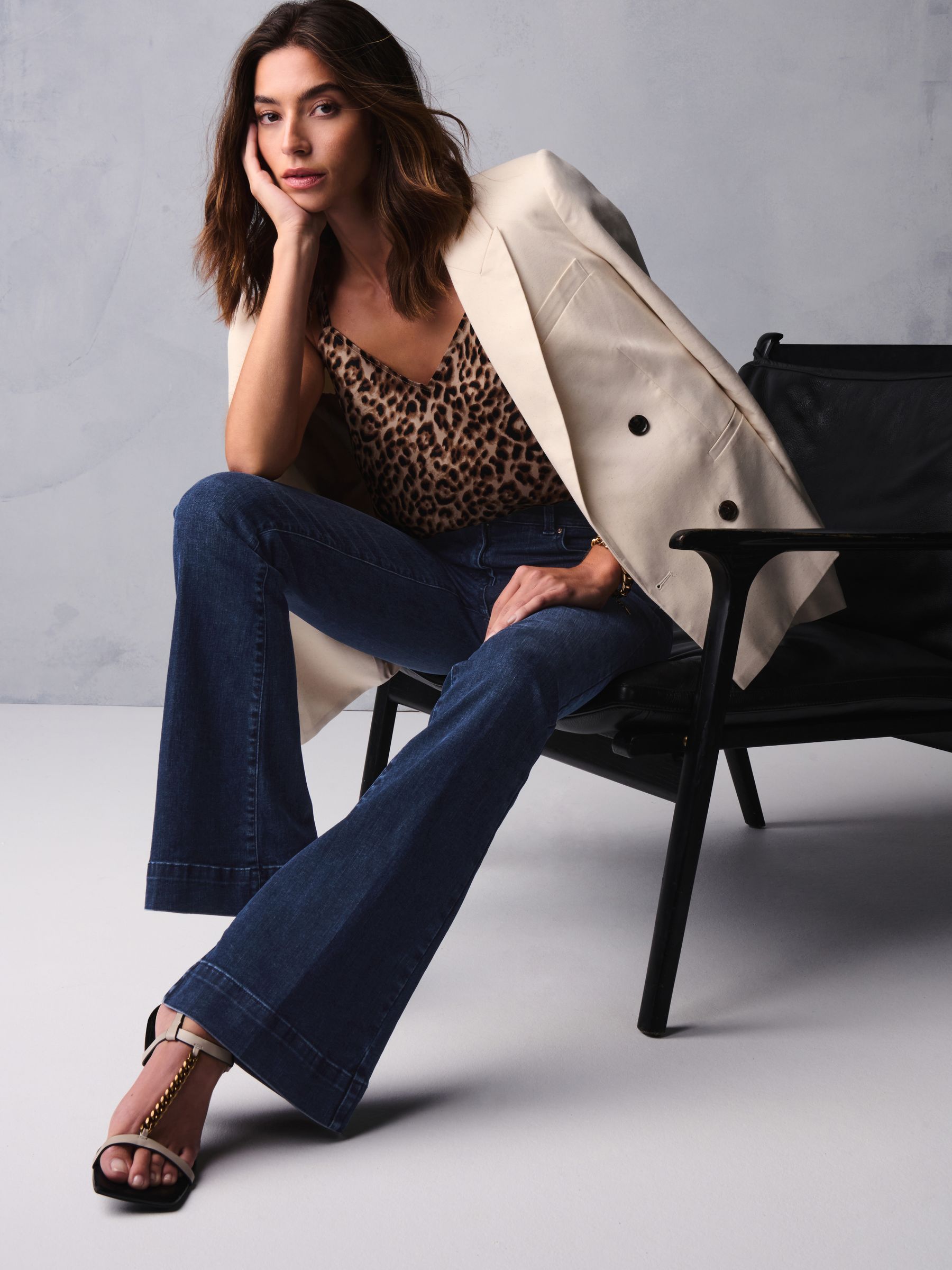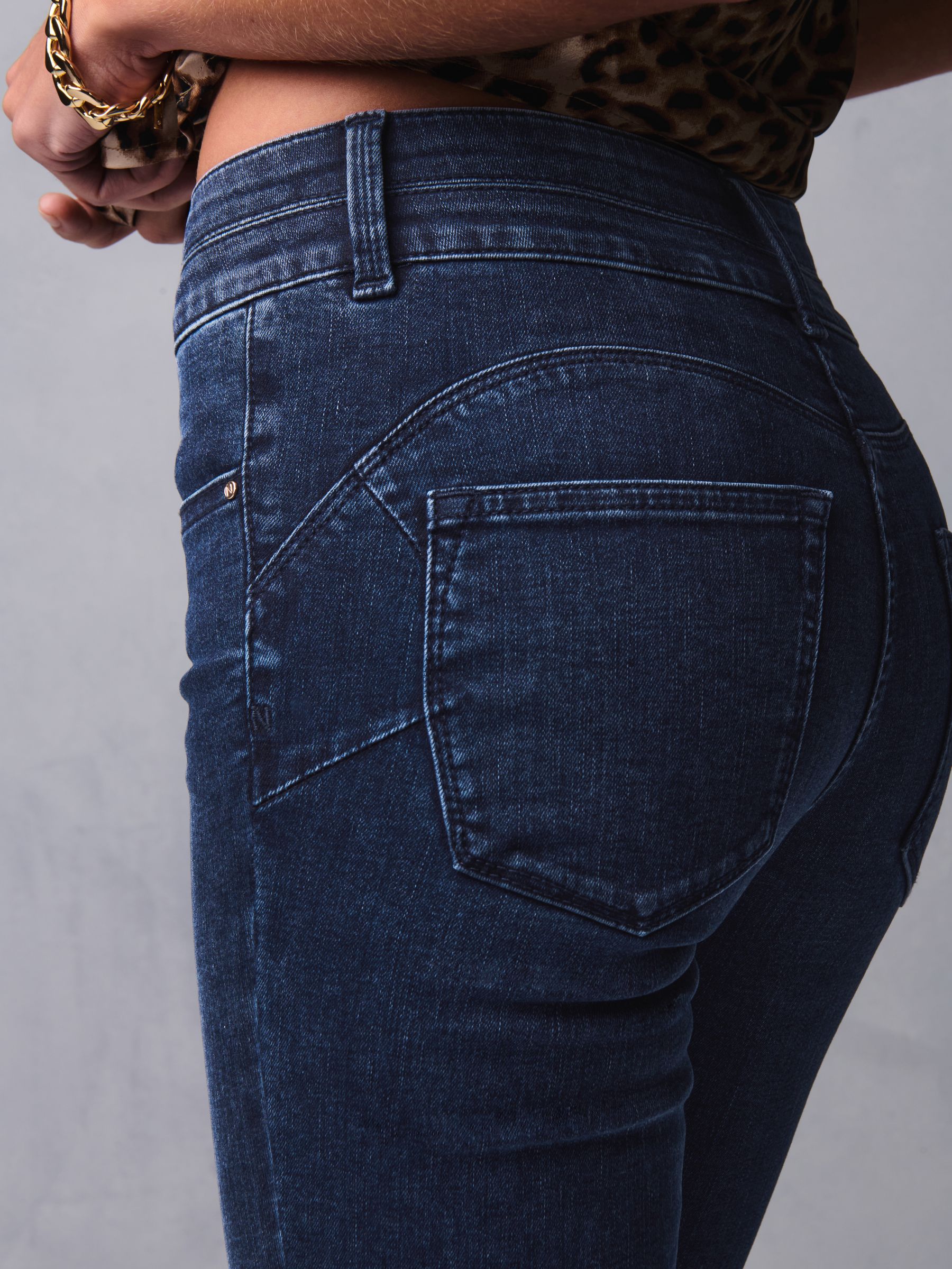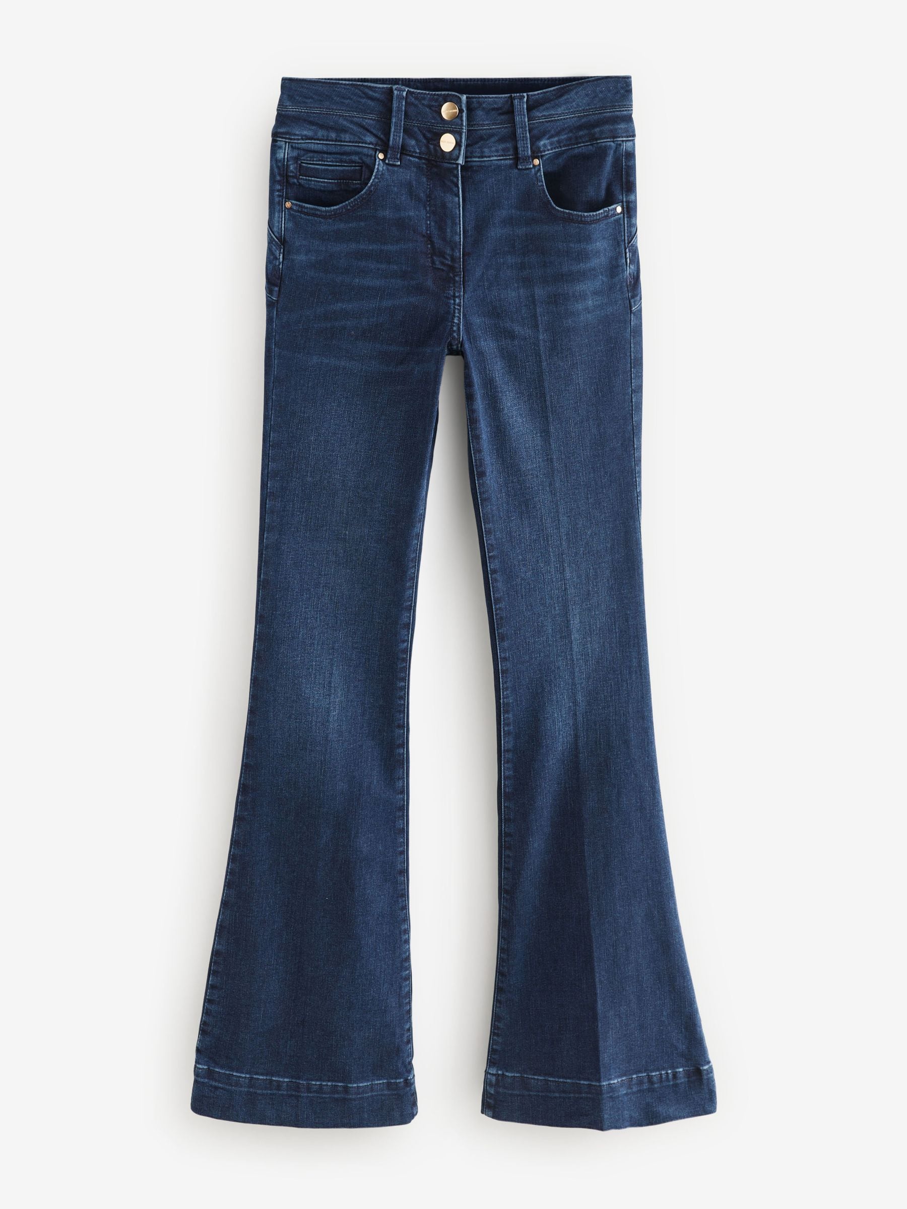 These inky blue wash Lift, Slim and Shape jeans are cleverly designed jeans with hidden support providing extra waist smoothing. With a curved gap free waistband to support and slim and a high rise waist for a flattering fit. These jeans are finished with a flared leg shape and side and rear pockets.