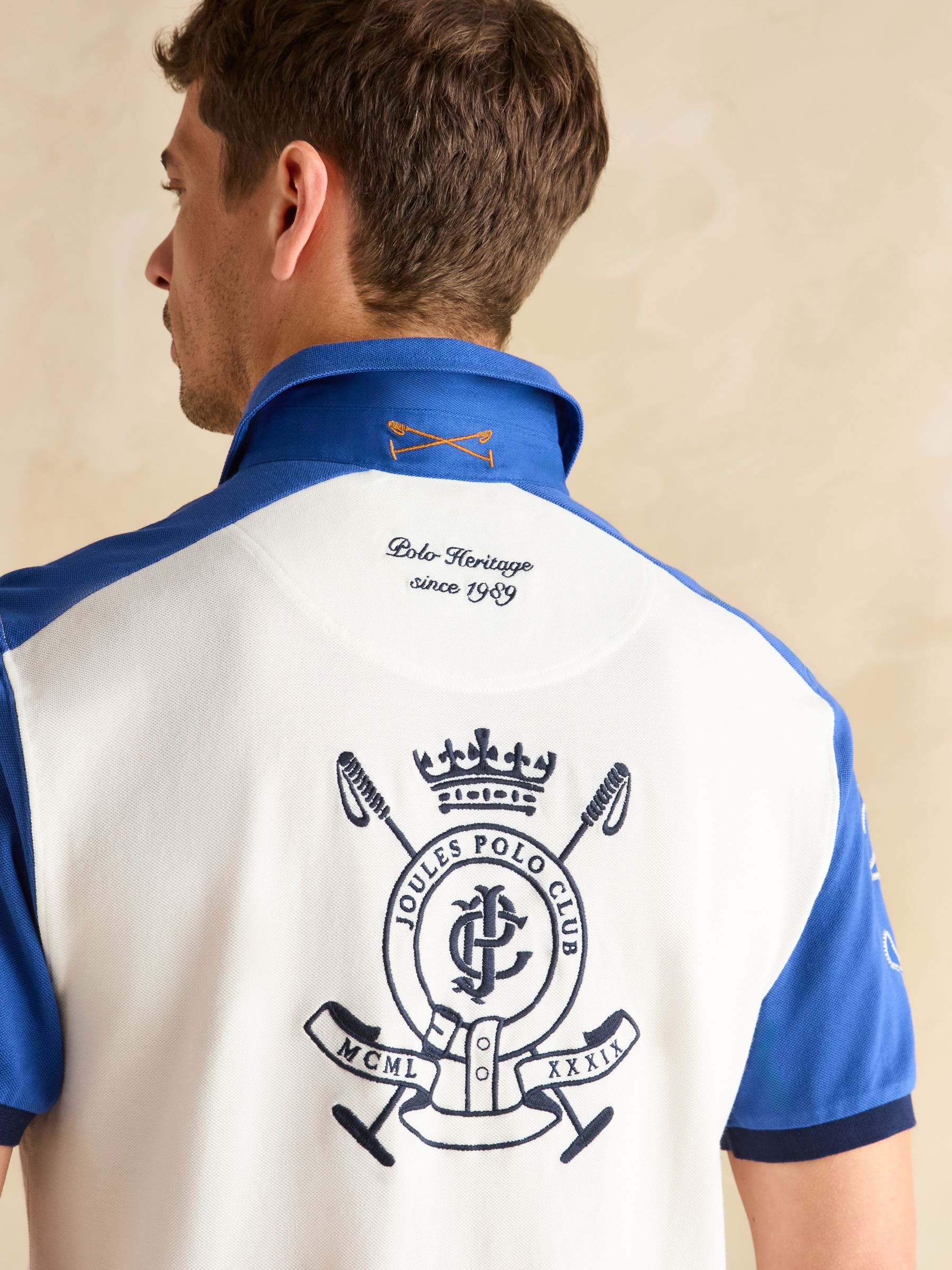 Perfect for the pitch and the pub, this polo shirt has been crafted from lightweight, breathable cotton pique and features a detailed embroidered badge, number ‘3’ and a contrasting coloured panel. It has a classic fit, a button placket, a twill collar with undercollar embroidery and side splits. This is a true celebration of style and heritage. Cotton pique Classic fit Short sleeves Button placket Twill collar with undercollar embroidery Embroidered detailing on the chest Contrasting coloured panel to the front Side splits Machine washable. 100% Cotton.