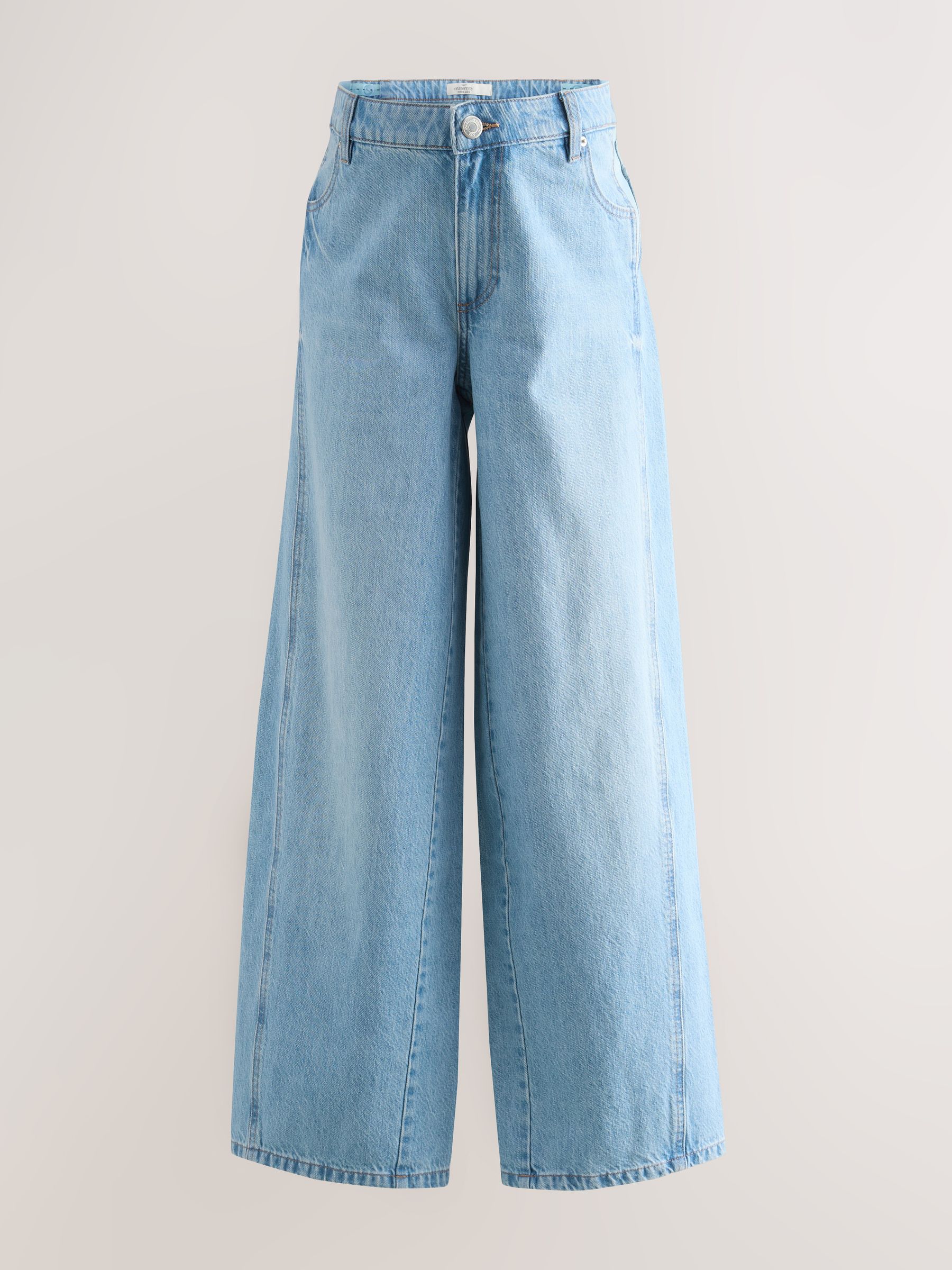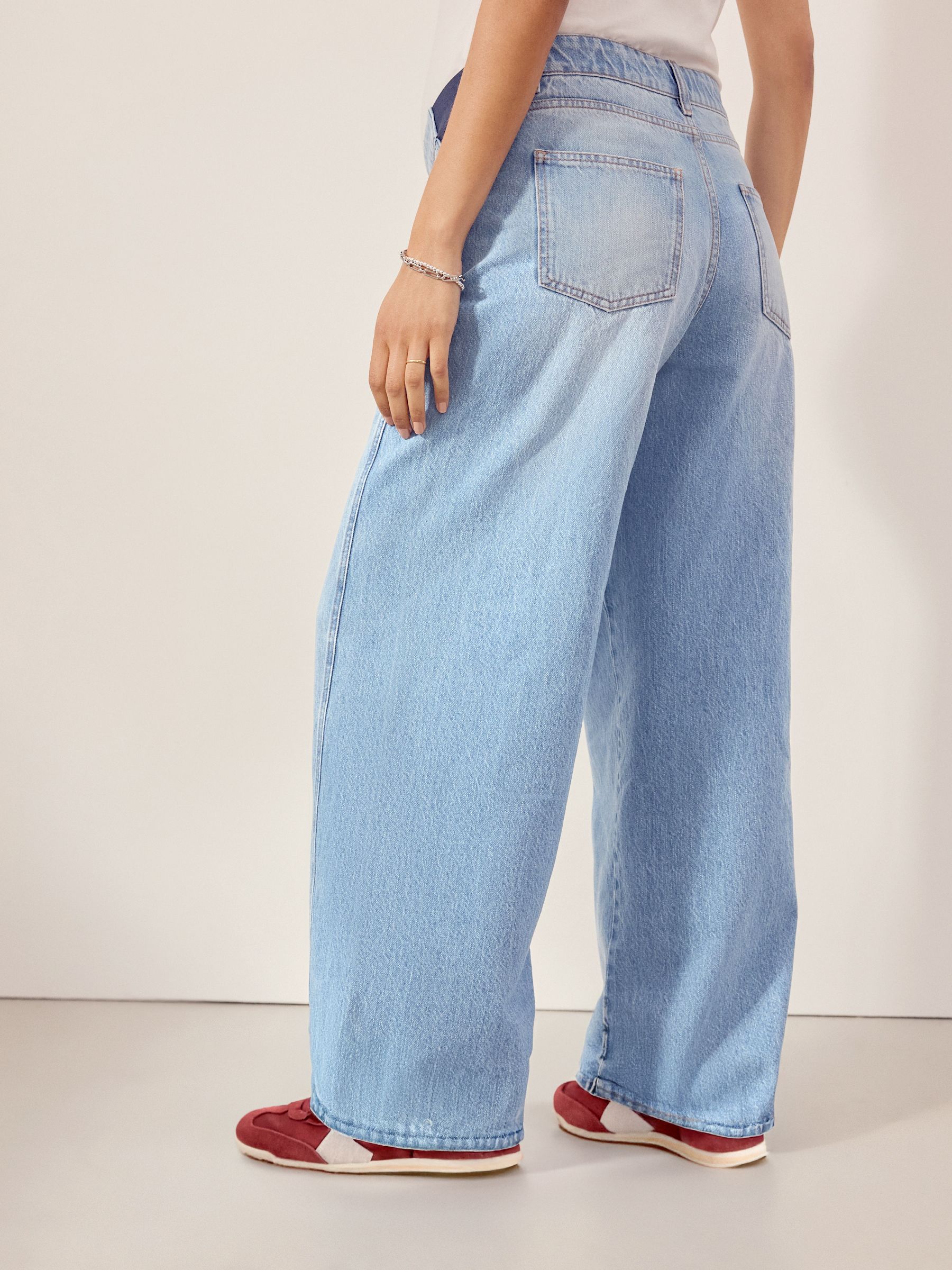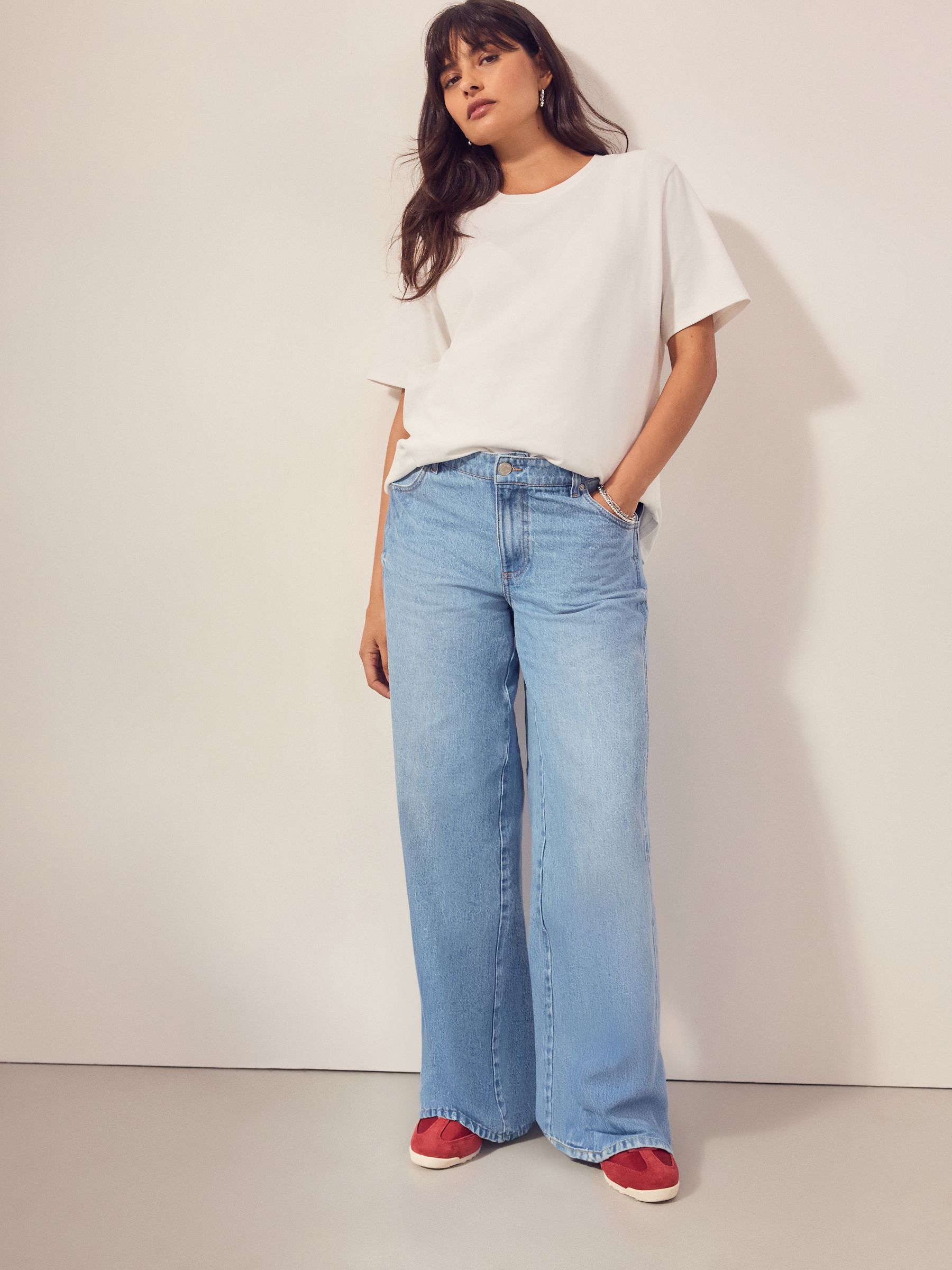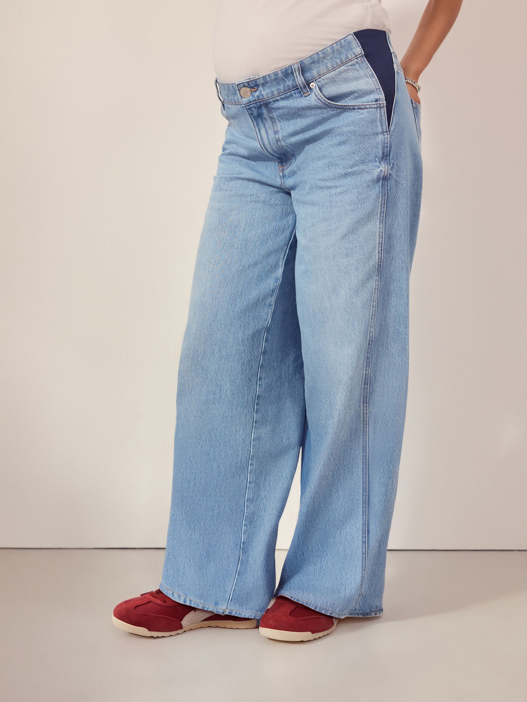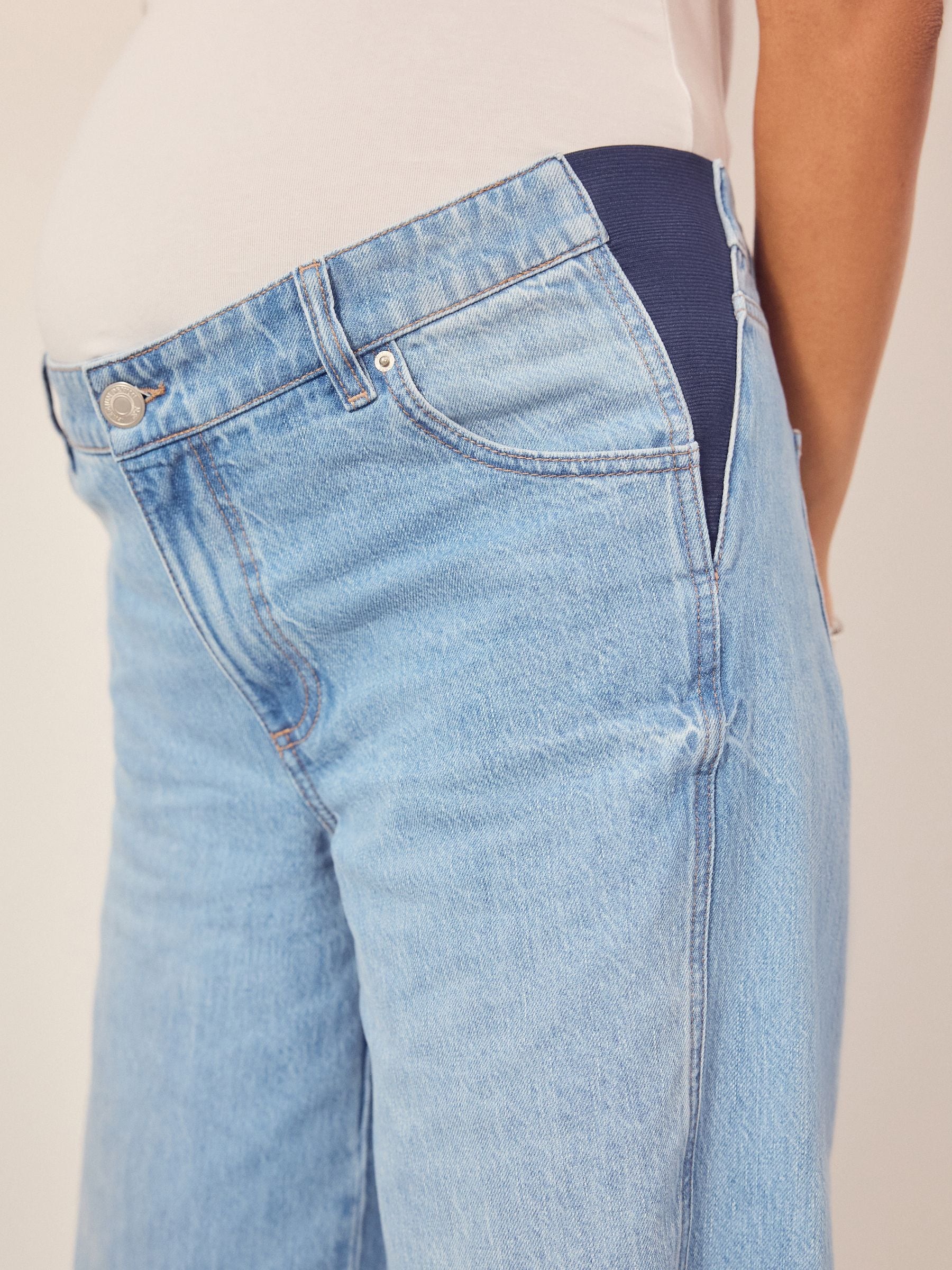 Ideal for your casual outfits during and after pregnancy, these stylish light blue wide-leg jeans have elasticated inserts to the side for an added stretch that moves with your bump, crafted from pure cotton denim with pockets and a button and zip fastening.