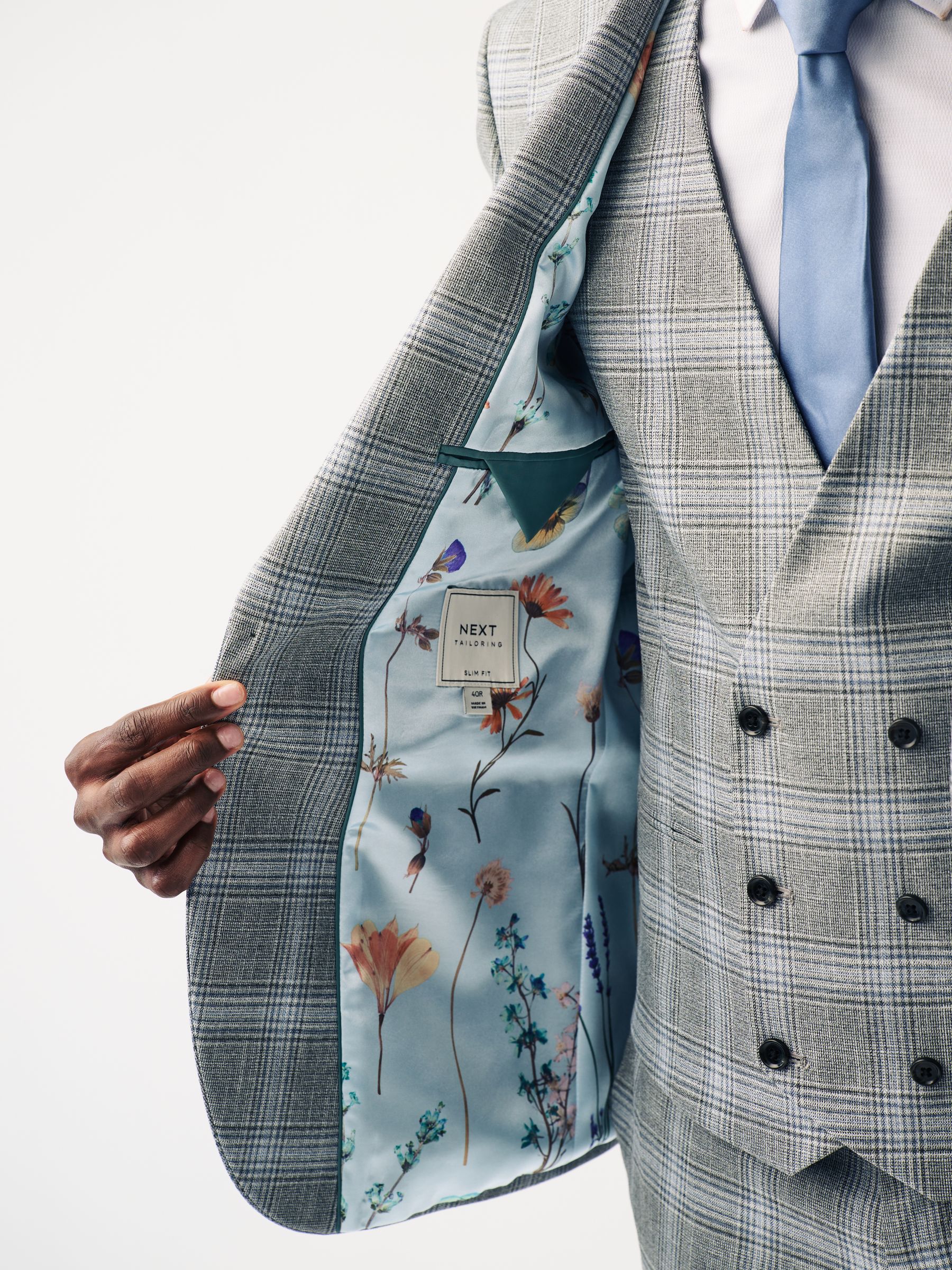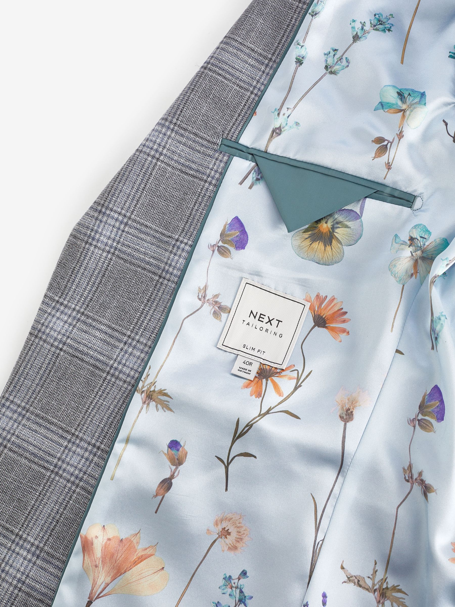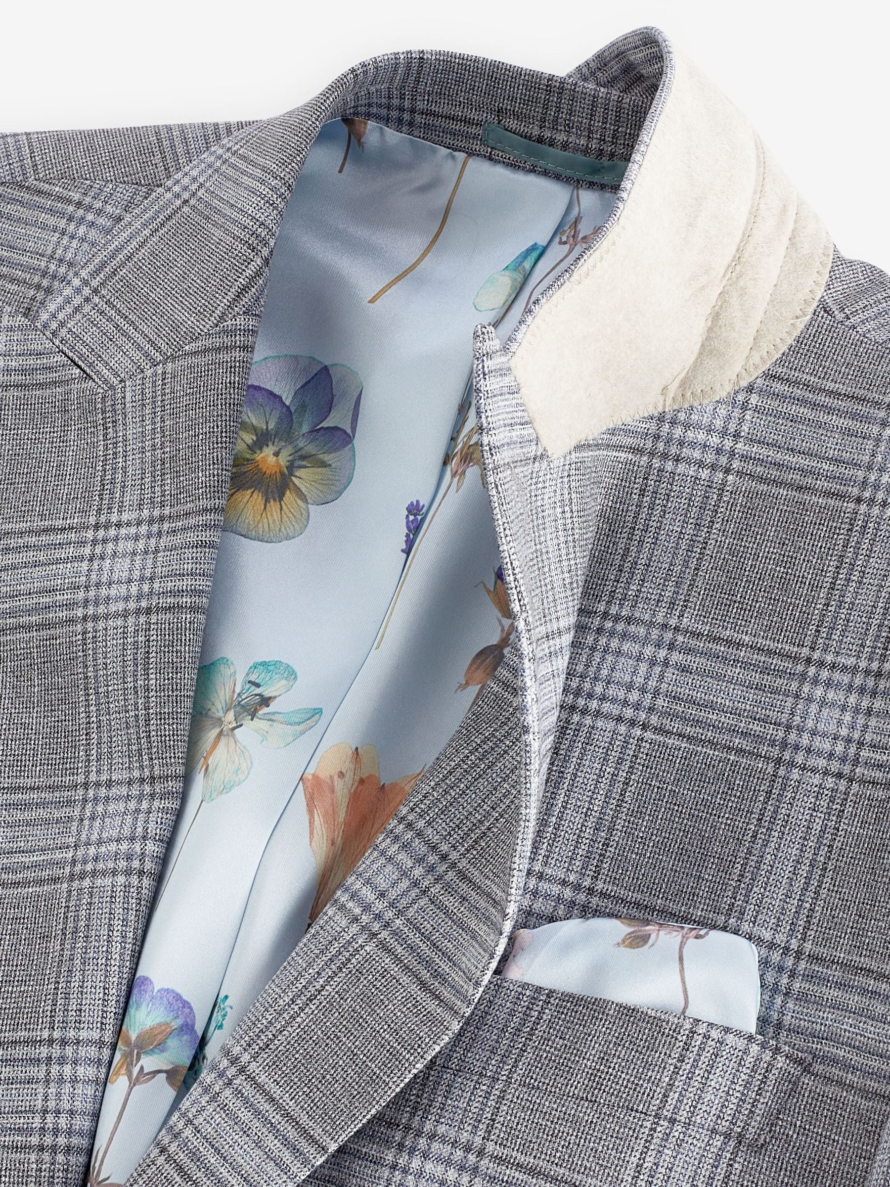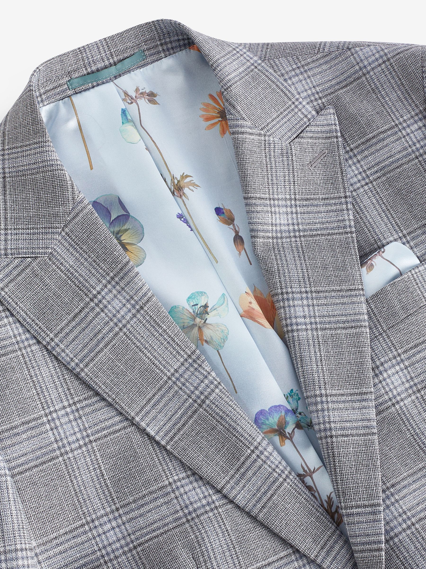Make a statement with our slim fit check suit jacket, where classic meets contemporary. The check fabric brings a timeless pattern with a modern twist, perfect for making a mark on any special occasion. The peak lapels add a touch of sophistication, enhancing your silhouette, while the printed lining offers a surprise element of style that’s uniquely yours. Plus, the pull-out pocket square provides a coordinated flourish whenever needed. Finished with a four-button cuff, this jacket is crafted for those who appreciate the finer details.
