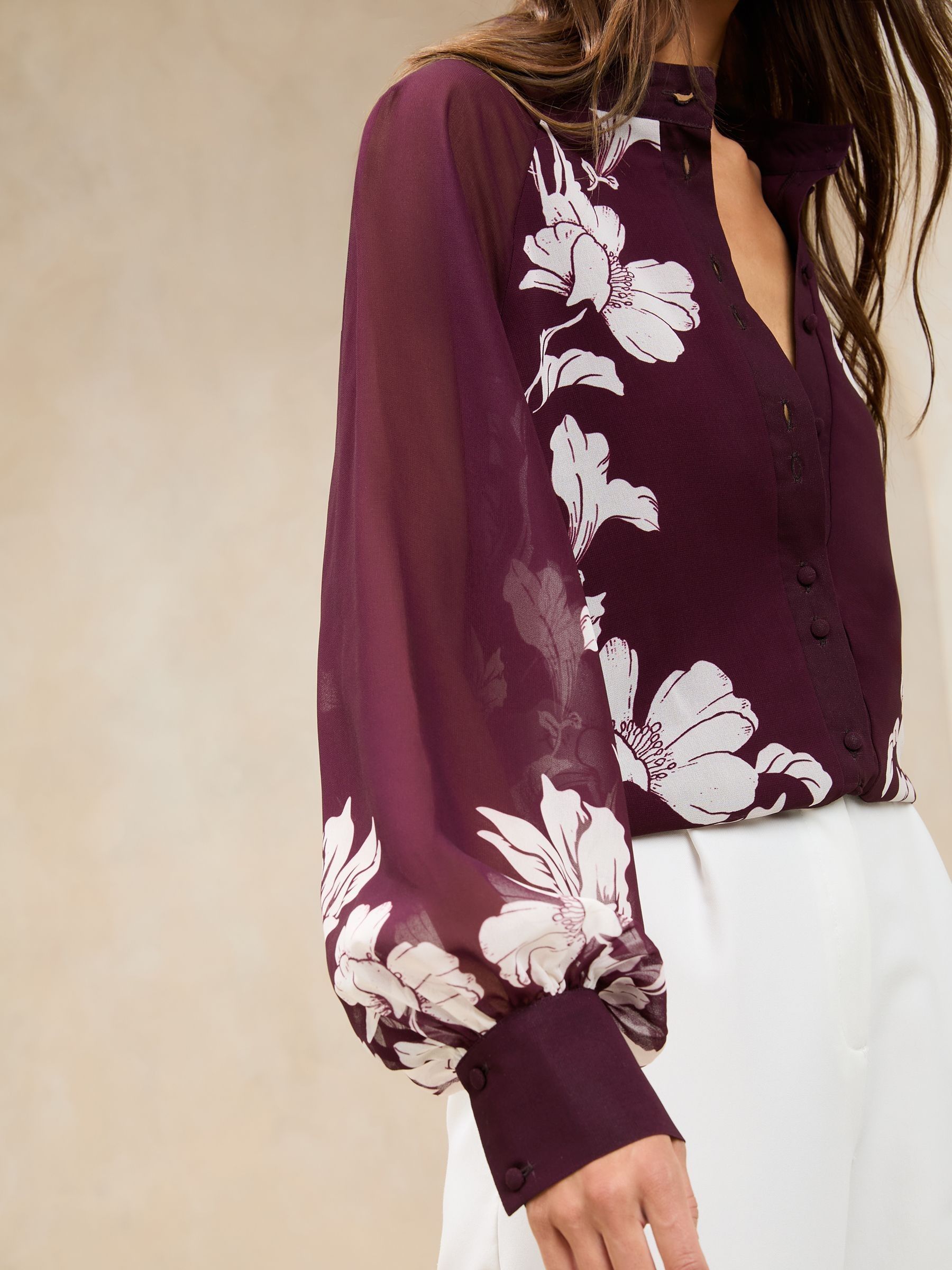 A gorgeous burgundy red printed blouse. This spring inspired blouse is a chic addition to your wardrobe and pairs back perfectly with a Lipsy jeans. Featuring: Lined front Grandad collar Button up fastening Long sleeve Print detailing Model wears size 8. Main 50% Polyester, 50% Recycled polyester. Lining 100% Polyester.