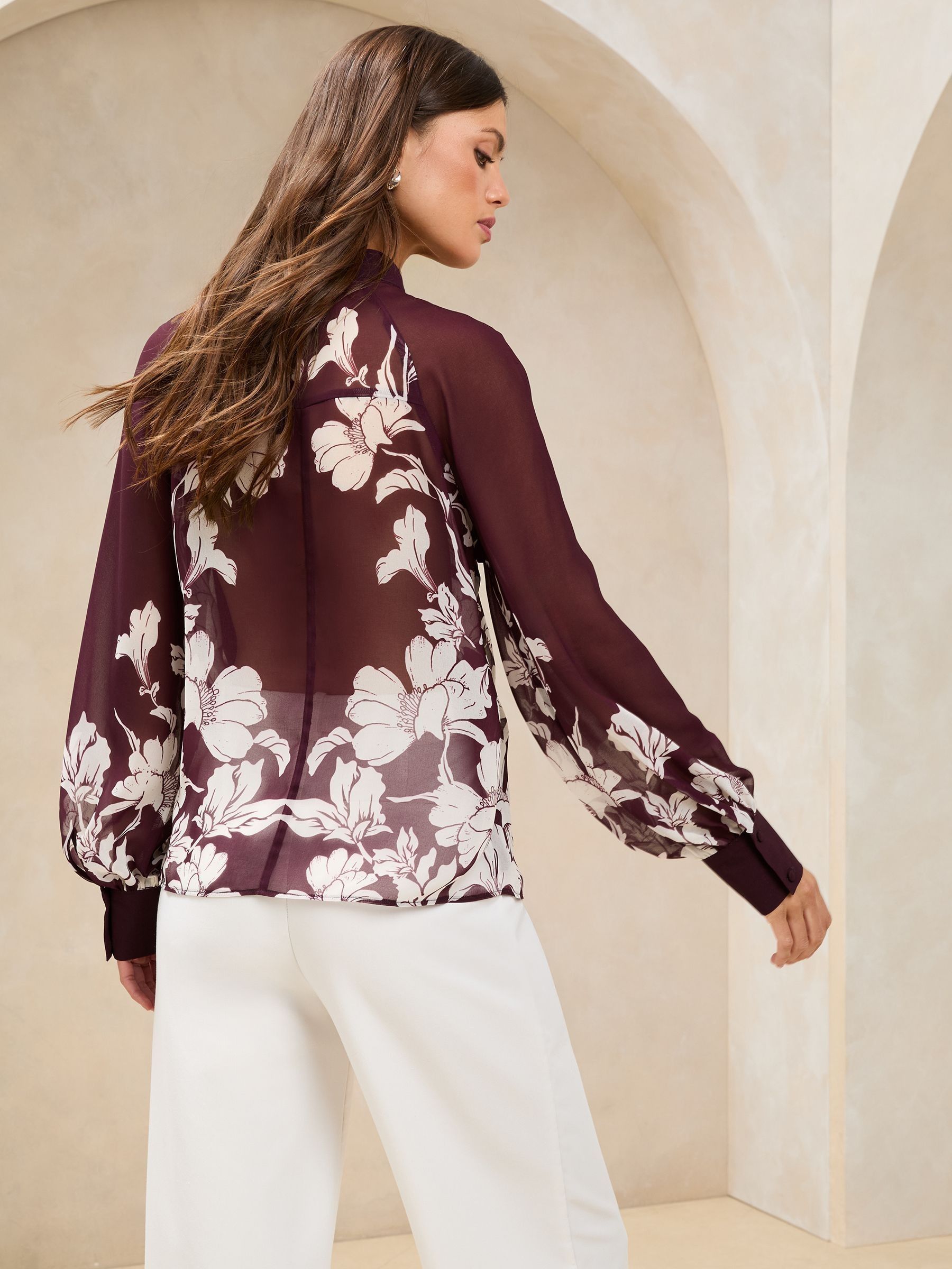 A gorgeous burgundy red printed blouse. This spring inspired blouse is a chic addition to your wardrobe and pairs back perfectly with a Lipsy jeans.
