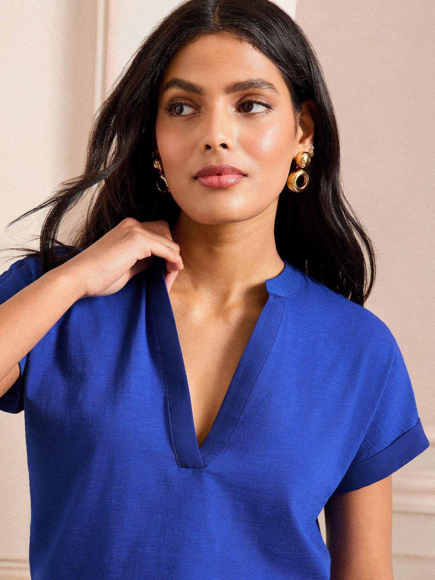 A jersey slub T-Shirt. This T-Shirt features a woven neck and cuff trim to really elevate this jersey wardrobe basic. Main 100% Cotton. Trim 100% Polyester. Better Cotton – By choosing our cotton products, you’re supporting our investment in Better Cotton’s mission to help cotton farming communities survive and thrive while protecting and restoring the environment. This product is sourced via a system of mass balance and therefore may not contain Better Cotton. Learn more at www.next.co.uk/better-cotton